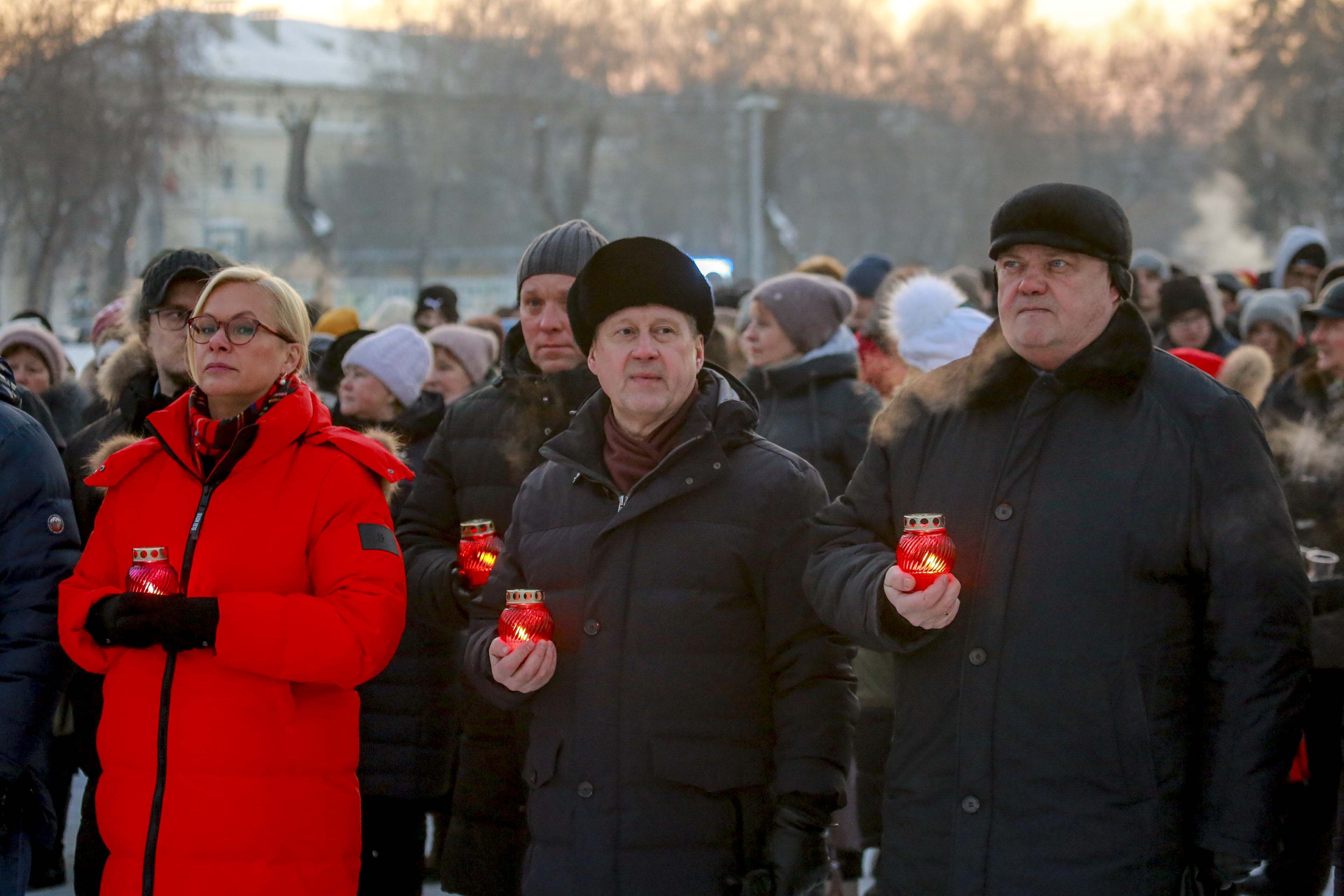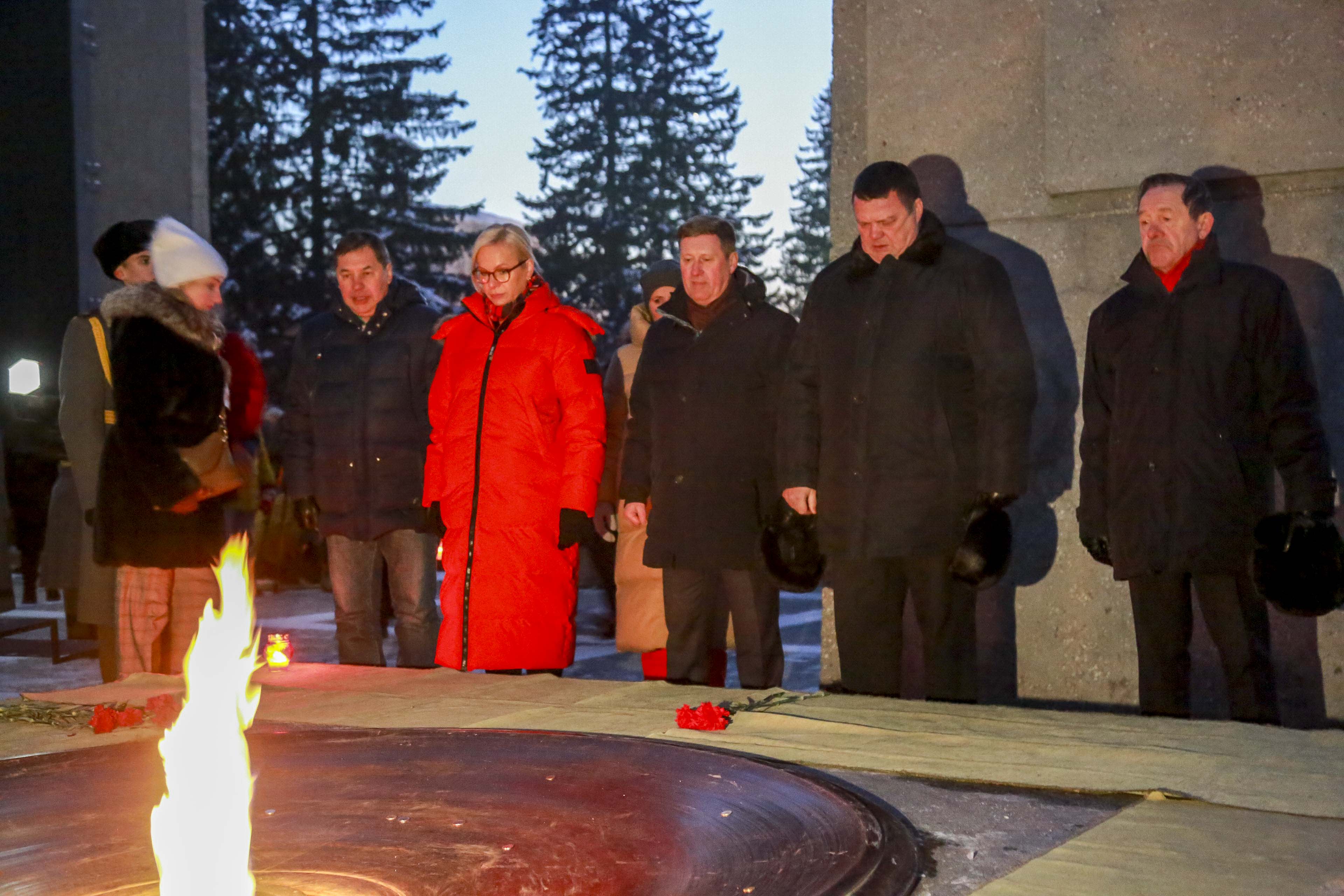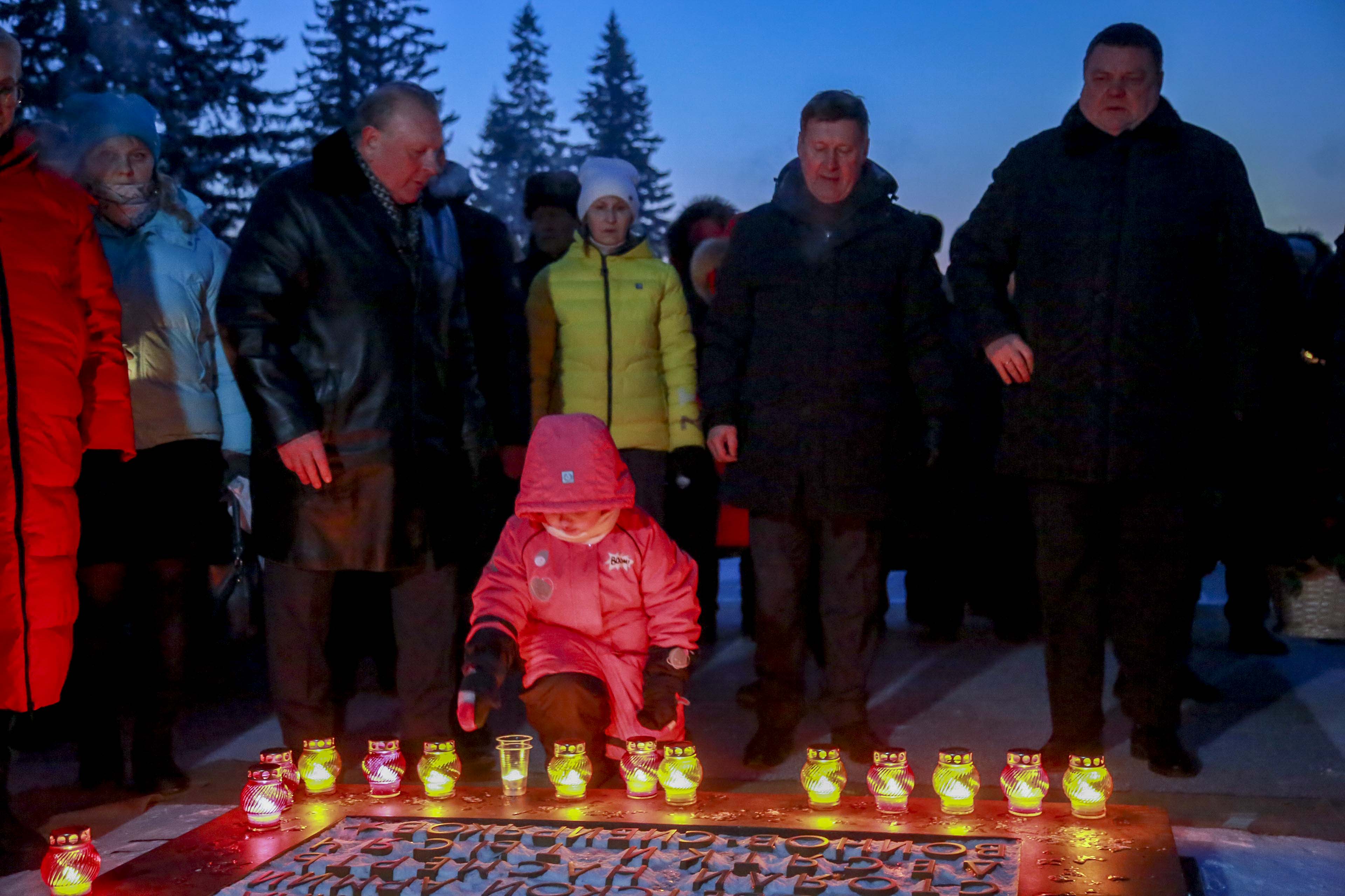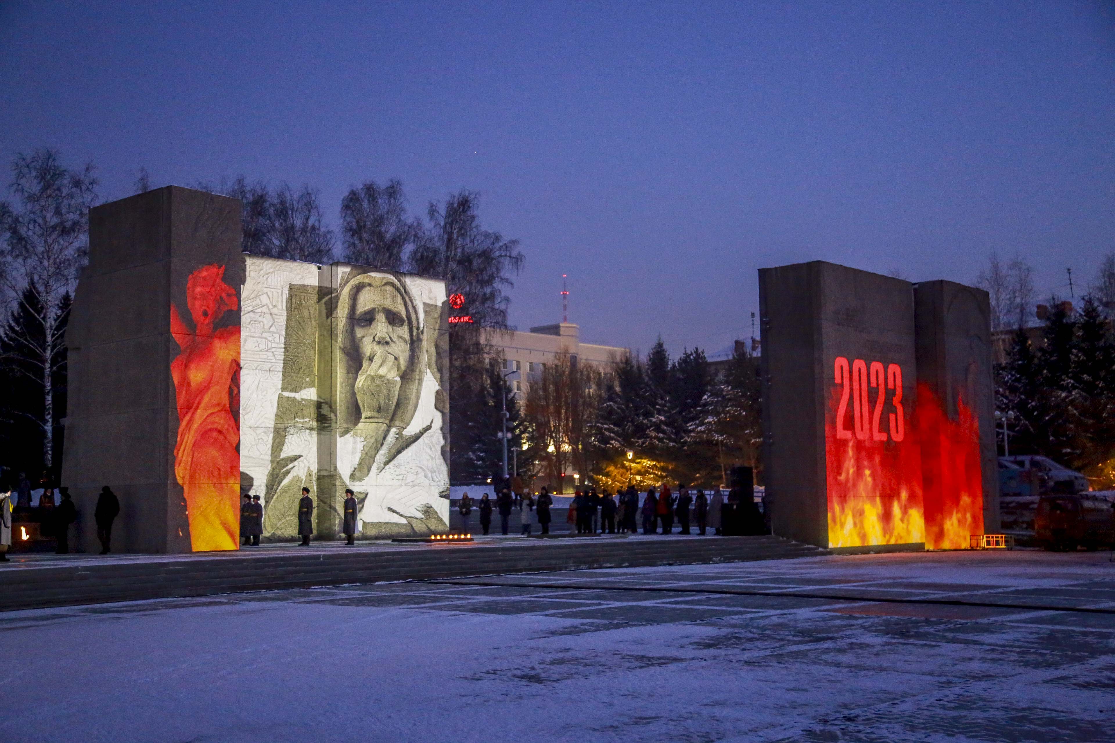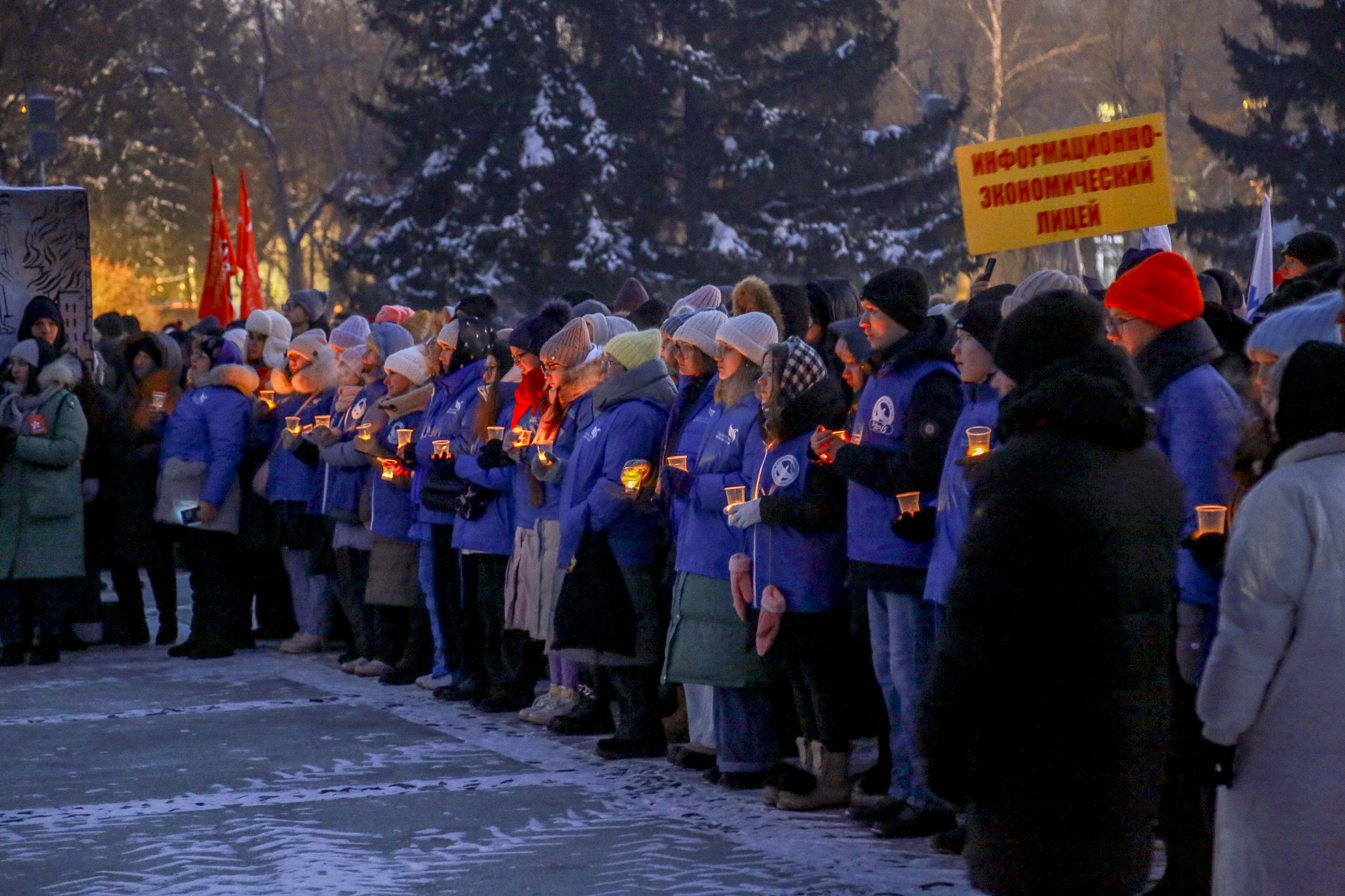 Новосибирцы зажгли свечи в память о героях, сражавшихся под Сталинградом с немецко-фашистскими захватчиками. Патриотическая акция прошла вечером 1 февраля на Монументе Славы.