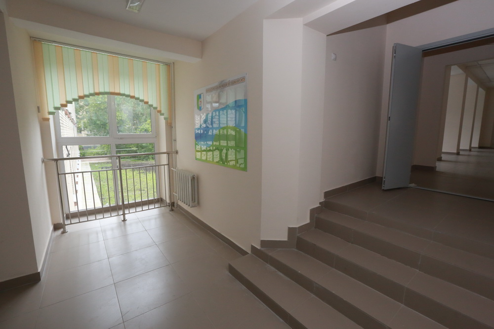 В 61-й школе в Советском районе сделали перепланировку, установили пандус и отремонтировали кабинеты. 1 сентября в обновлённом здании за парты сядут 60 первоклассников.