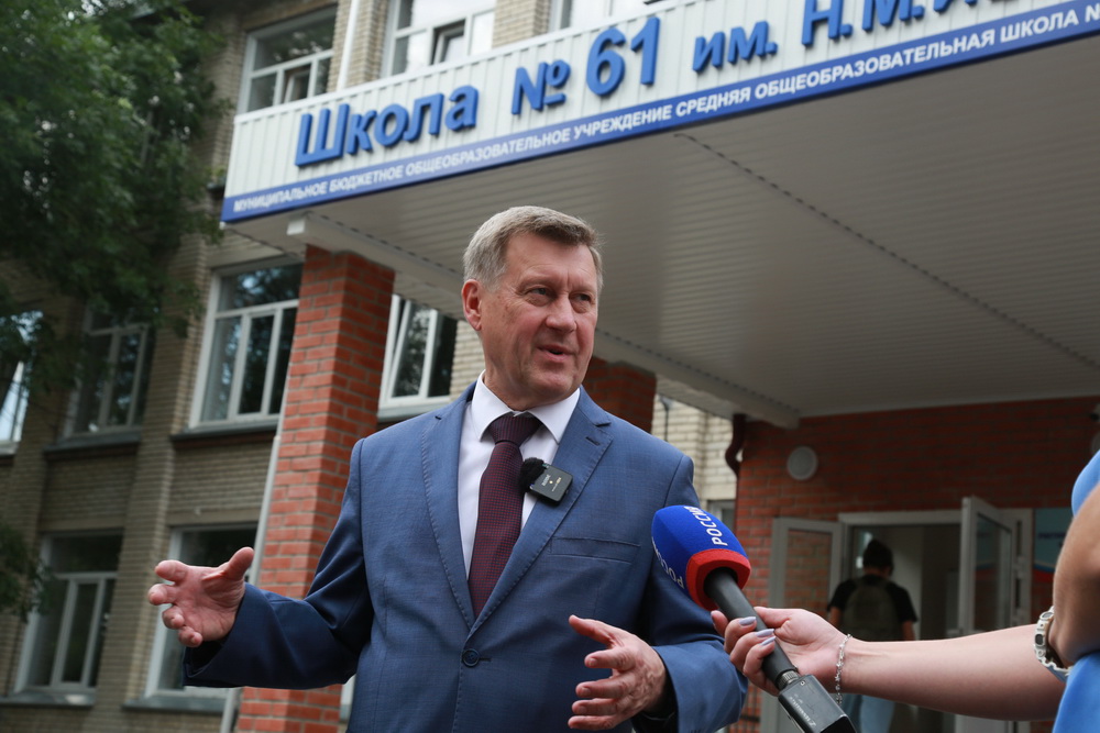 Вы обратите внимание, у нас есть школы старой постройки, сильно изношенные, туда заходишь — и такой гнетущий полумрак. Здесь же обстановка совсем другая», — отметил мэр Анатолий Локоть, оценивая результаты капитального ремонта.