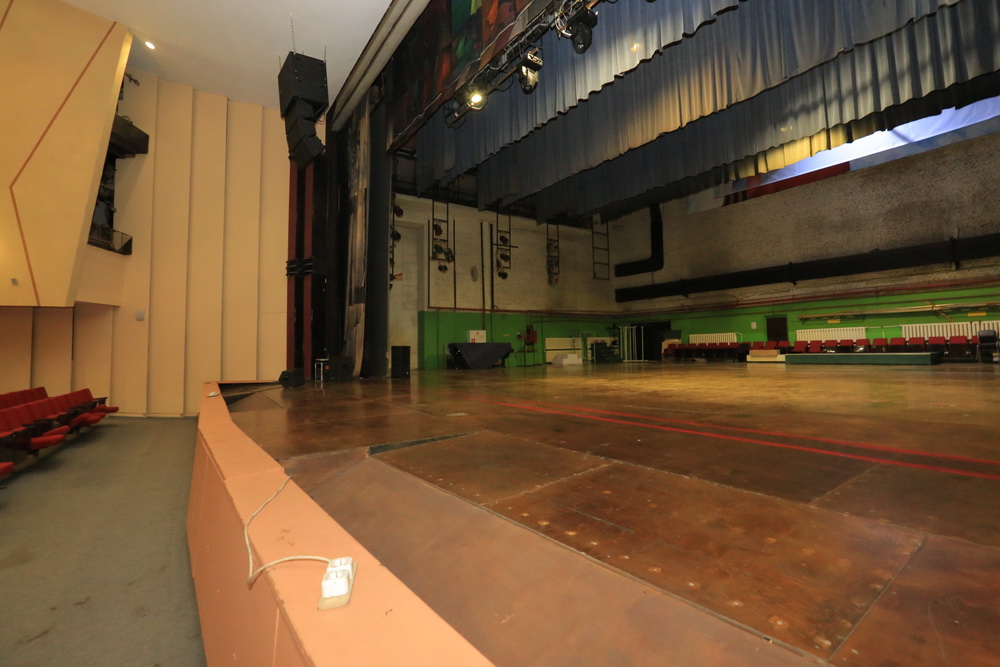 Площадь ДК имени Чкалова — более 10 000 кв. метров. Глядя на здание с проспекта Дзержинского, даже и не подумаешь, что внутри сколько всего. В том числе два зрительных зала — на 1000 и на 200 мест. В главном акустика не хуже, чем в филармонии. Глубина сцены — более 30 метров. По её краям расположены уникальные звуковые колонки высотой в семь метров. Они по-прежнему действующие.