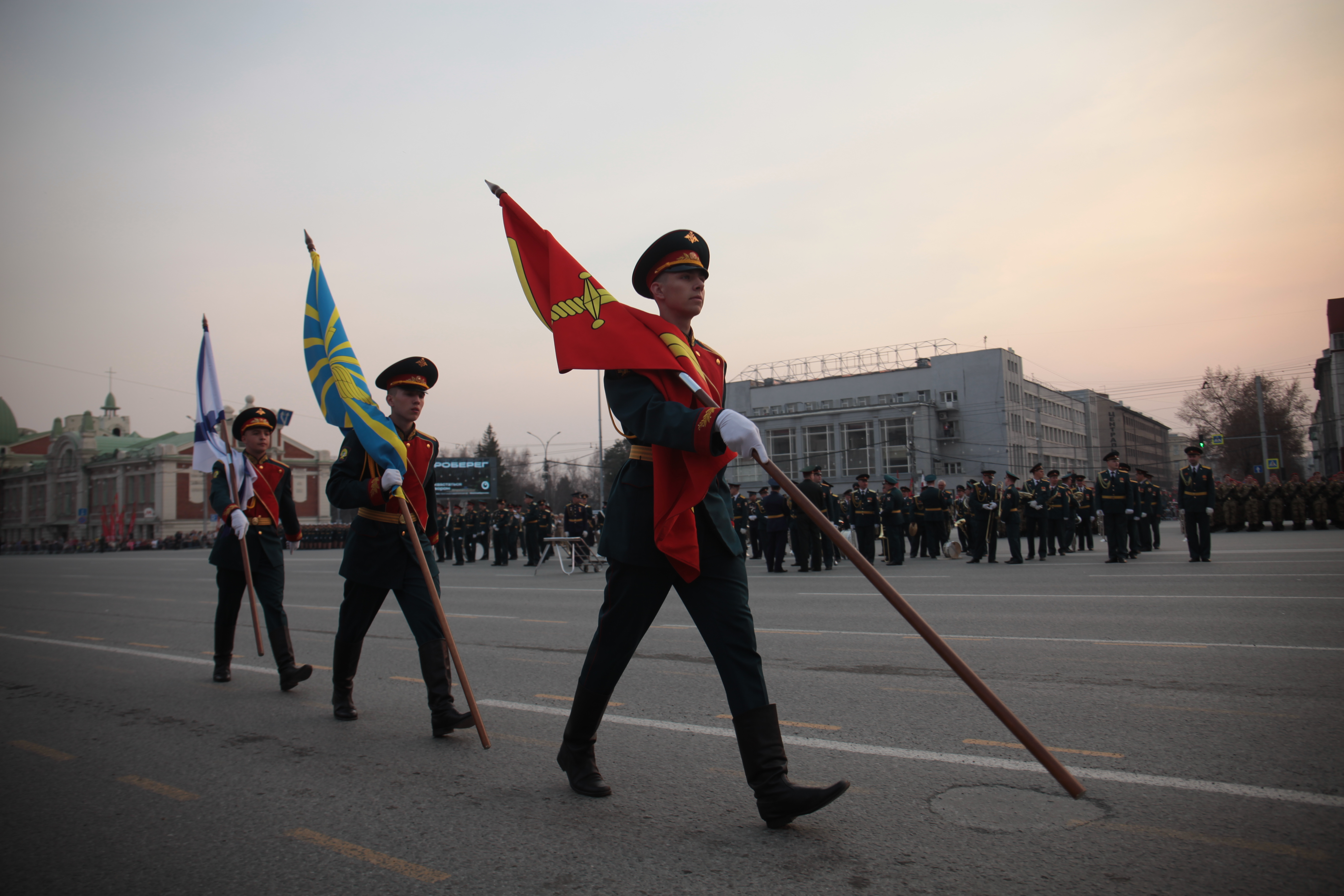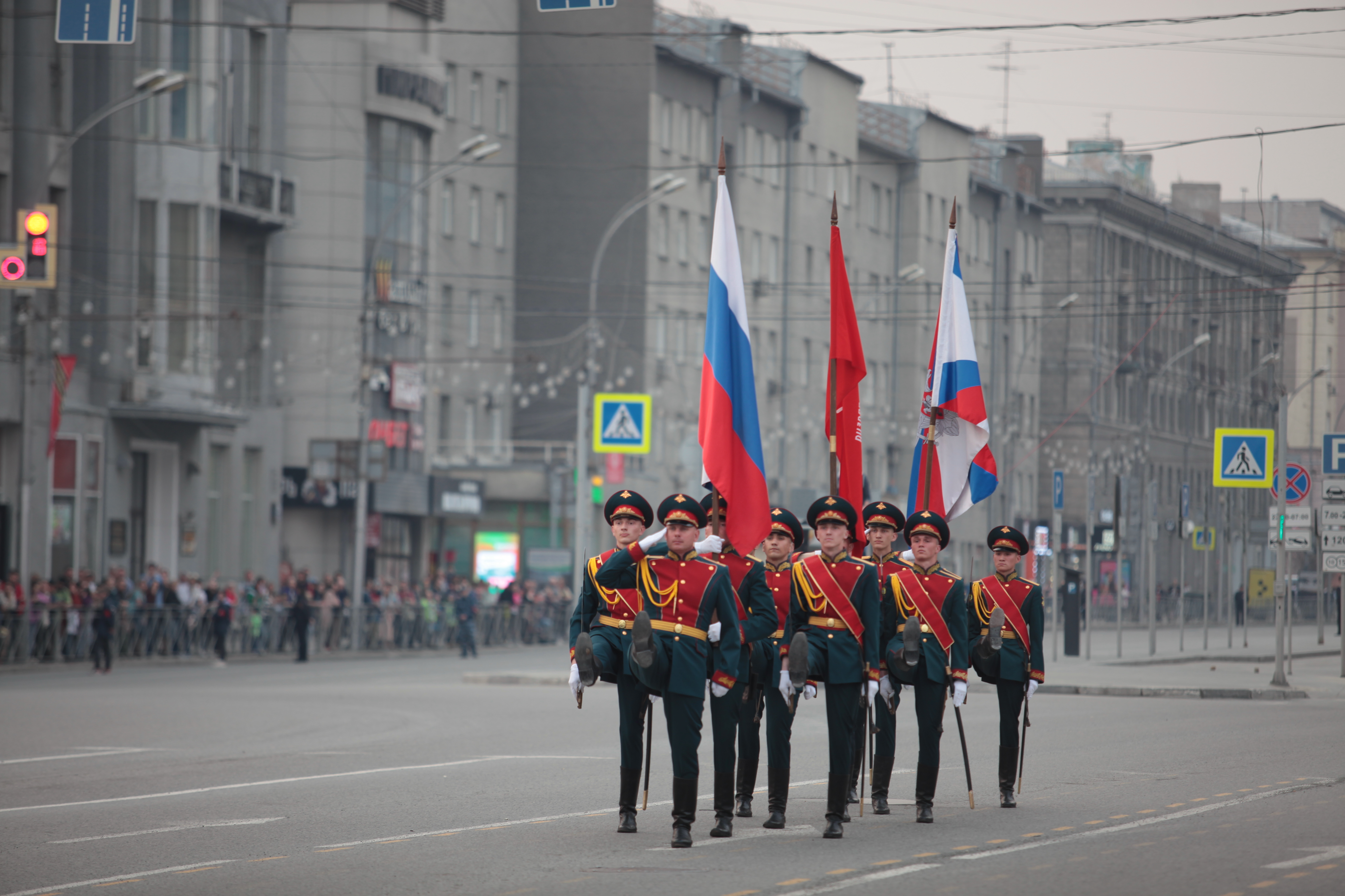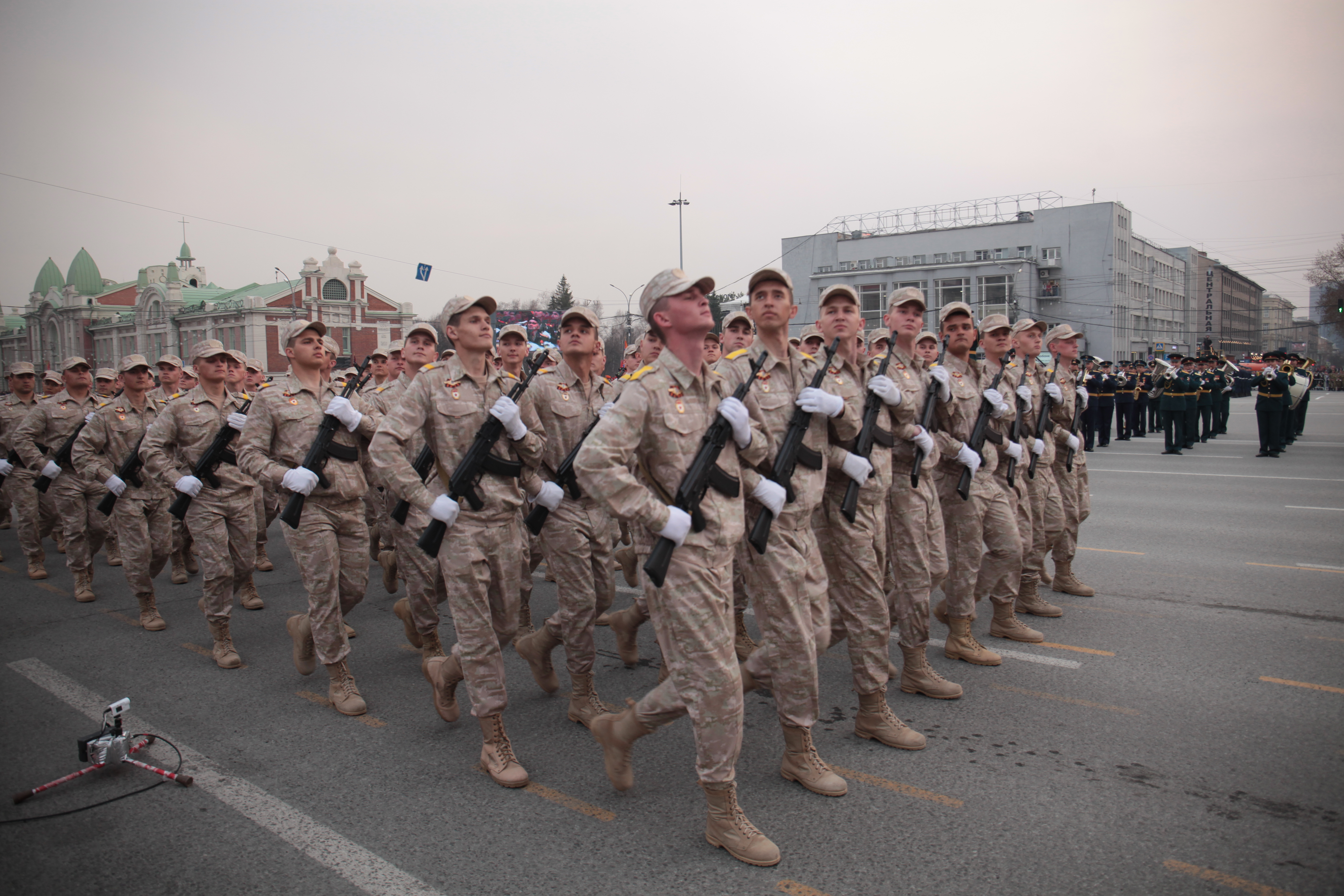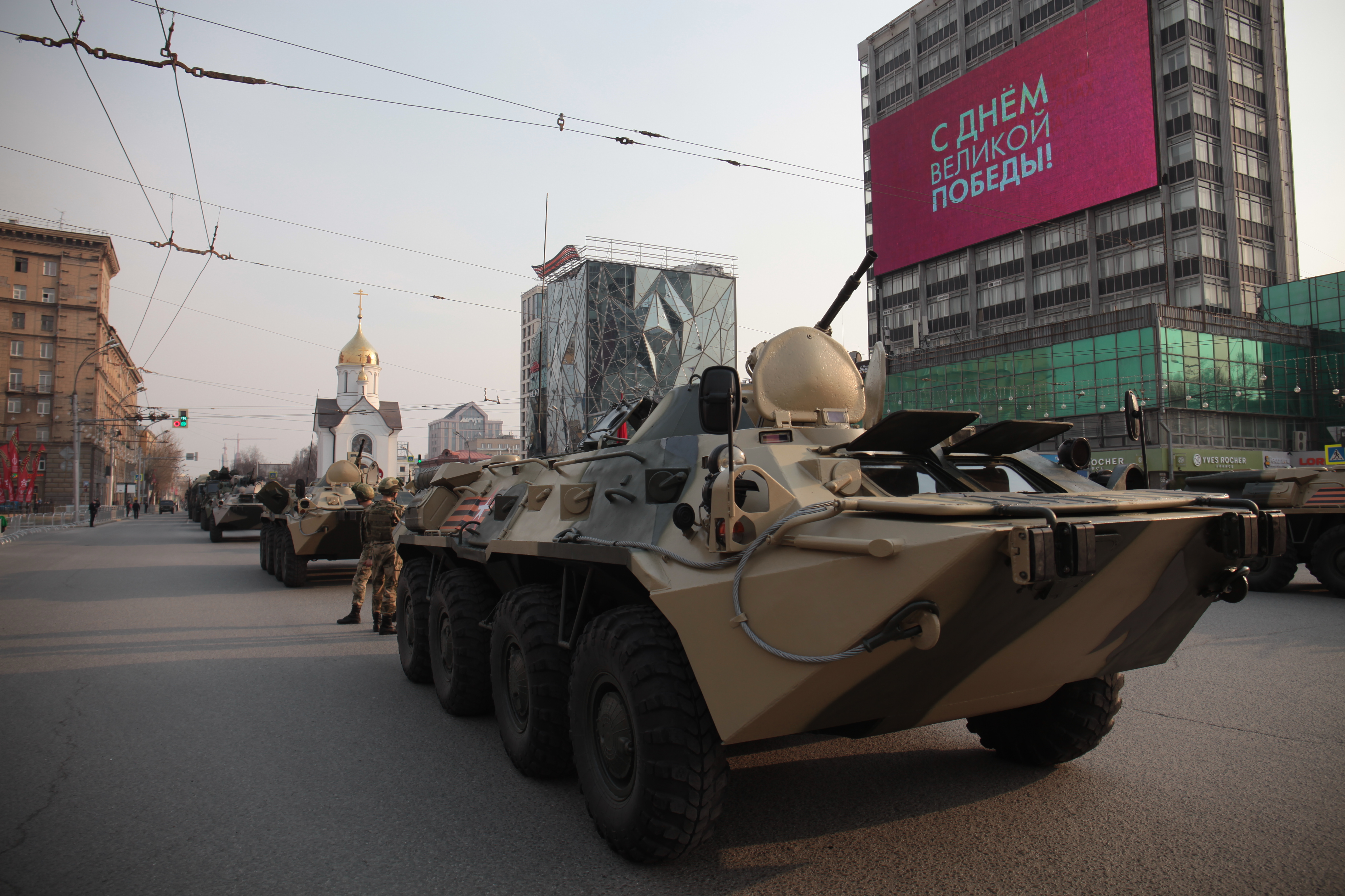 В Новосибирске на завершающую стадию вышла подготовка ко Дню Победы. Вечером в пятницу, 5 мая, на площади Ленина состоялась первая репетиция военного парада, ради которой на несколько часов перекрыли улицы в центре города.