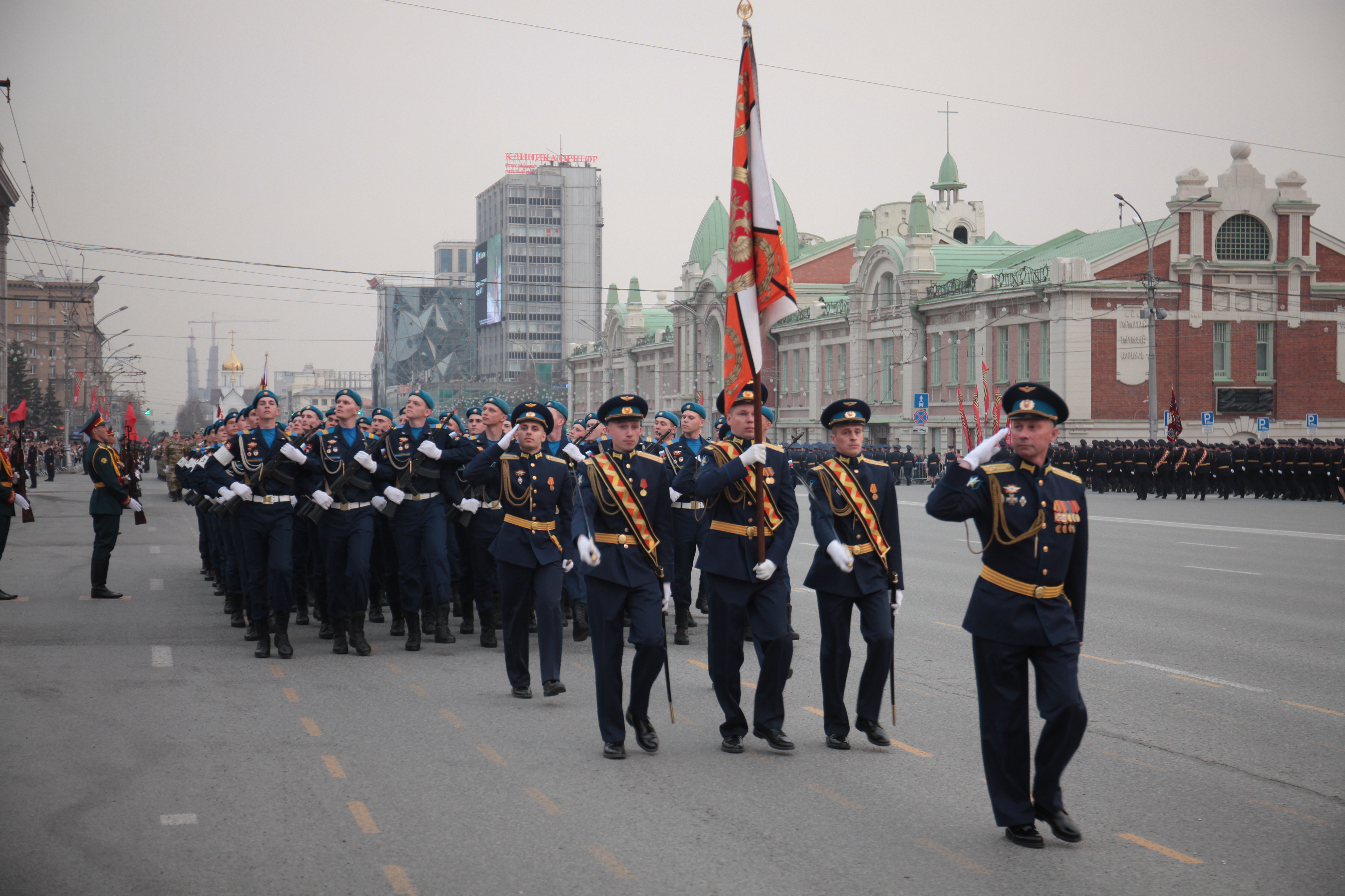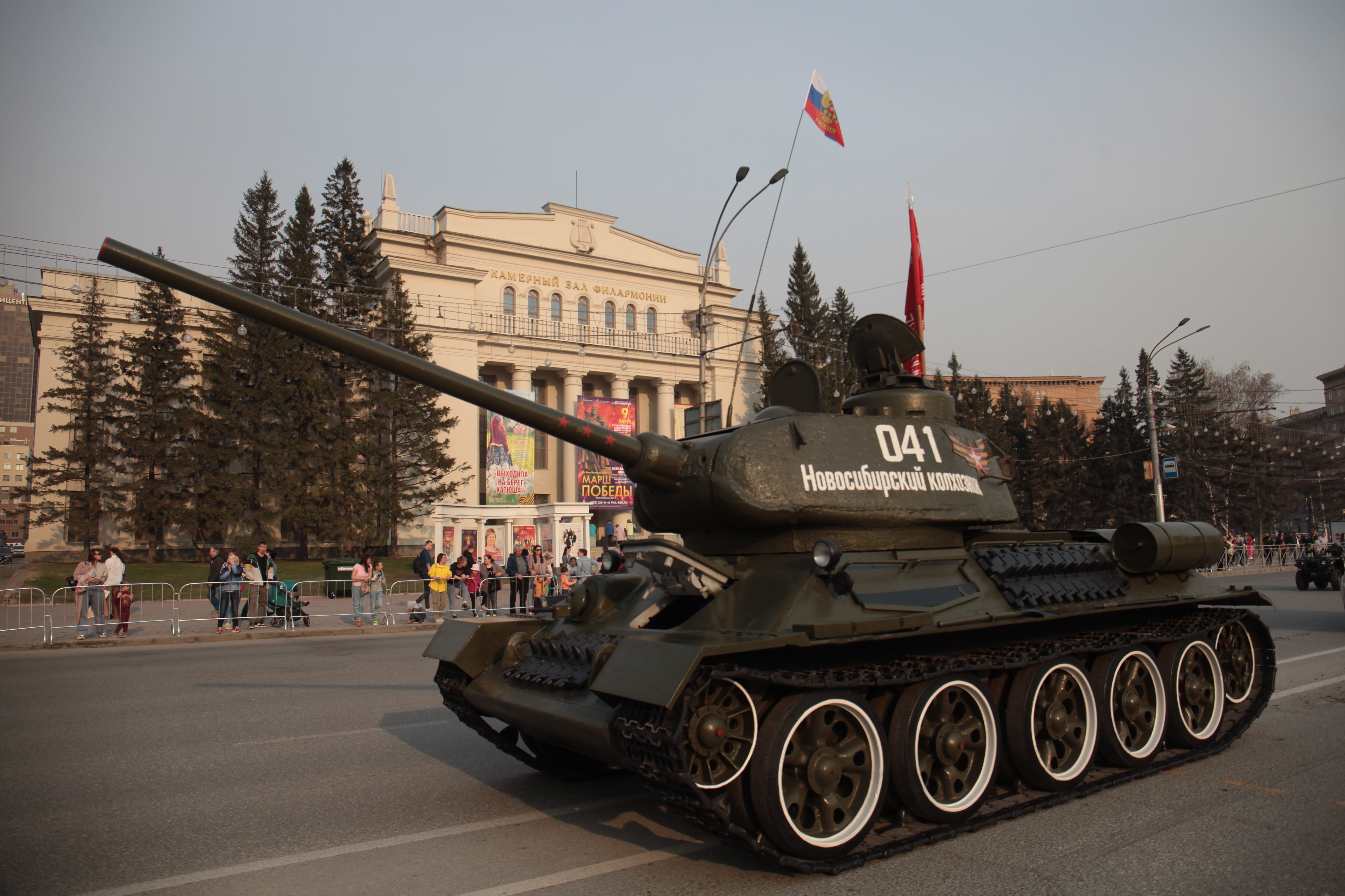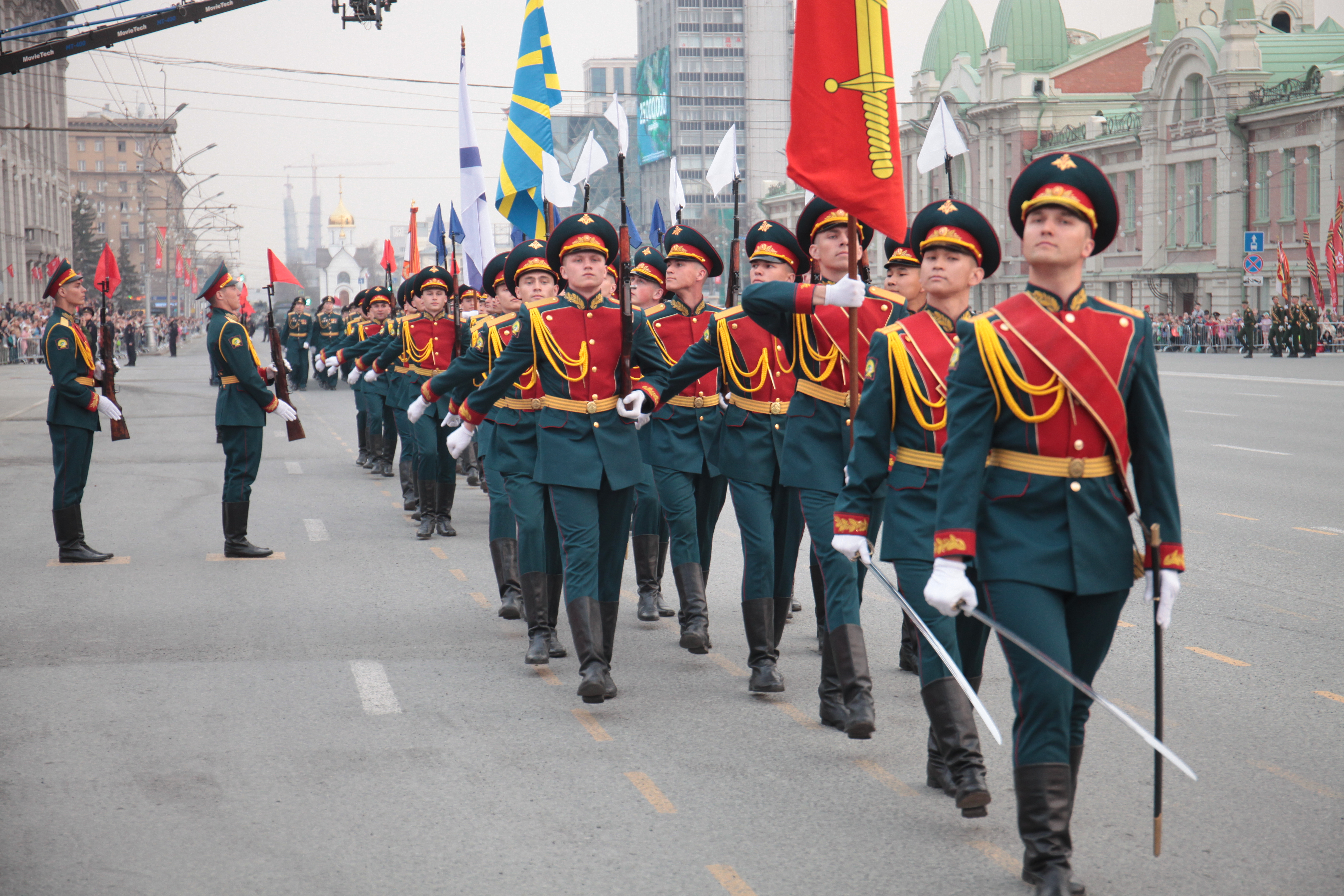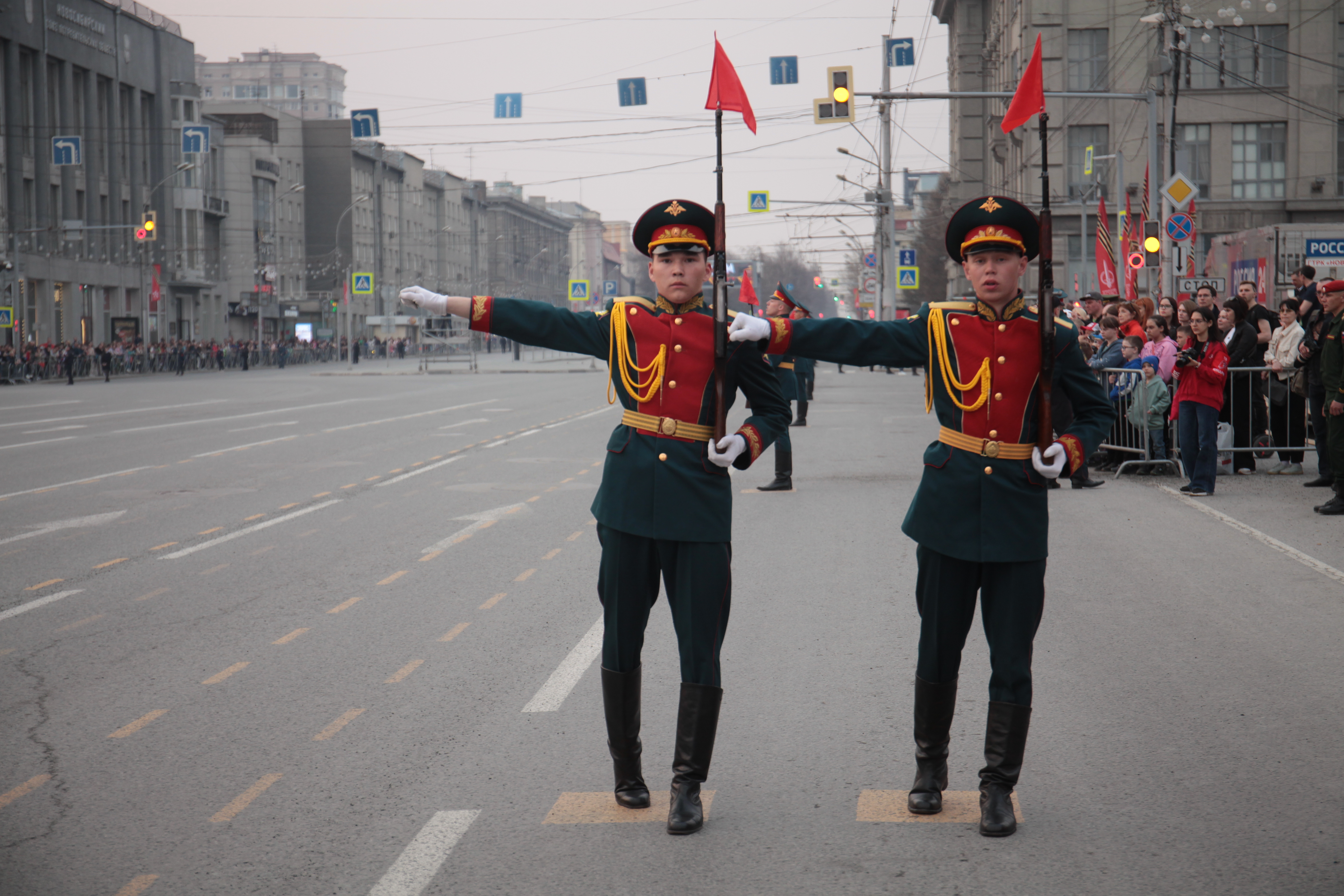 В Новосибирске на завершающую стадию вышла подготовка ко Дню Победы. Вечером в пятницу, 5 мая, на площади Ленина состоялась первая репетиция военного парада, ради которой на несколько часов перекрыли улицы в центре города.