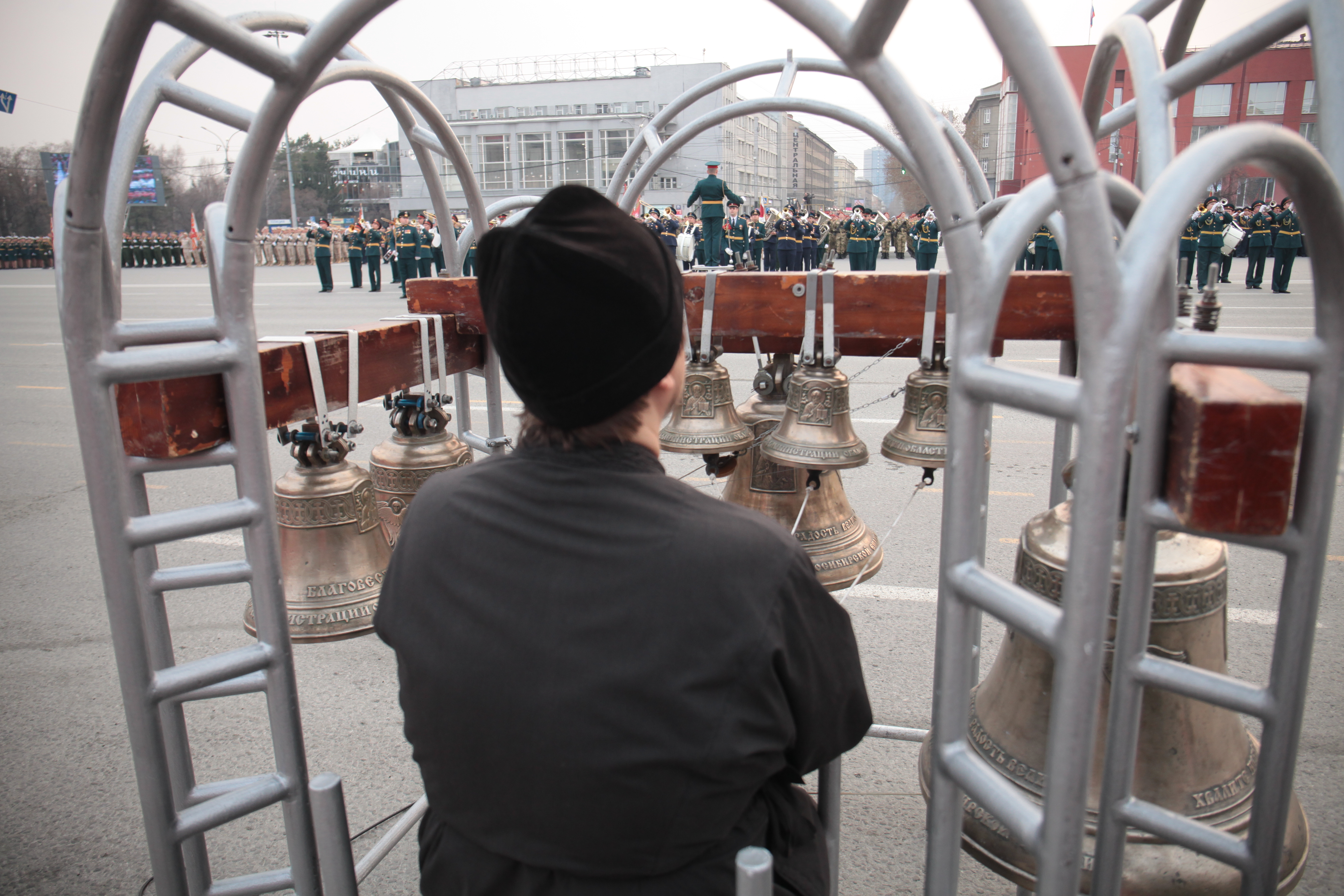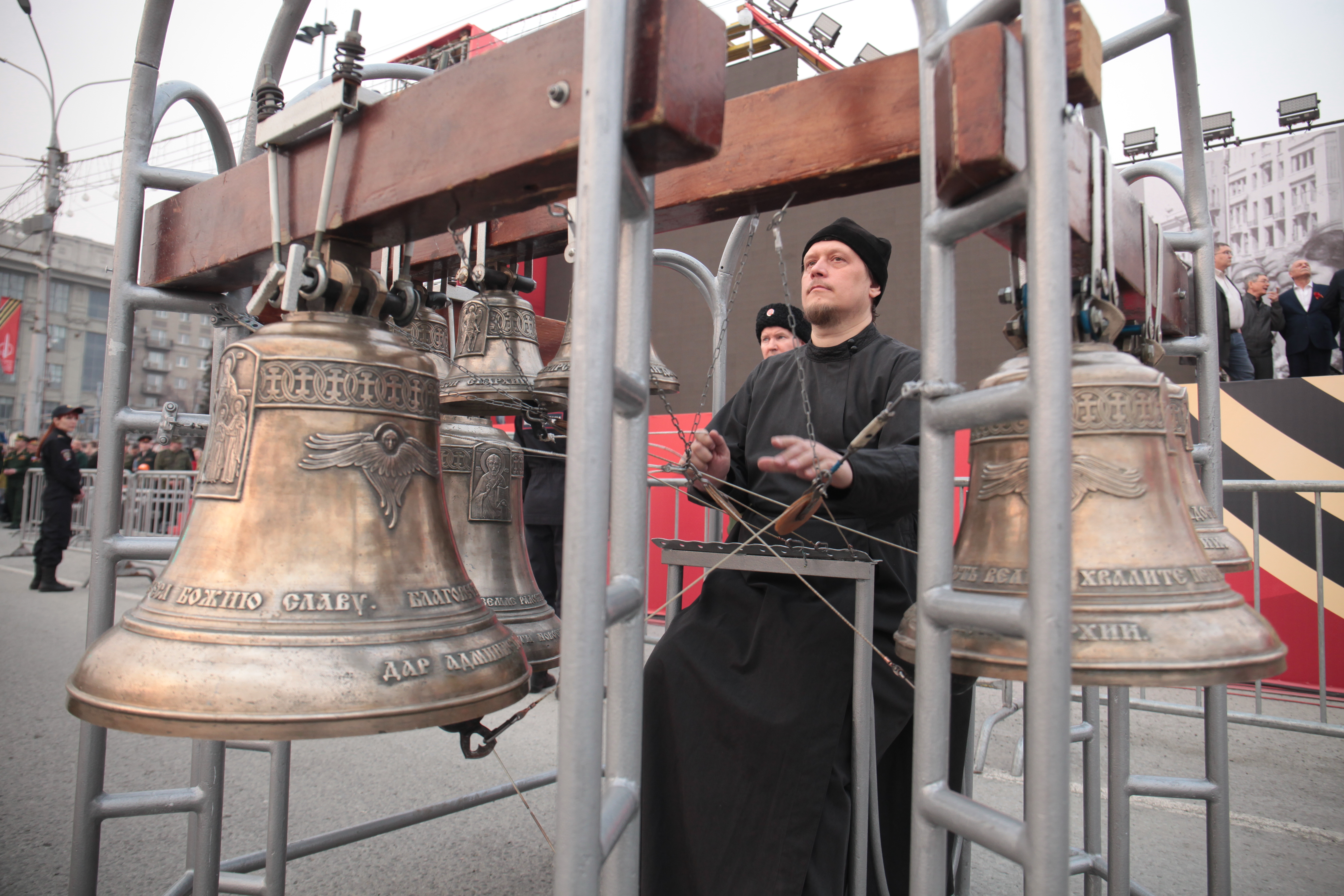 В День Победы за военными по площади Ленина обычно следовал «Бессмертный полк», но в этот раз традиционного шествия не будет: акцию проведут в онлайн-формате. Портреты ветеранов будут транслировать на уличных видеоэкранах по всему городу, в том числе и на цифровом «поясе» стелы трудовой доблести на площади Калинина.