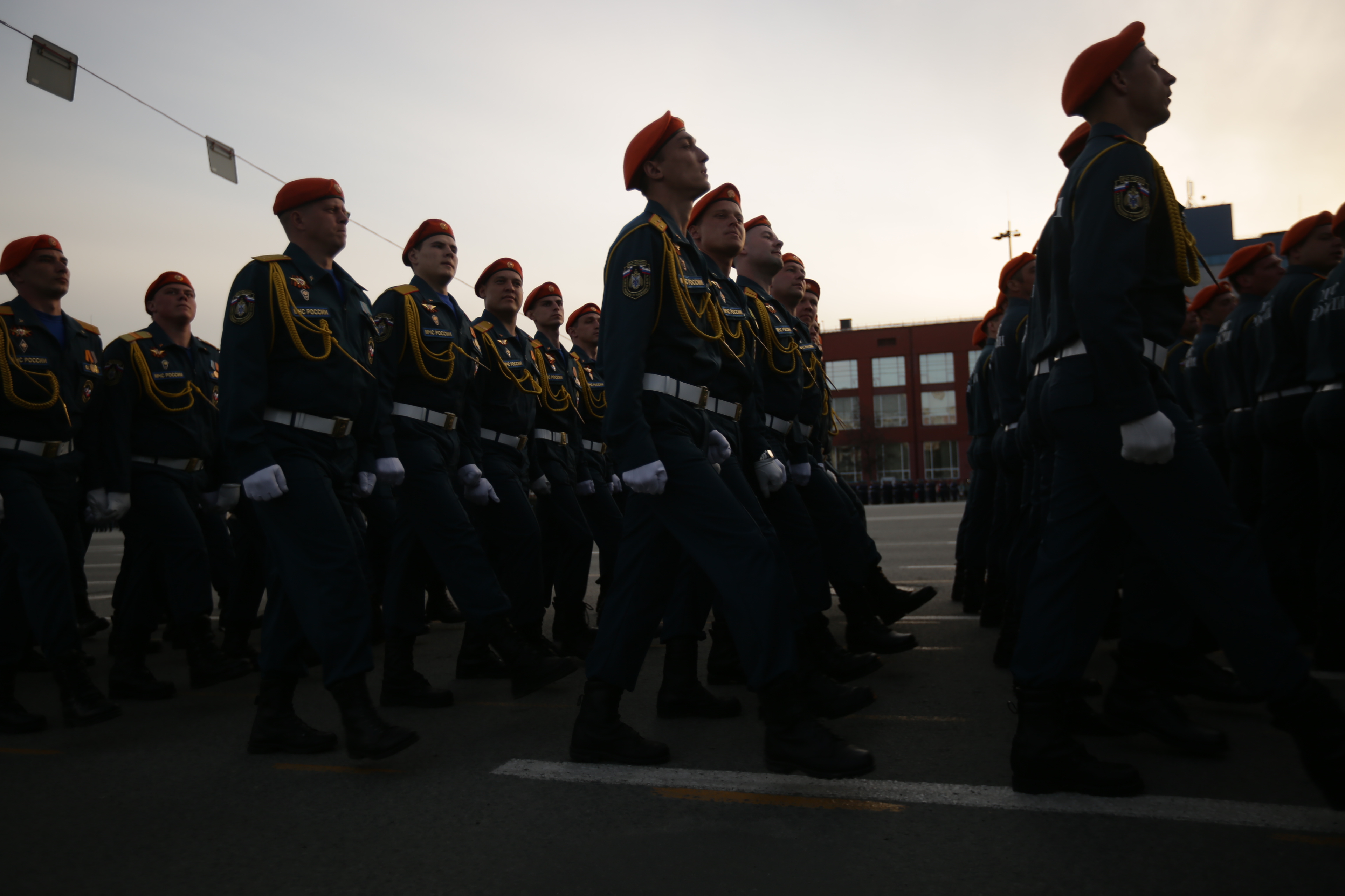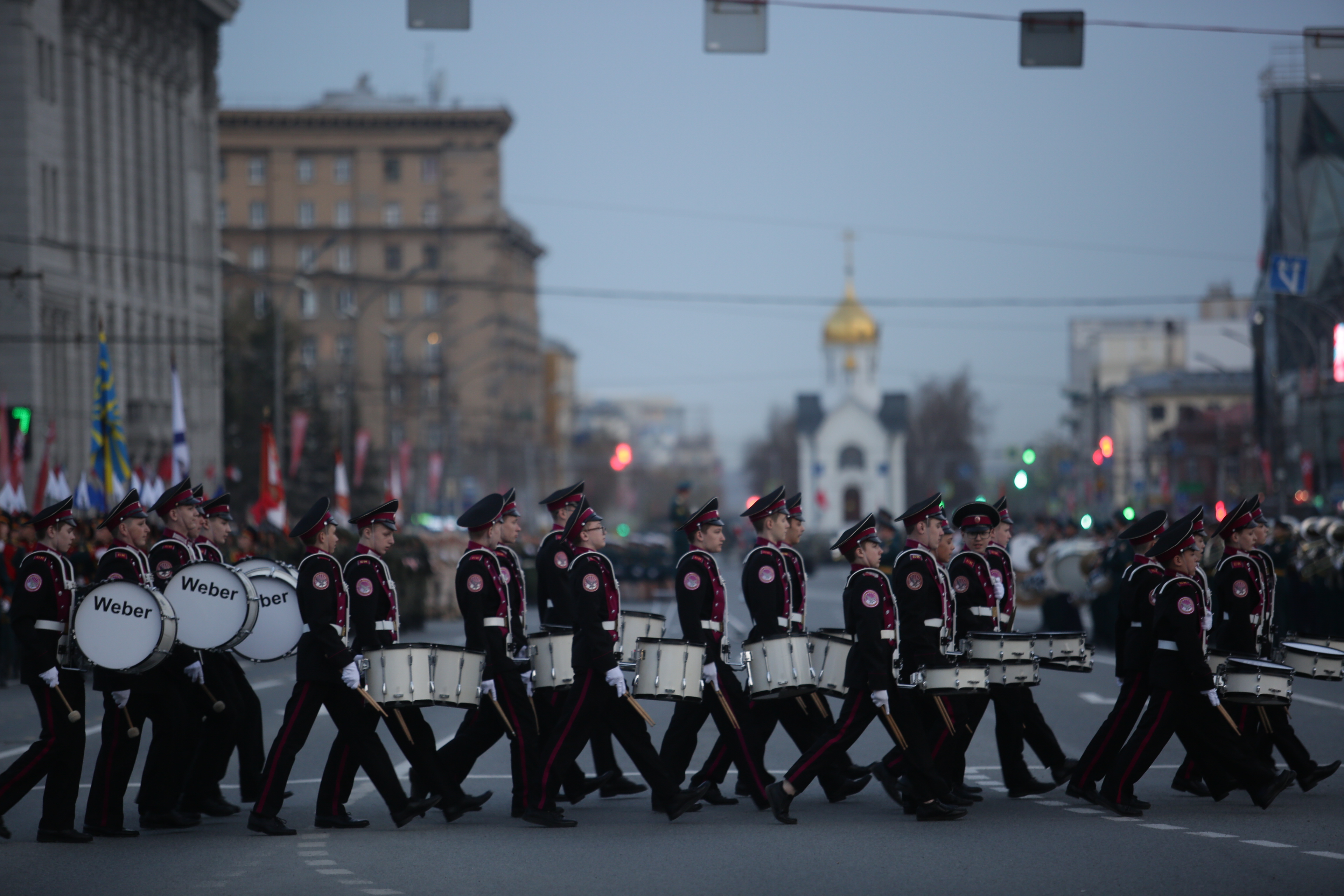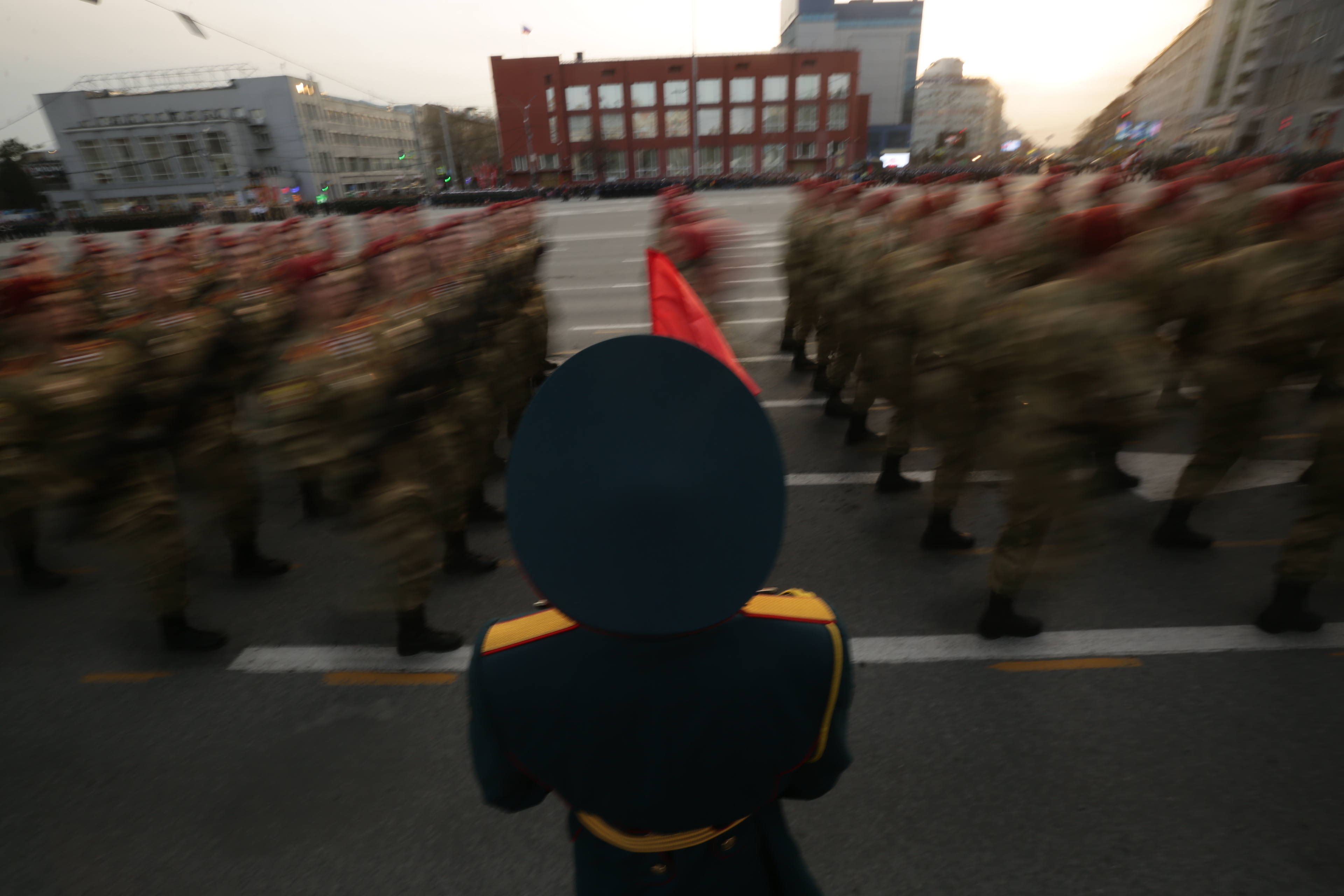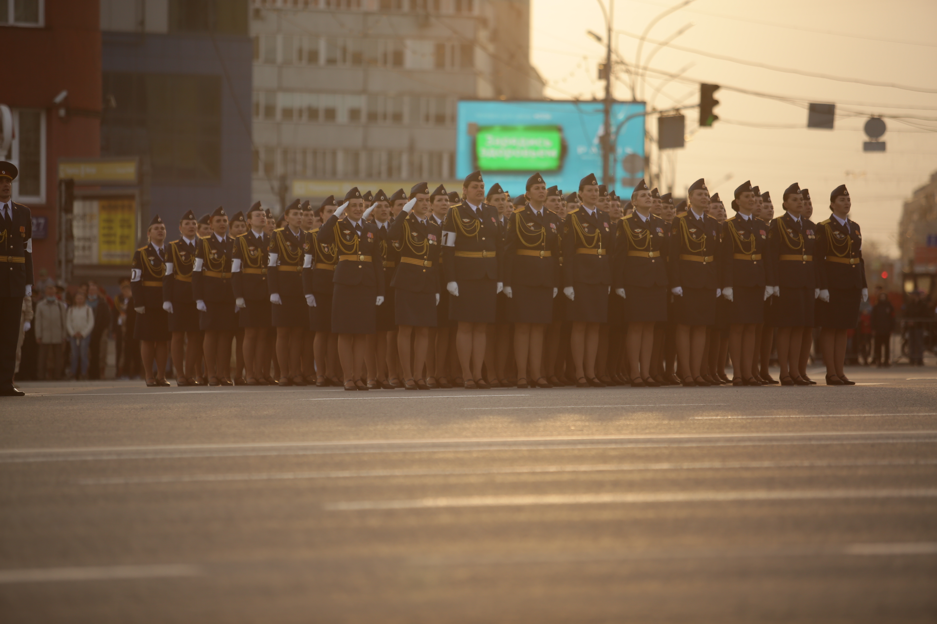 Репетиция парада началась в 17:30 и продолжалась до самой темноты. По главной площади города промаршировали сотни людей в военной форме и проехали колонны бронированной техники: ракетные комплексы «Ярс», «Триумф», «Искандер» и другие редкие гости центральных улиц.