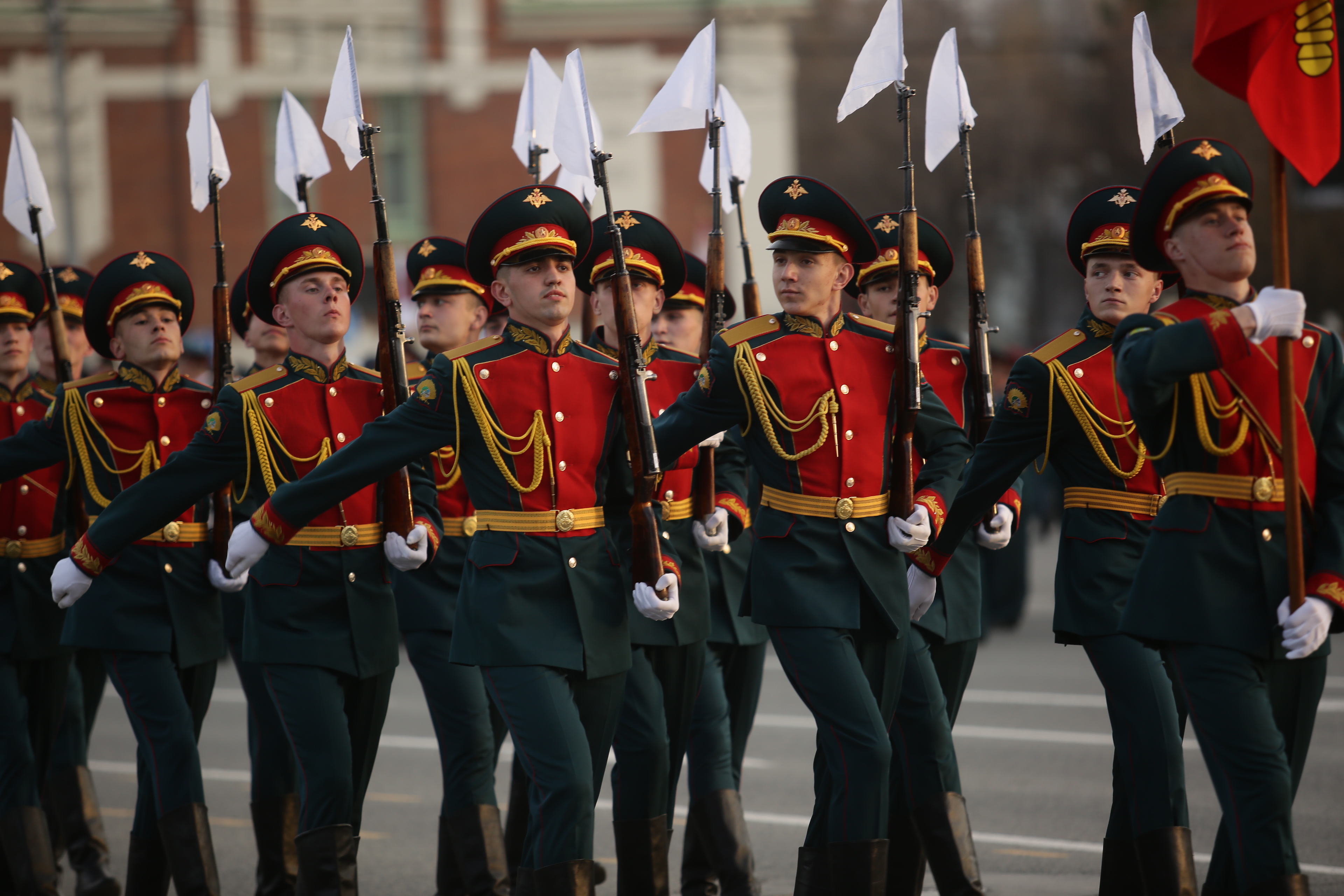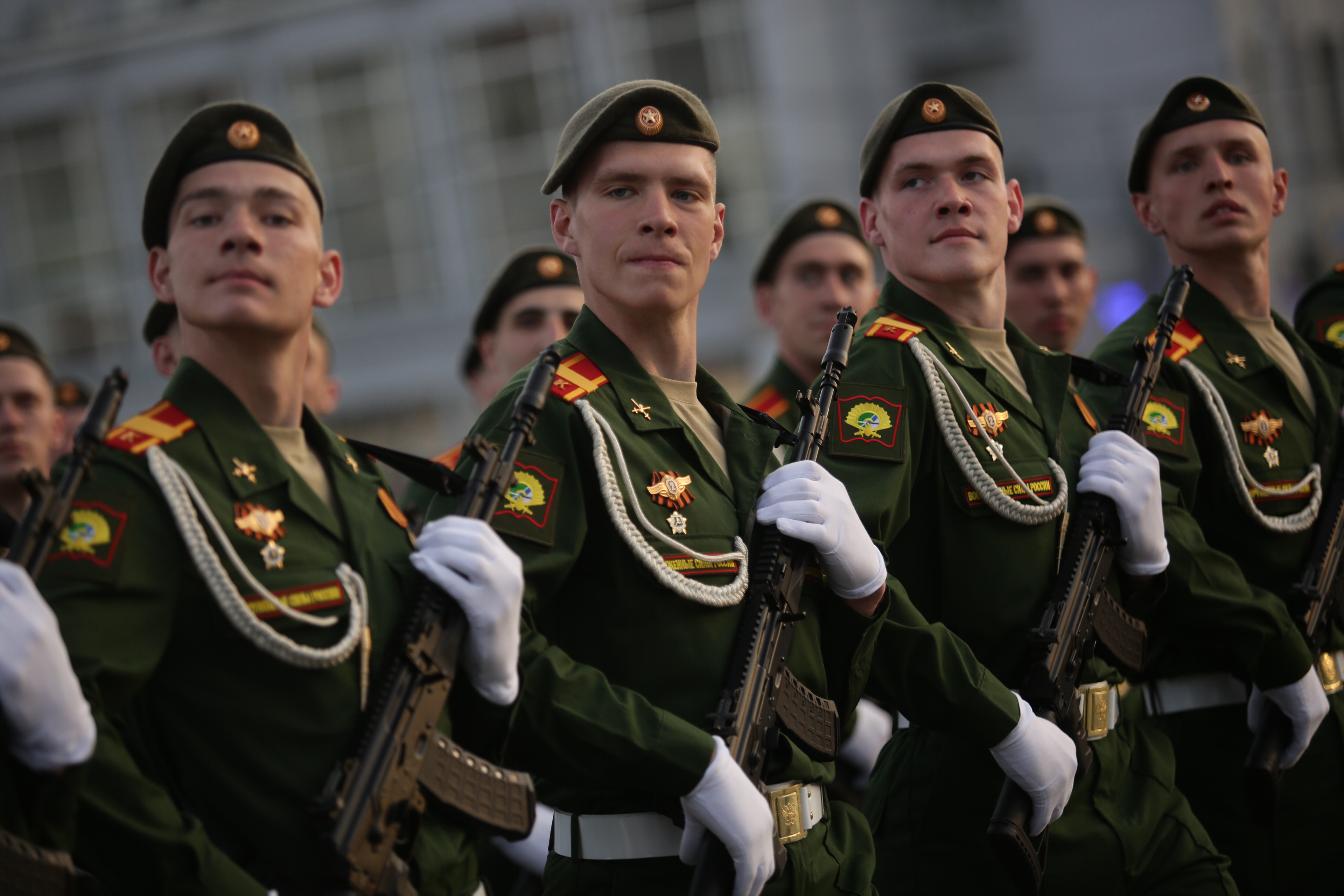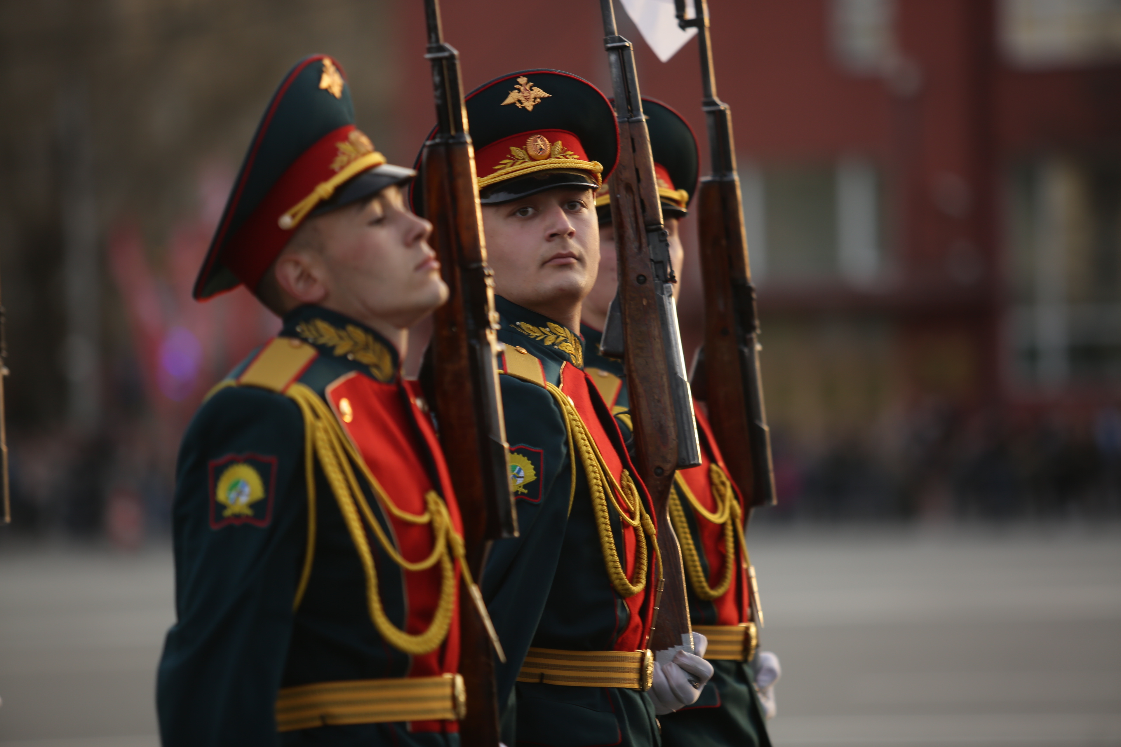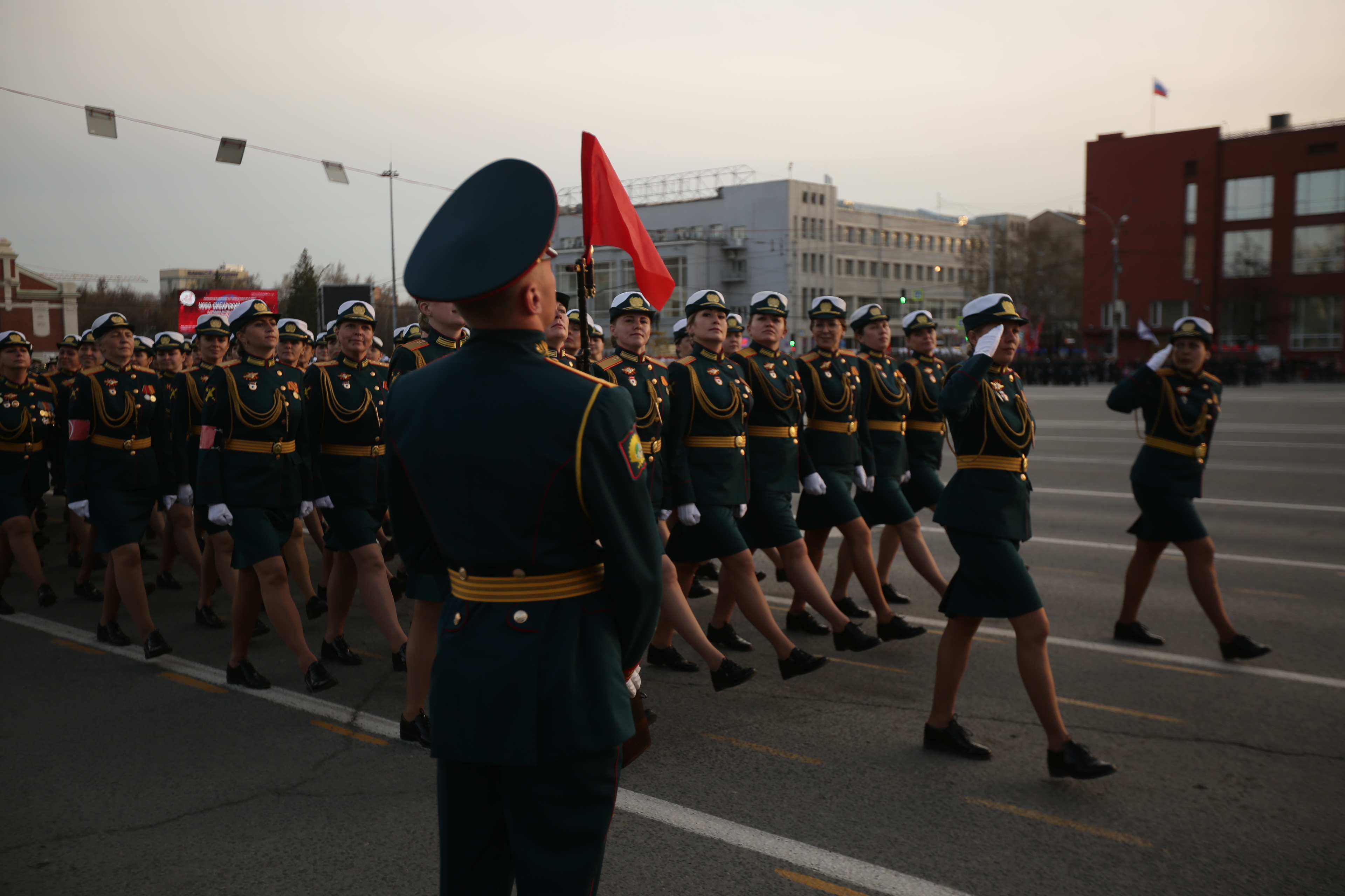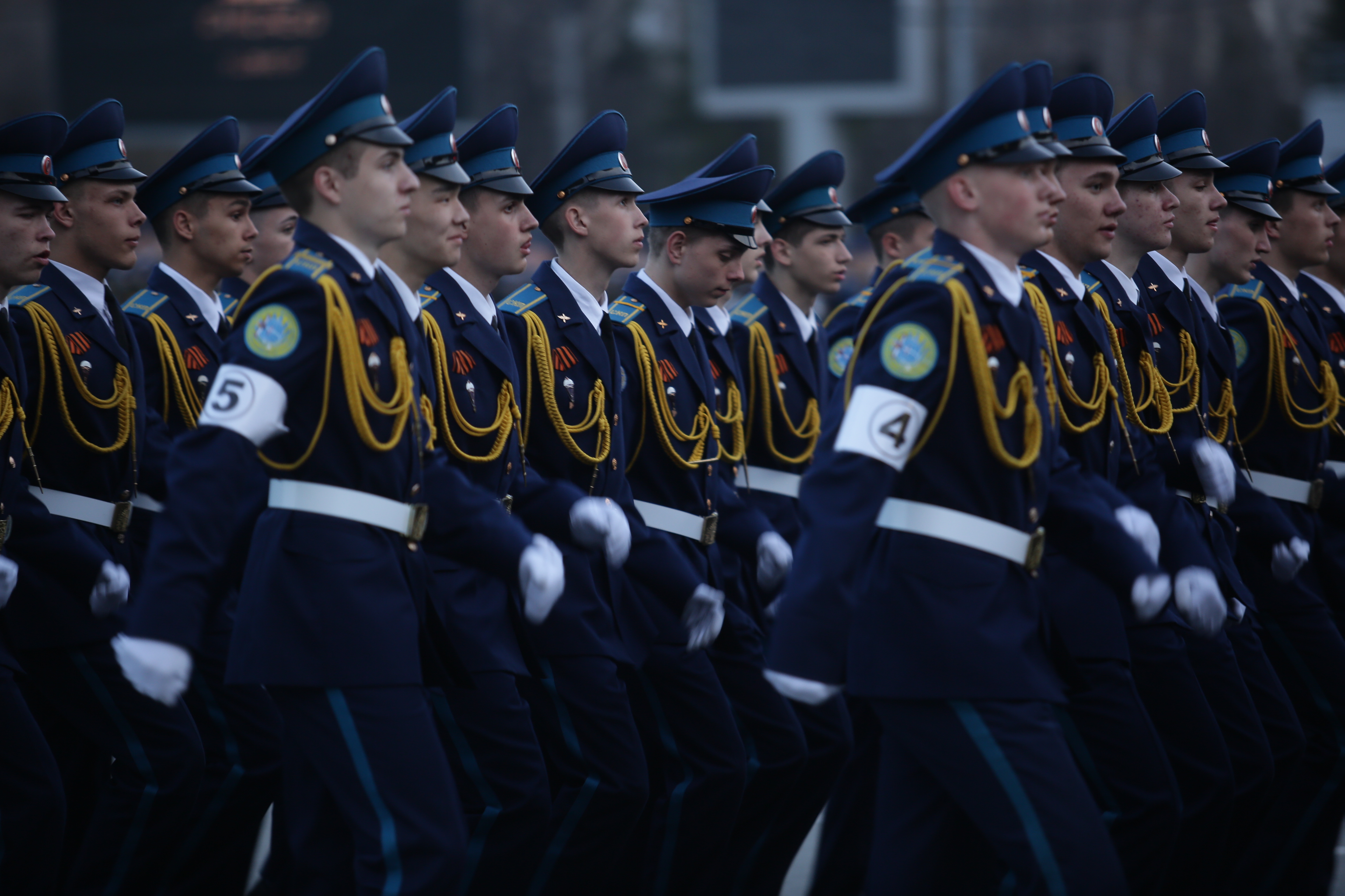 Репетиция парада началась в 17:30 и продолжалась до самой темноты. По главной площади города промаршировали сотни людей в военной форме и проехали колонны бронированной техники: ракетные комплексы «Ярс», «Триумф», «Искандер» и другие редкие гости центральных улиц.