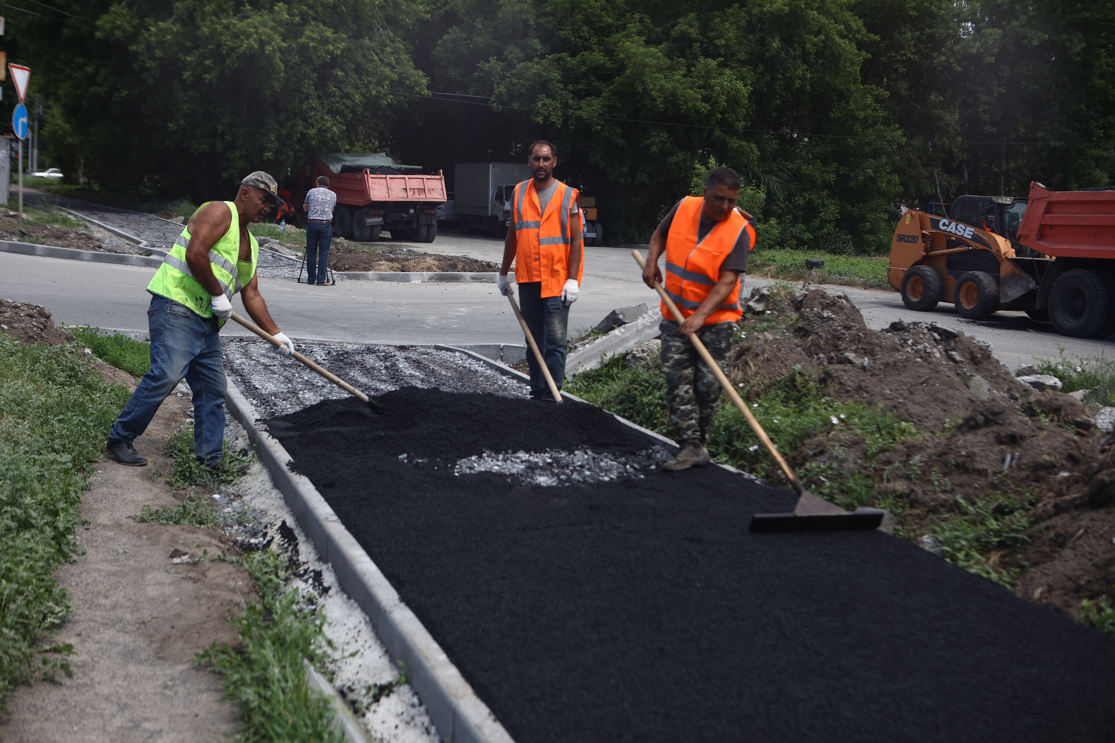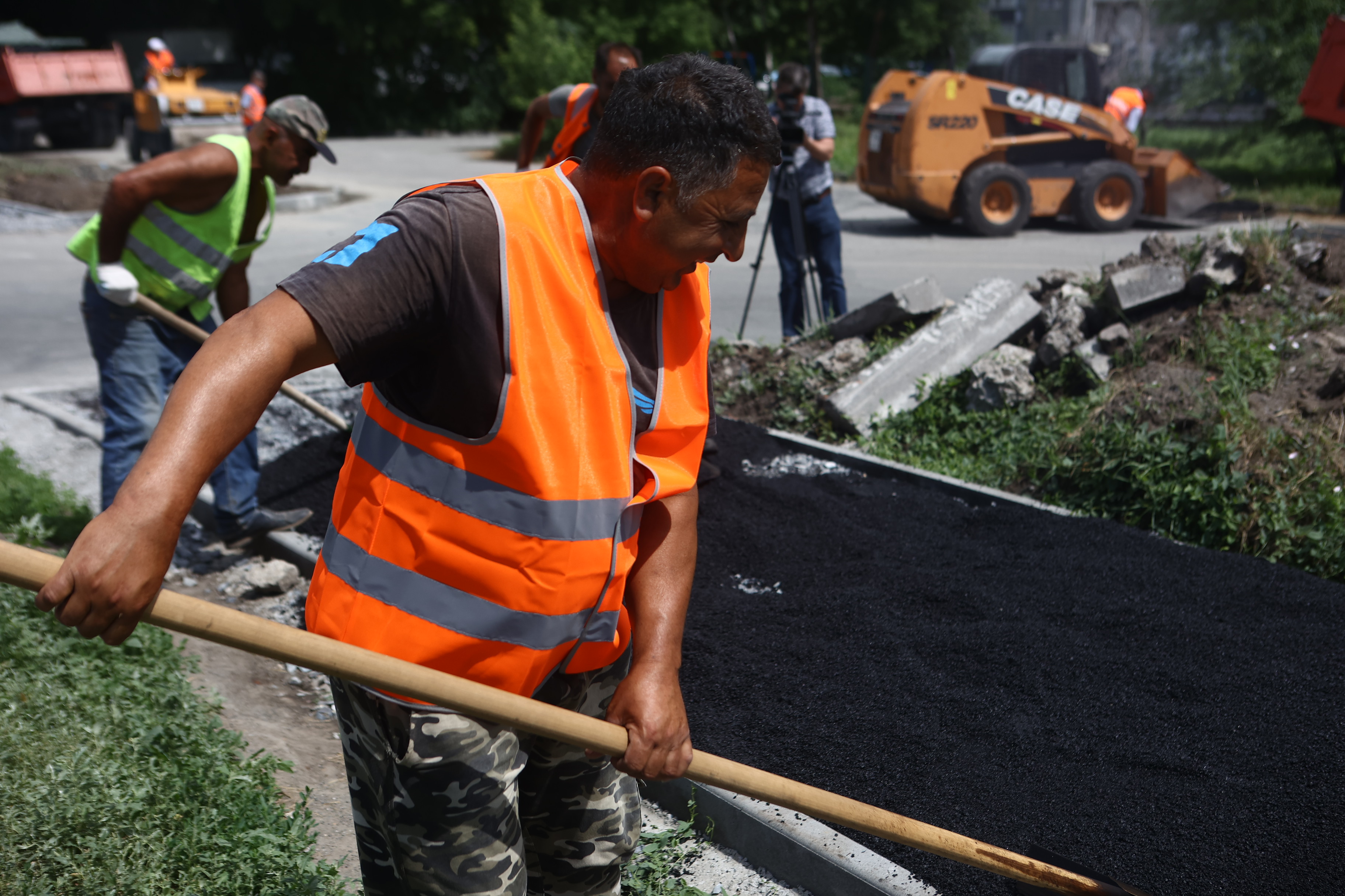 Тротуар на улице Ударной закончат ремонтировать в ближайшие дни. Сейчас рабочие укладывают асфальт. Пешеходная дорожка в этом месте была сильно разрушена, а на некоторых участках её не было вовсе.