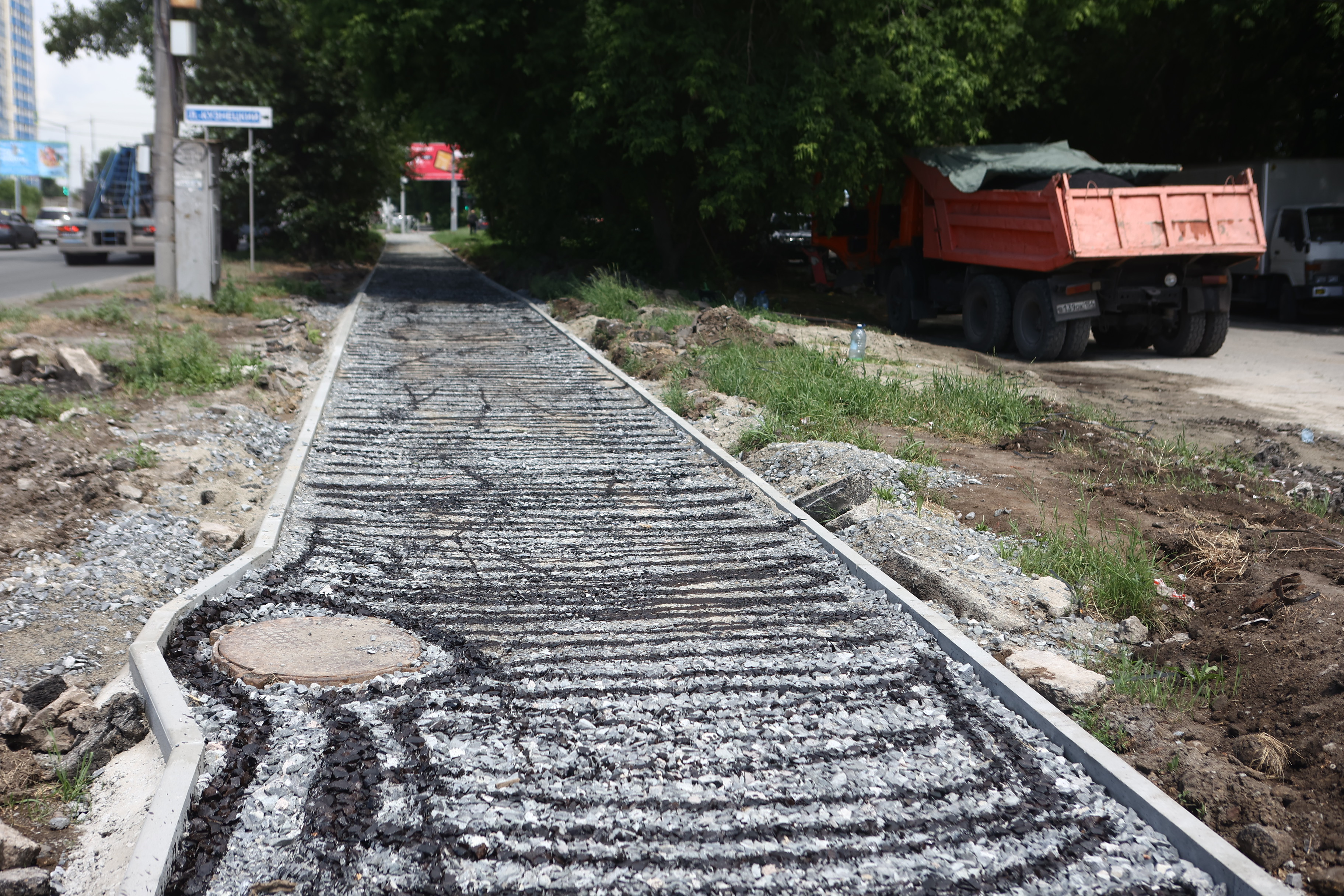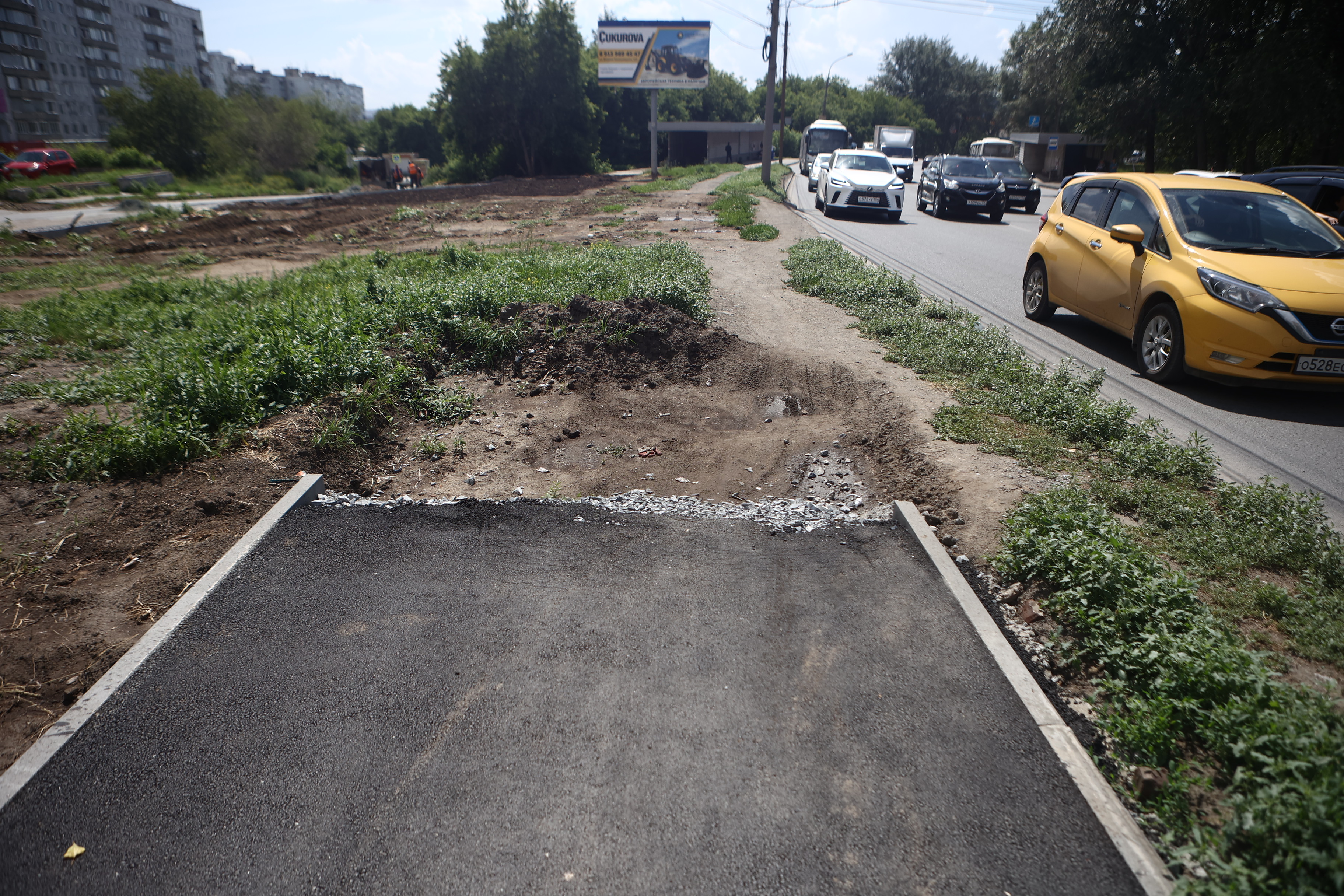 Тротуар укладывают на месте «народной тропы» к остановке «Кирзавод»