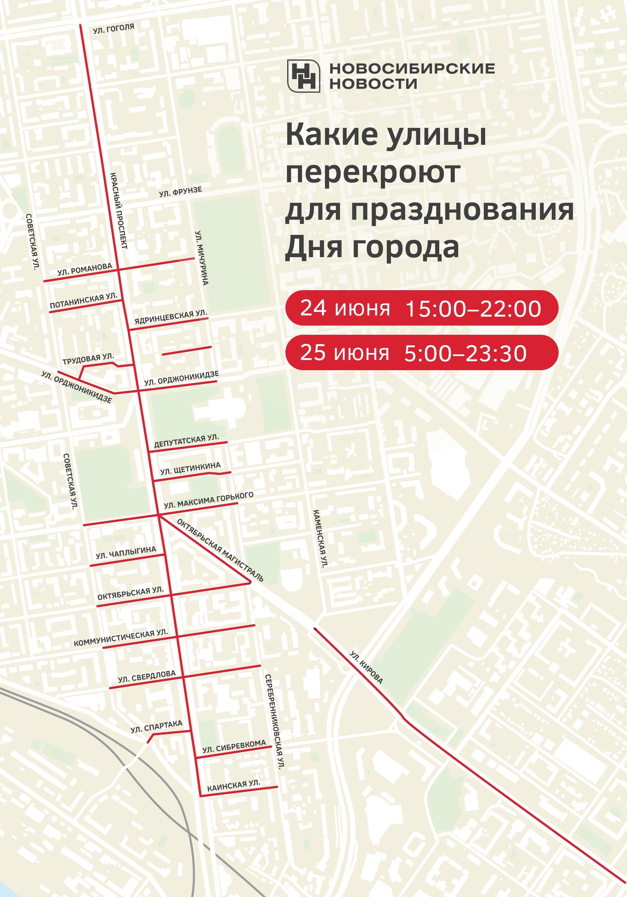Центр Новосибирска перекроют 24 и 25 июня для празднования Дня города