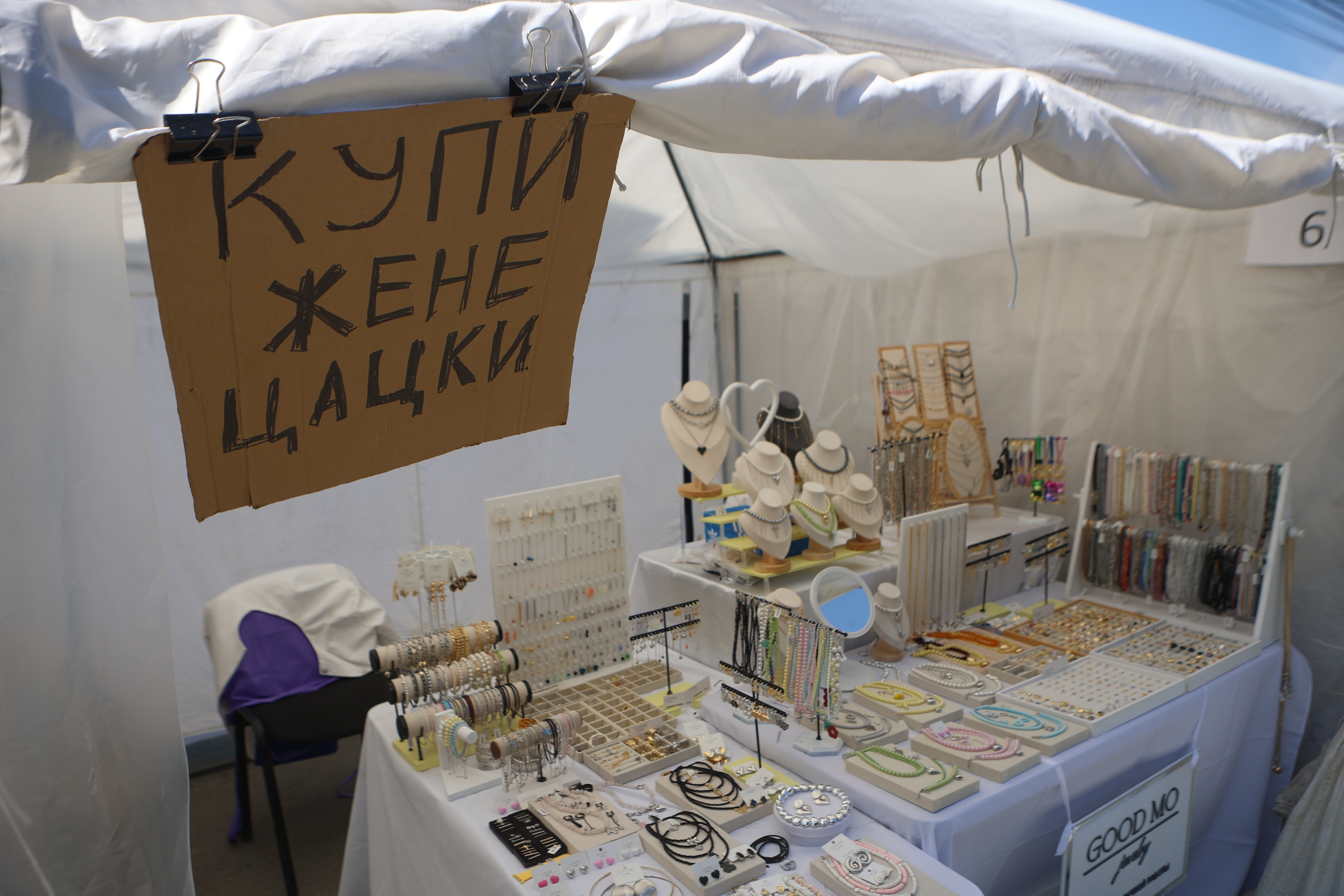 Тунику с Ван Гогом и бусы из ракушек предлагают на ярмарке у «Глобуса»