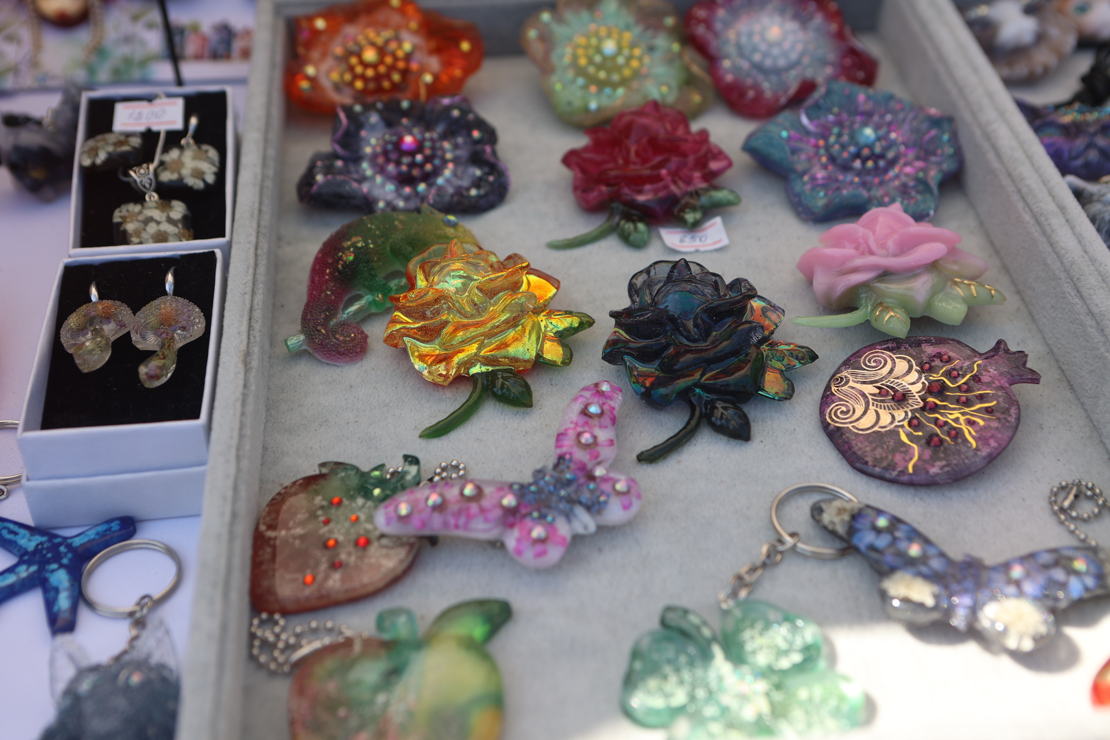 «Матовые украшения не совсем стандартные, яркое любят в основном. Если взрослые люди, то колье. Молодёжь любит всё новое, необычное», — проанализировала спрос участница арт-фестиваля Алина Силивончик.