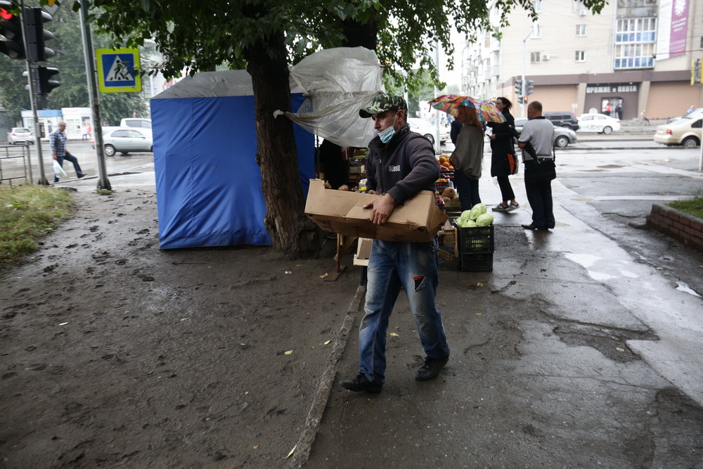 Продавец палатки на Ватутина не был готов к приходу представителей управления потребительского рынка мэрии и полиции, но на просьбу свернуть торговлю отреагировал спокойно. Вызвав по телефону хозяина палатки, парень начал переносить ящики с фруктами и овощами в припаркованную тут же грузовую «газель». Участковый составил протокол на имя прибежавшего после звонка владельца и опечатал весы.