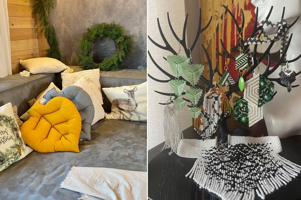 Помимо картин в экспозиции можно увидеть другие работы — разнообразные предметы интерьера и женские аксессуары — от особенных авторов.