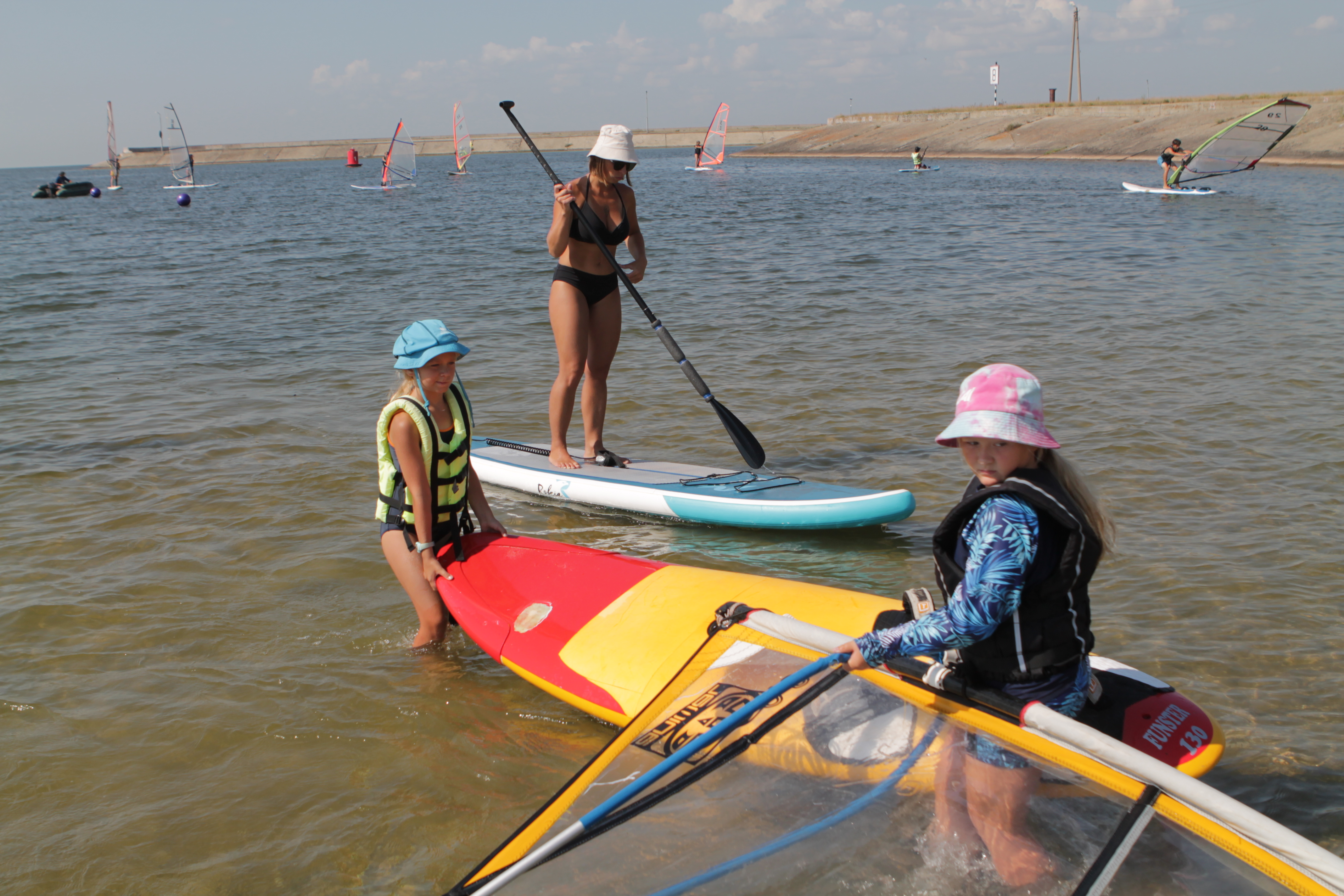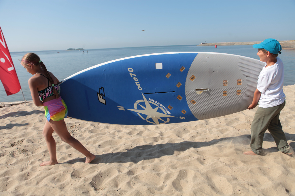 Юные сёрферы Яся и Аля тоже делятся с нами своими секретами. По словам девочек, в море у них есть «кладовка». Это такая большая яма, в которую, если не знаешь, можно провалиться с головой, почти не отходя от берега. Дети хорошо изучили размеры «кладовки», спускаются в неё осторожно.