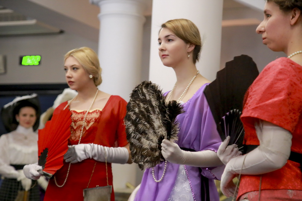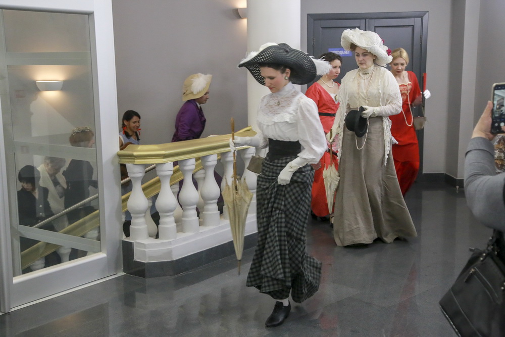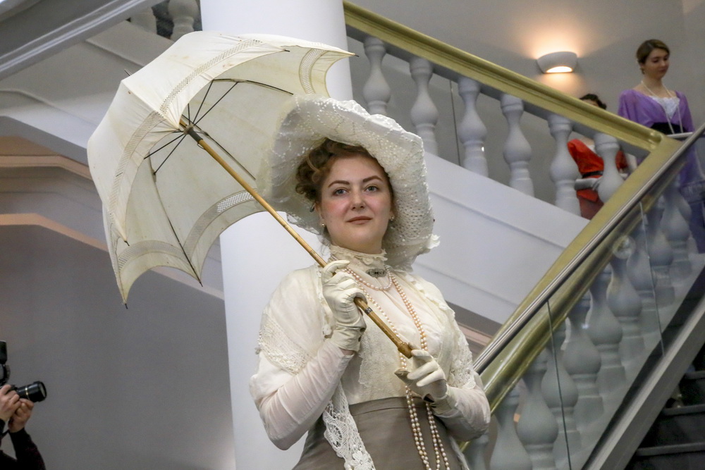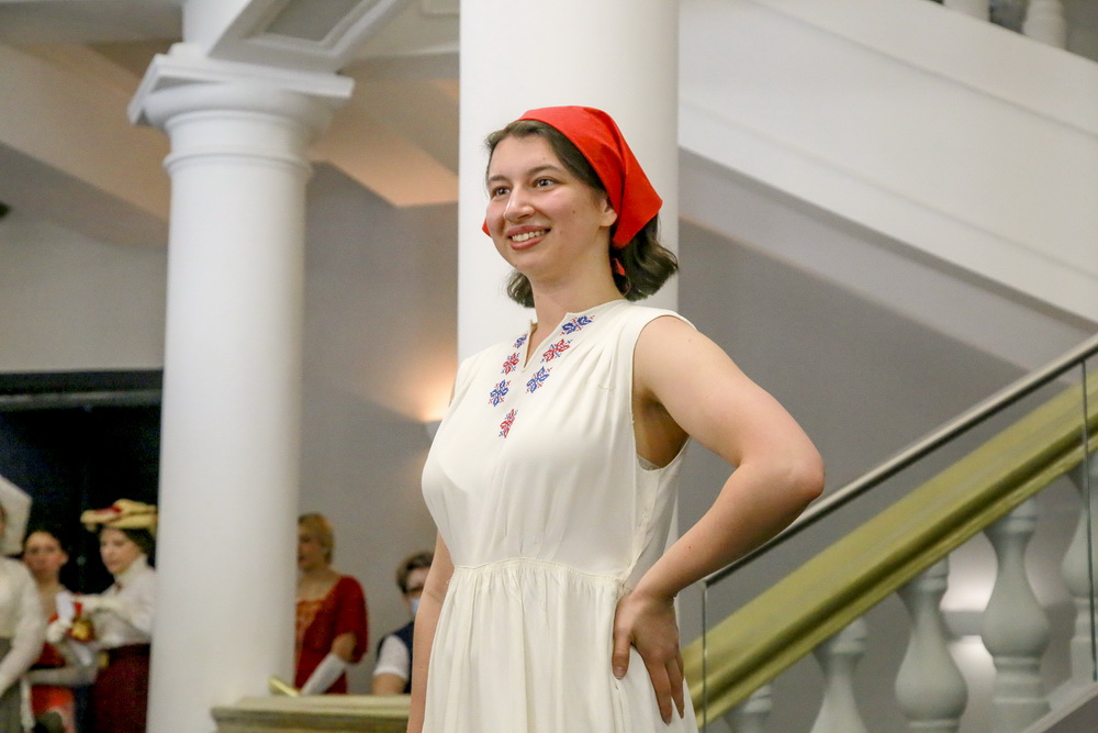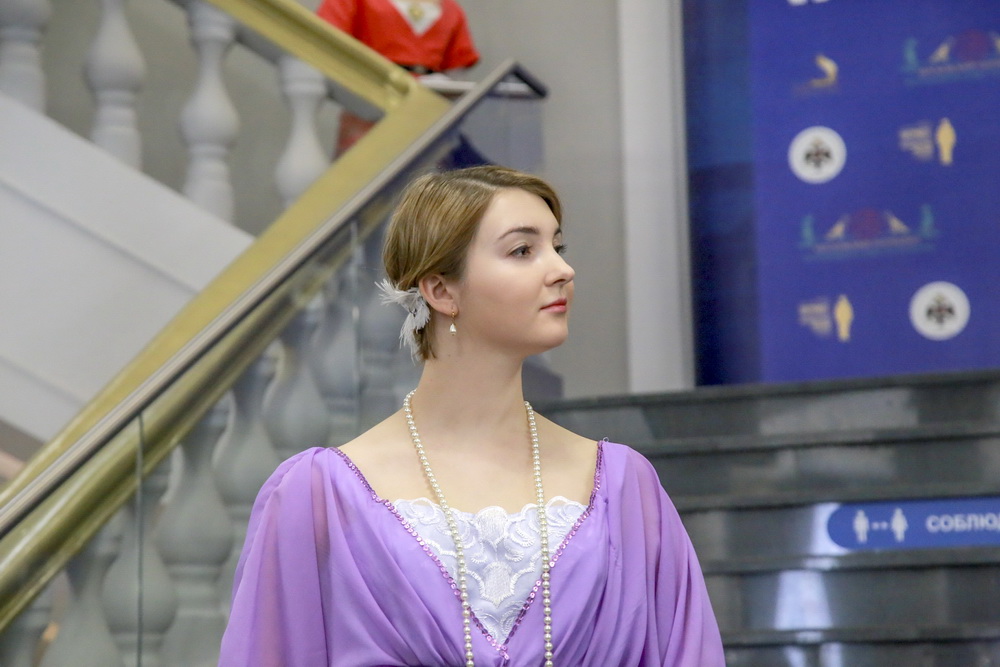 «И образ, который мы сейчас видим, — это образ студентки, которая решилась в таком конкурсе поучаствовать», — добавляет экскурсовод.