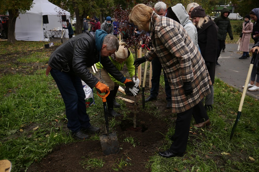 Посадка декоративных яблонь «Роялти» в центре города — подарок Новосибирску от компании «Гедеон Рихтер». Ещё 12 саженцев сорта «Недзведзкого» высадят в Сквере медицинских работников.