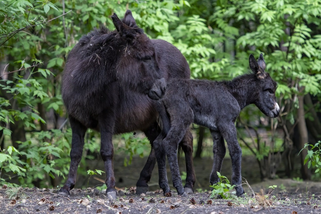 В числе новорождённых и два очаровательных ослика. Они всюду следуют за своими мамами и быстро растут.