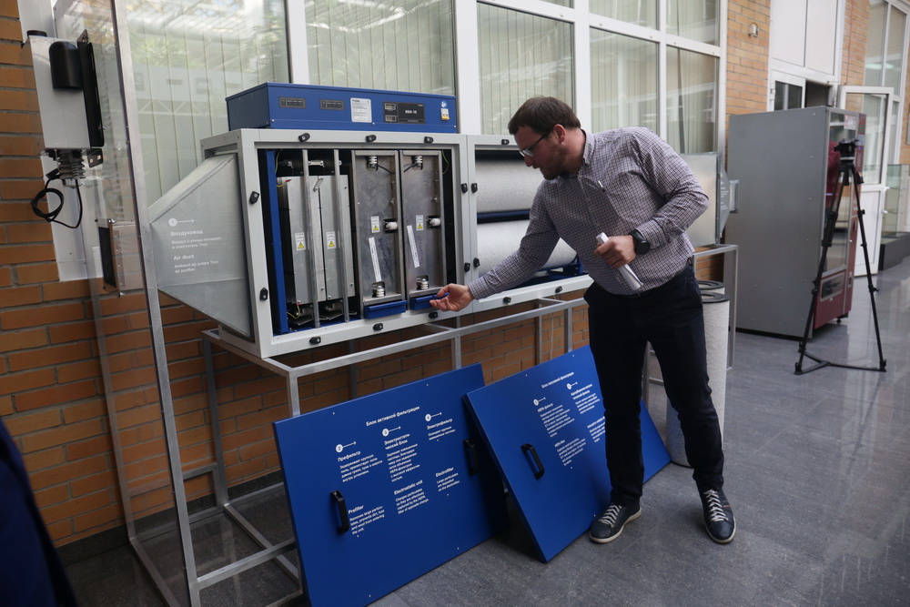 «То есть это не ультрафиолет, это статика. Это озонирование. Почти стопроцентный захват микроорганизмов на поверхности фильтрующих материалов. Эти фильтры мы сами разрабатываем и производим», — рассказал специалист.