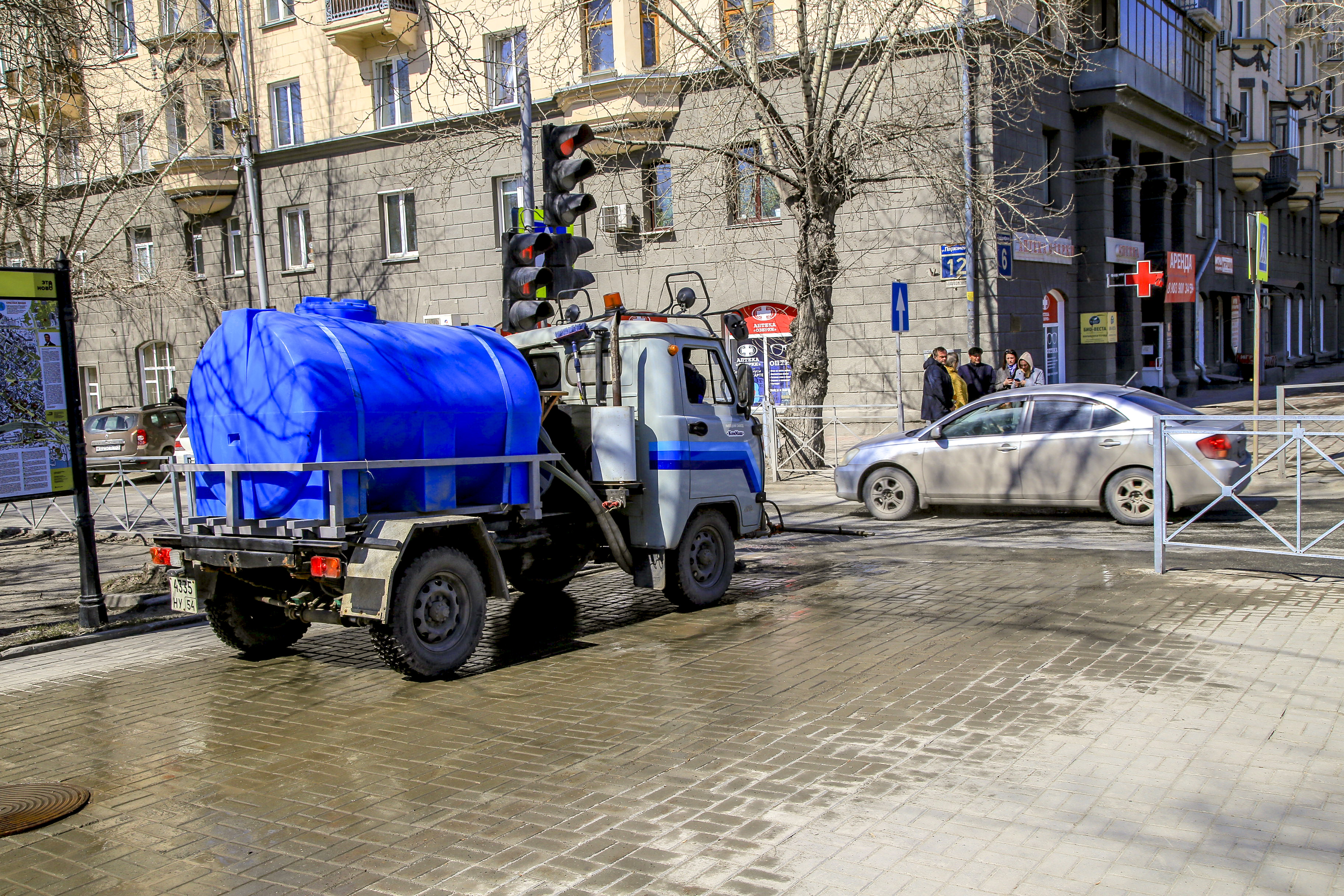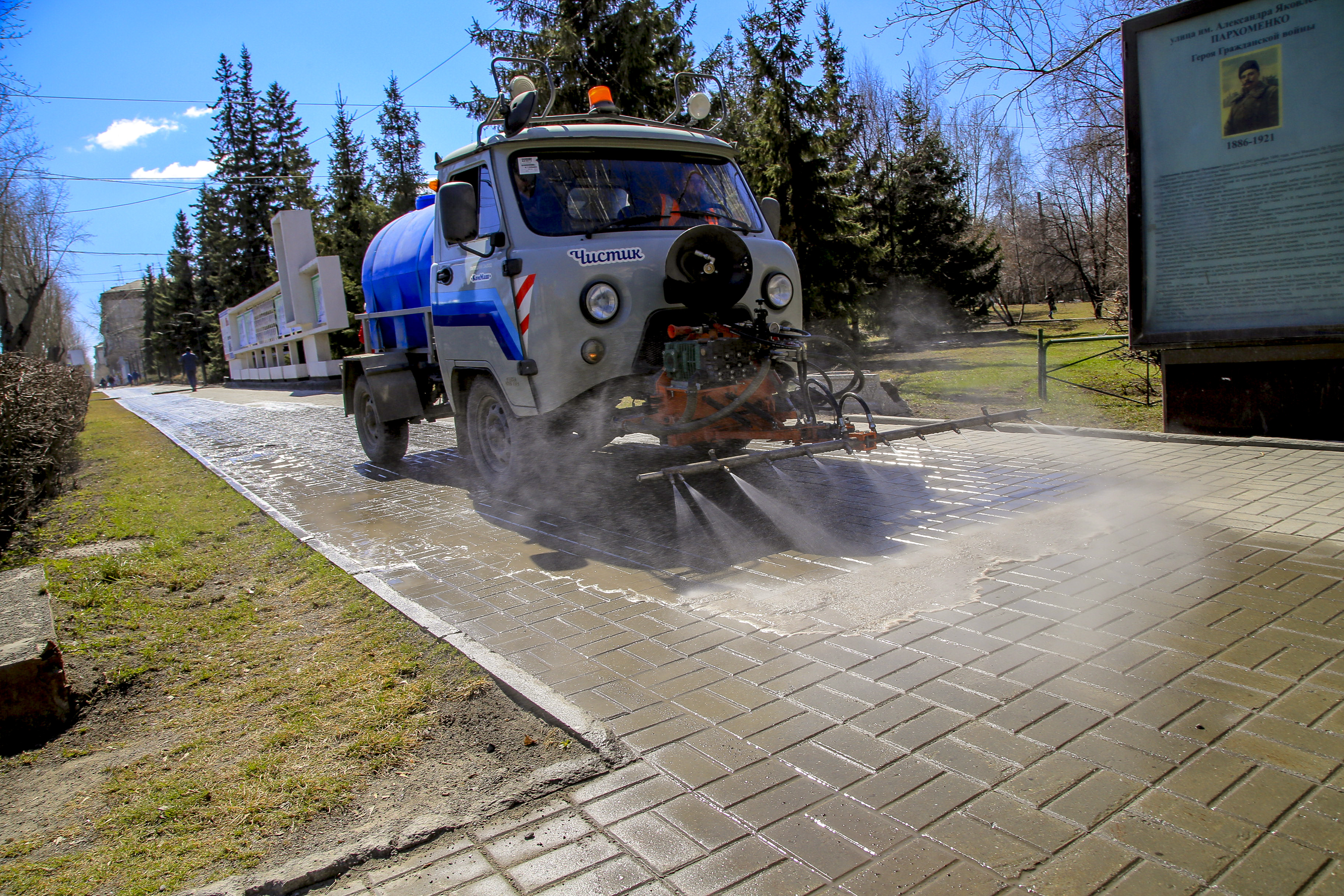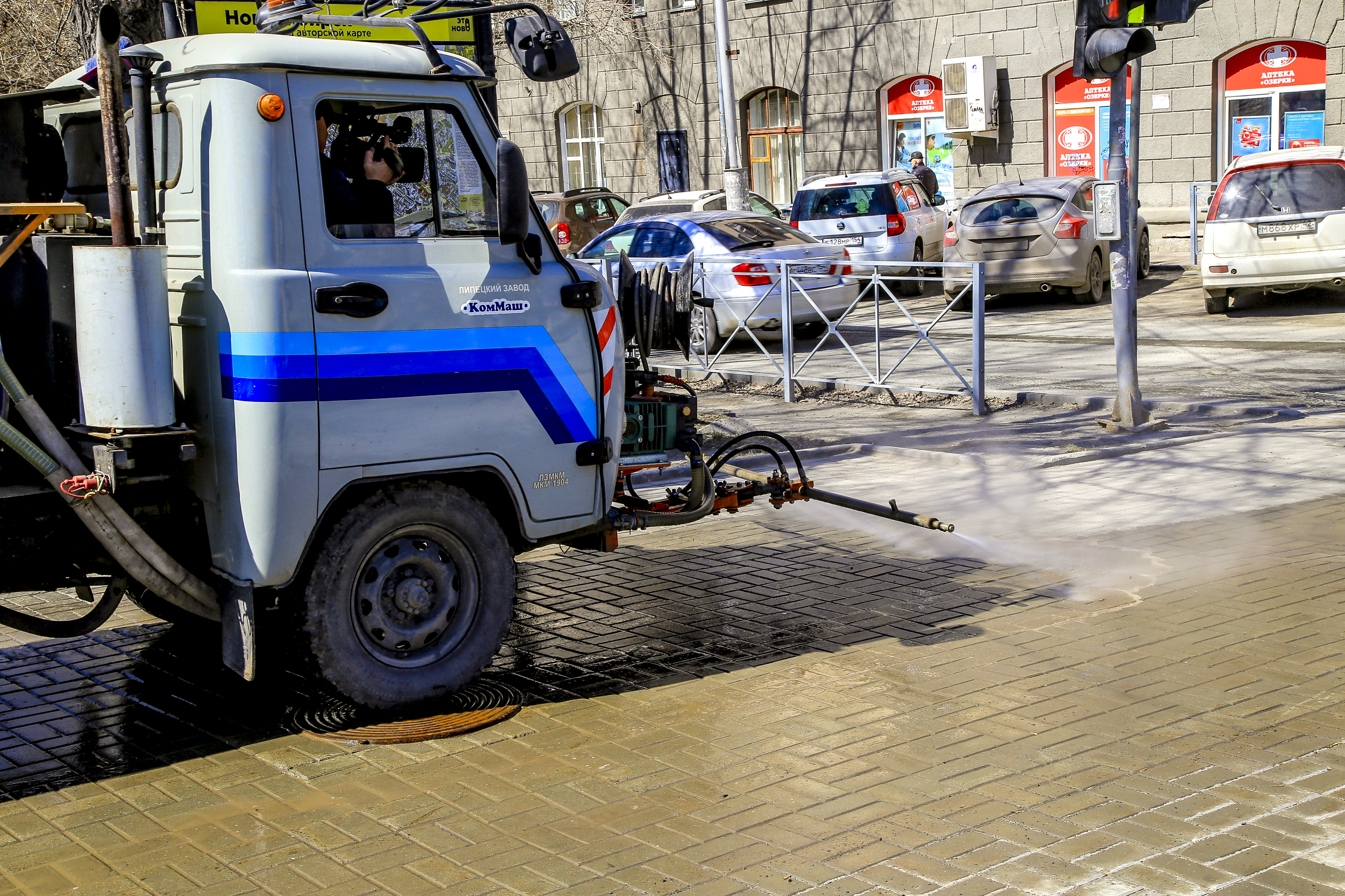 Специализированная техника работает на дорогах и тротуарах днём и ночью. Сейчас погода позволяет использовать поливочные и подметальные машины в полную силу. Ко Дню Победы обещают привести город в порядок. За уборкой в Ленинском районе наблюдала корреспондент «Новосибирских новостей».