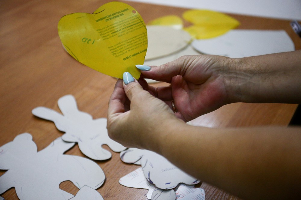 Один из заключительных этапов — набивка чехла. Материалами служат поролоновая крошка, синтепон, силикон. Самые большие игрушки, например, двухметровых медведей, набивают латексной крошкой. Чтобы не казались квашнёй, а держали форму, поясняют мастера.