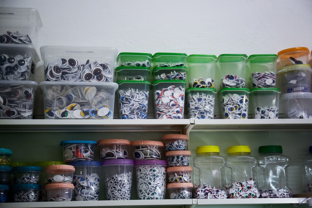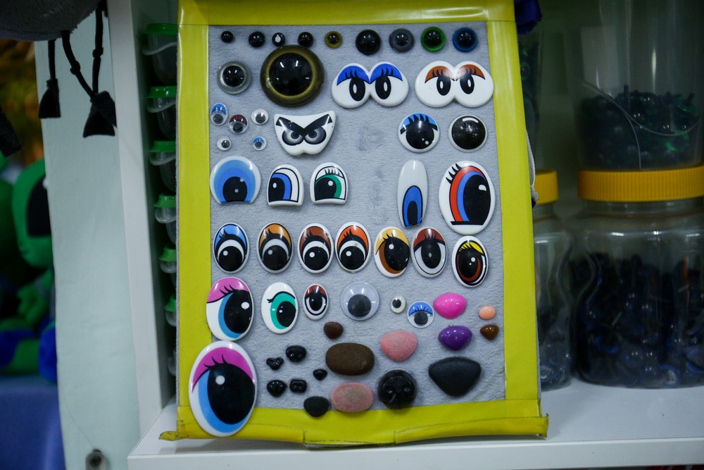 Их тут так много, что, как говорится, глаза разбегаются. Есть глаз-вышивка. Глаз-плёнка. А есть «живые» — очень похожие на настоящие, с радужкой.
