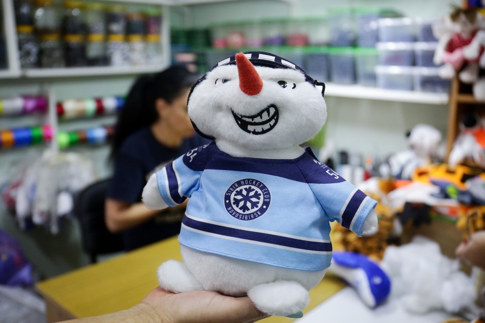 Именно из этого цеха когда-то вышел знаменитый Снеговик — талисман хоккейного клуба «Сибирь». Маскота делали почти полгода — никак не могли определиться с внешностью. А потом художник случайно сложил снеговику глаза «в кучу» и скривил ему улыбку — получился страшный, но жутко обаятельный герой, который вот уже много лет радует поклонников новосибирского хоккея.