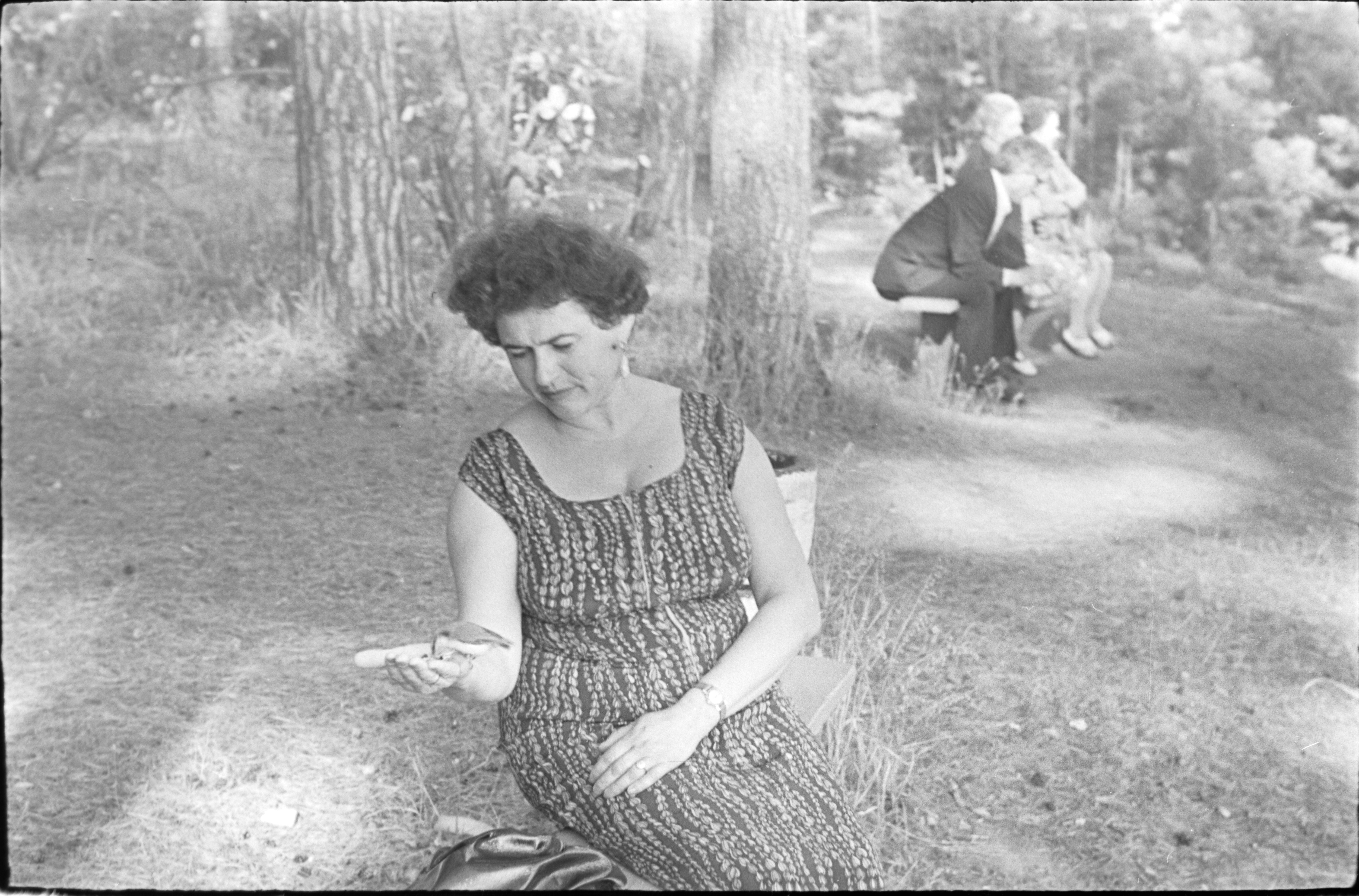 На чёрно-белых кадрах с фотоплёнки мы видим людей, отдыхающих в санатории «Речкуновский». Они гуляют по парку, кормят белок, сидят на скамейках. Мужчины одеты в строгие пиджаки, женщины — в нарядные платья. Также на снимках неизвестного автора можно рассмотреть парадный вход в главный корпус.