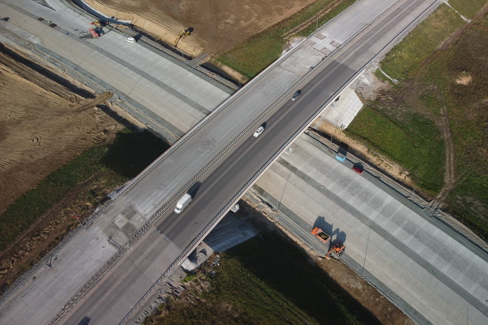 «На съездах транспортной развязки отсыпают слои основания из песка и щебёночно-песчаной смеси, ведут работы по чернению и укреплению откосов. Кроме этого, на объекте продолжается устройство систем водоотвода, окрашивание мостовых сооружений», — пояснили в учреждении, добавив, что всего в строительстве участвуют 89 рабочих и больше полусотни машин.