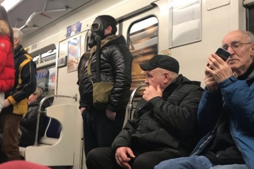 Коронавирусная паника не щадит никого. Люди закупаются медицинскими масками и другими средствами защиты. Очевидцы в метро сфотографировали «сталкера» в чёрном противогазе. Фото появилось в соцсети «ВКонтакте» 27 марта.