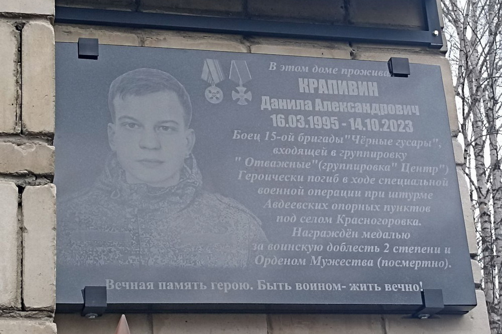Сегодня, 22 октября, на улице Марата в Первомайском районе торжественно открыли мемориальную доску погибшему год назад под Красногоровкой 28-летнему Даниле Крапивину. Перед мобилизацией он водил поезда в Новосибирском метрополитене.