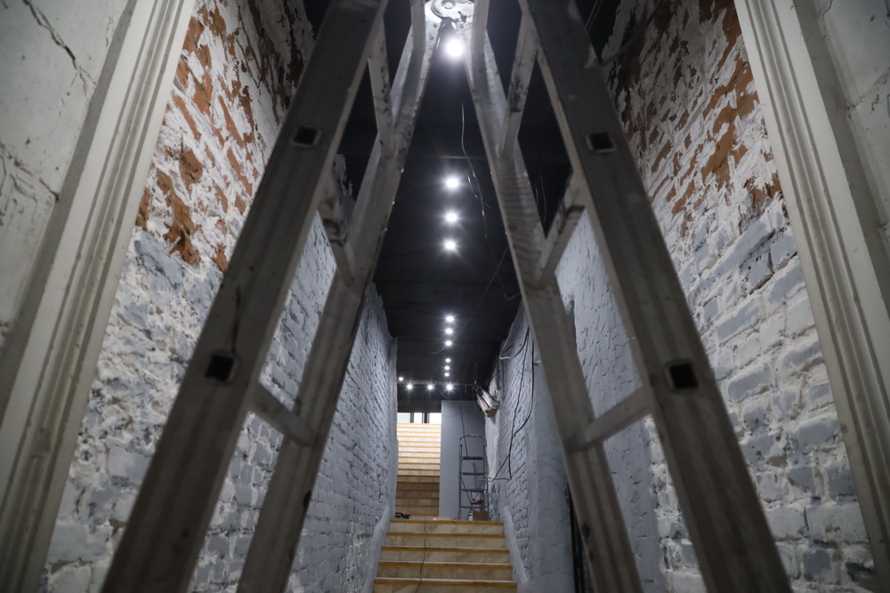 «Разобрали потолки, разобрали часть стен. Под штукатуркой оказалась интересная каменная кладка, её решили оставить как есть. В зрительном зале нам досталась галерея из окон — там подумываем обустроить несколько мест для зрителей. Театральный подиум, лестницы и даже закулисный коридор в планах сделать частью сценического пространства», — говорит Артём Марков.