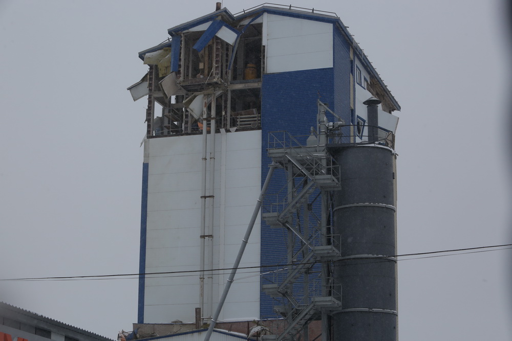 Из-за взрыва не устояло здание, в котором производили и хранили комбикорм. Разрушено два верхних этажа из восьми. Пострадал один человек. Спасатели МЧС выехали разбирать завалы и выяснять причины инцидента.