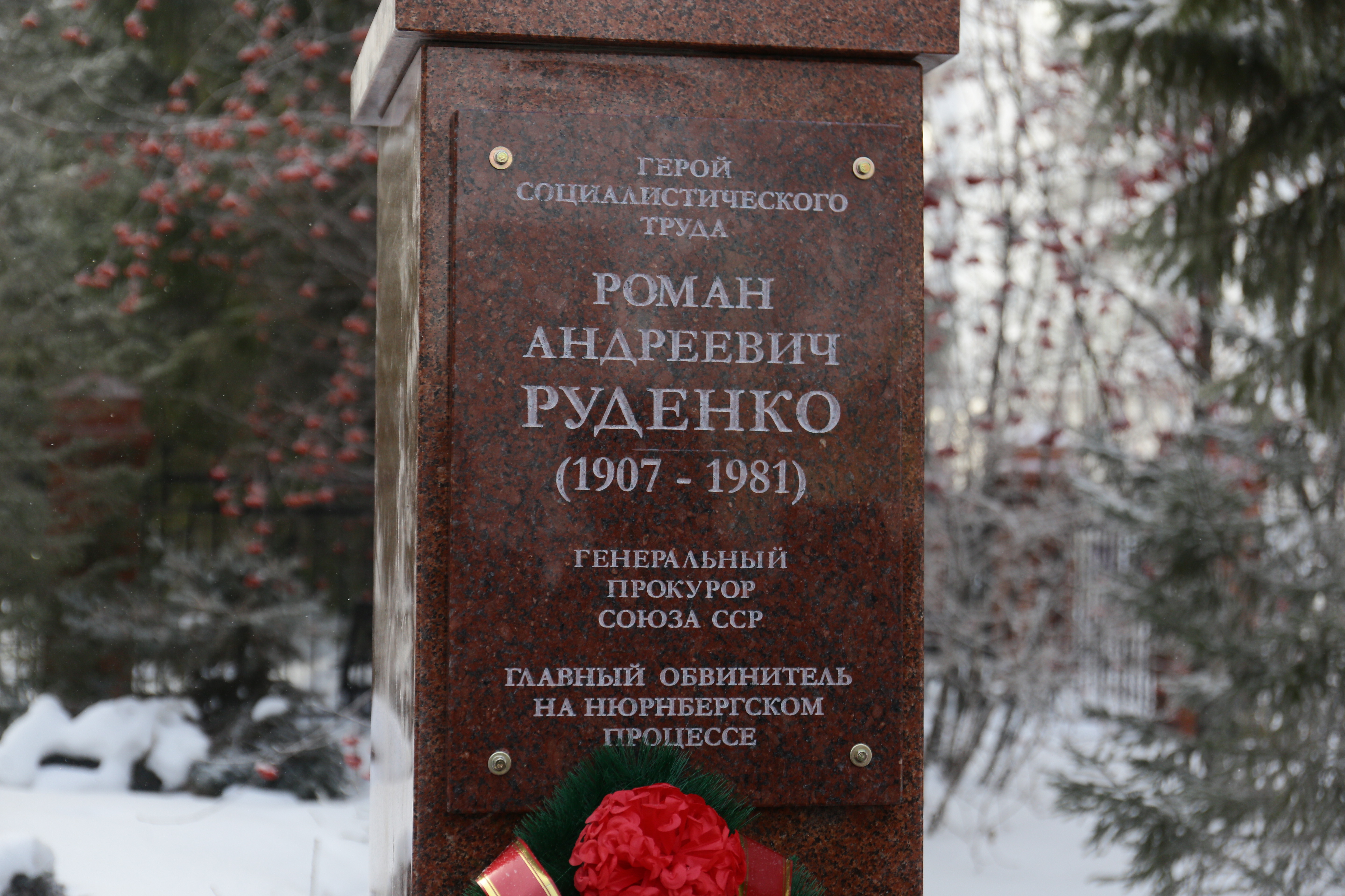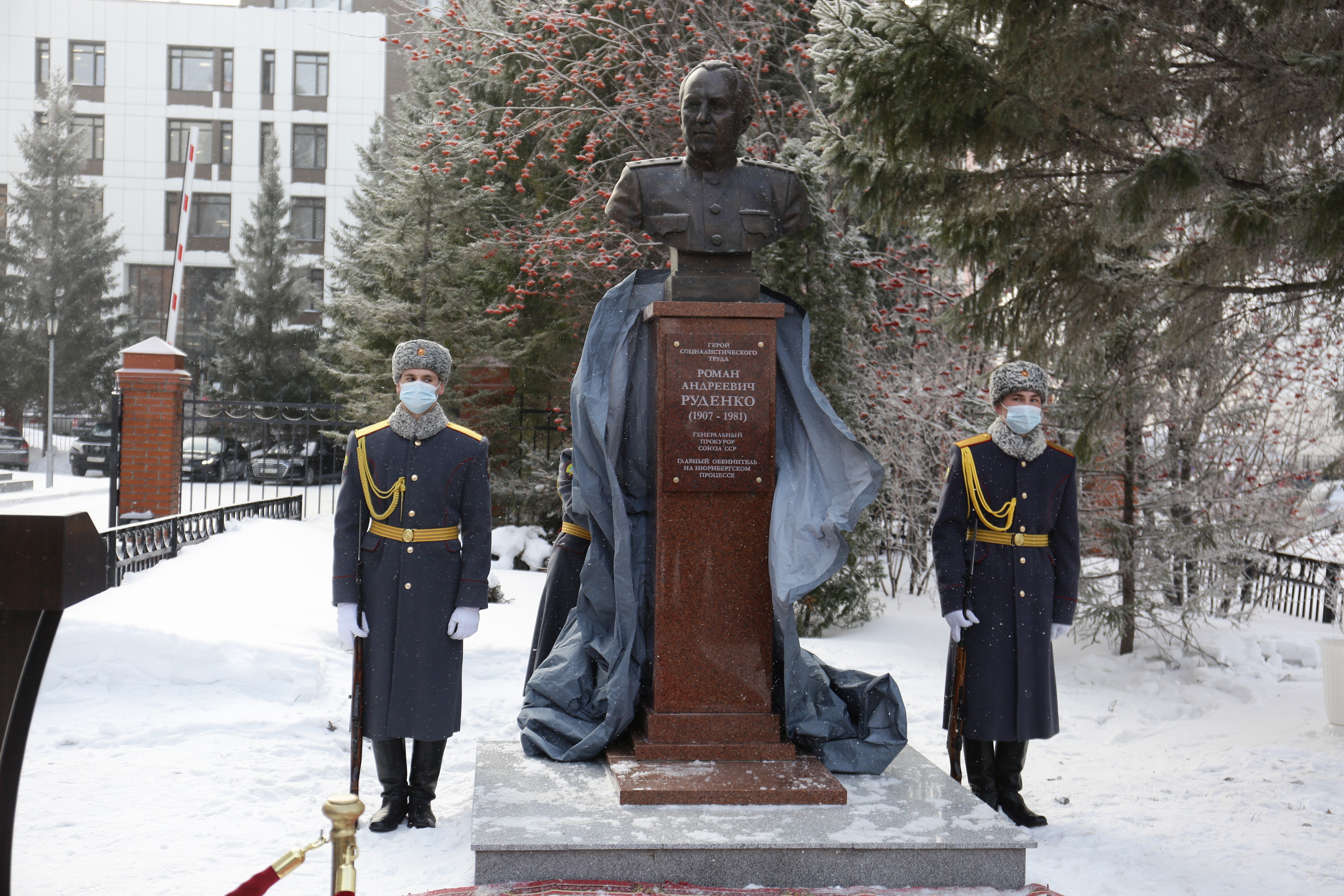 Сегодня, 20 января, в Новосибирске на улице Нижегородской открыли памятник бывшему генеральному прокурору СССР Роману Руденко.