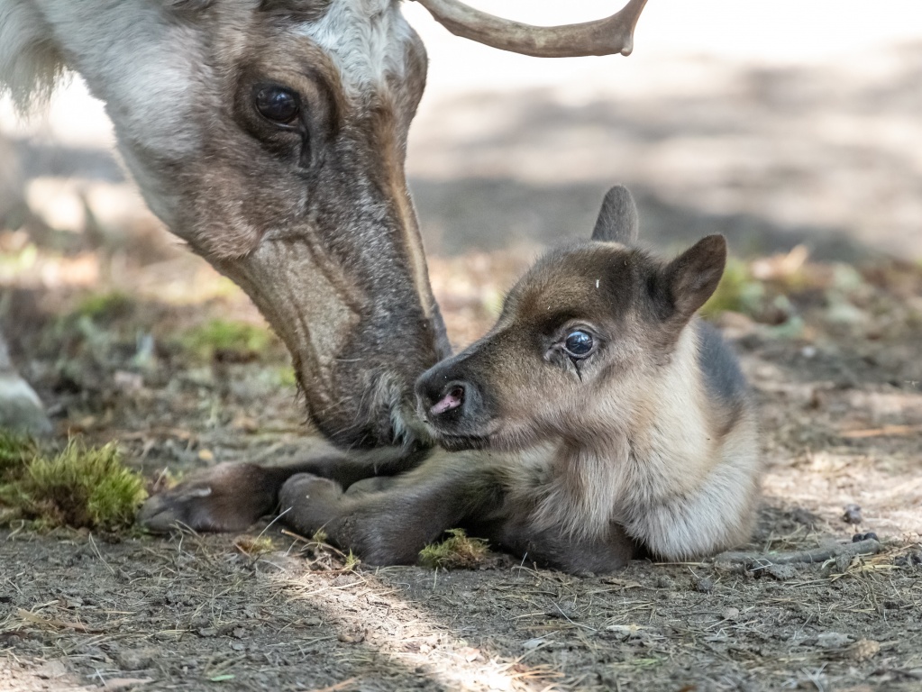 Также в зоопарке родился северный оленёнок. Это мальчик, он быстро растёт и с первого дня жизни старается ни на шаг не отстать от мамы. Ещё несколько дней назад детёныш питался только маминым молоком, а теперь уверенно жуёт мох.