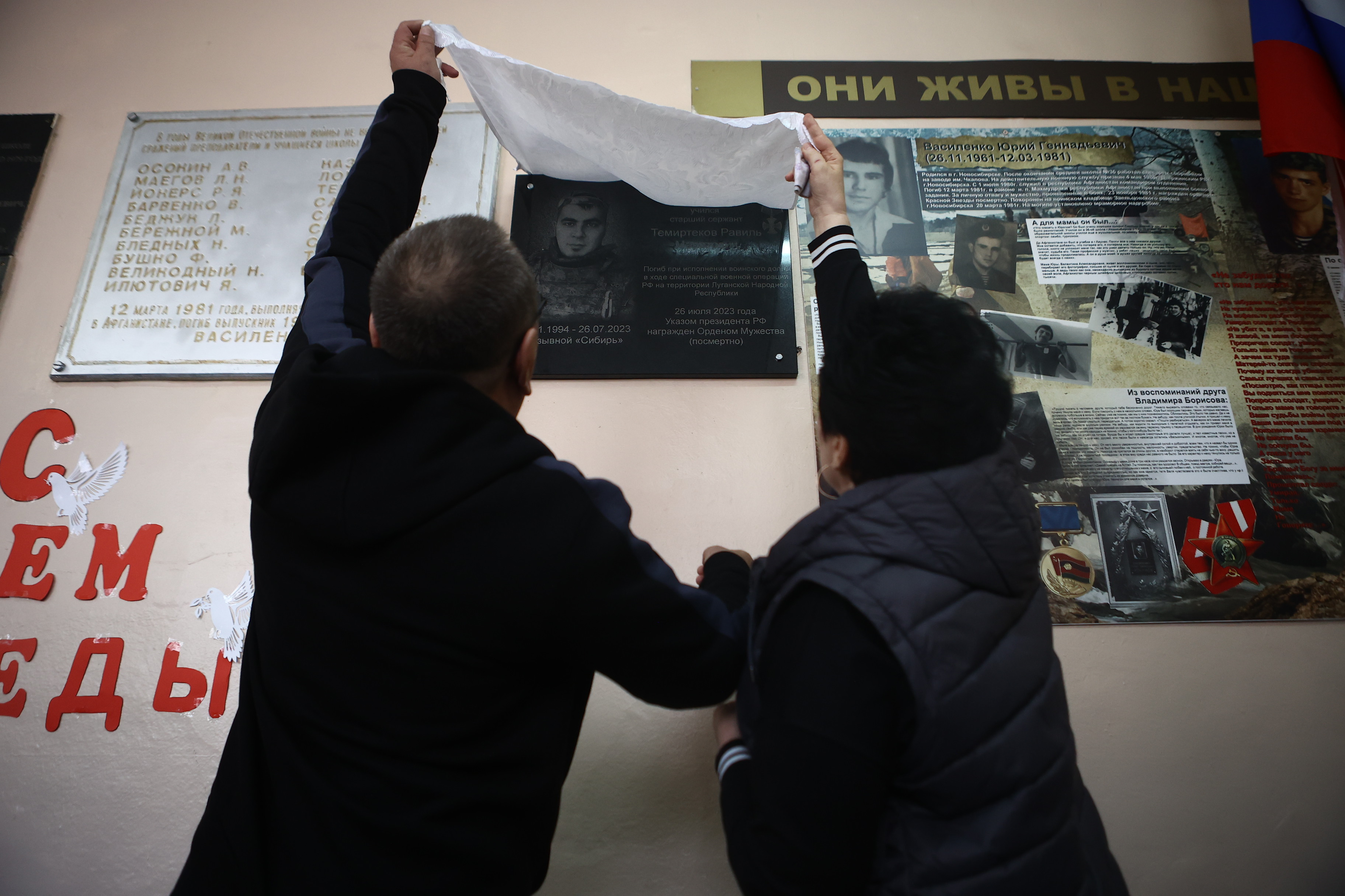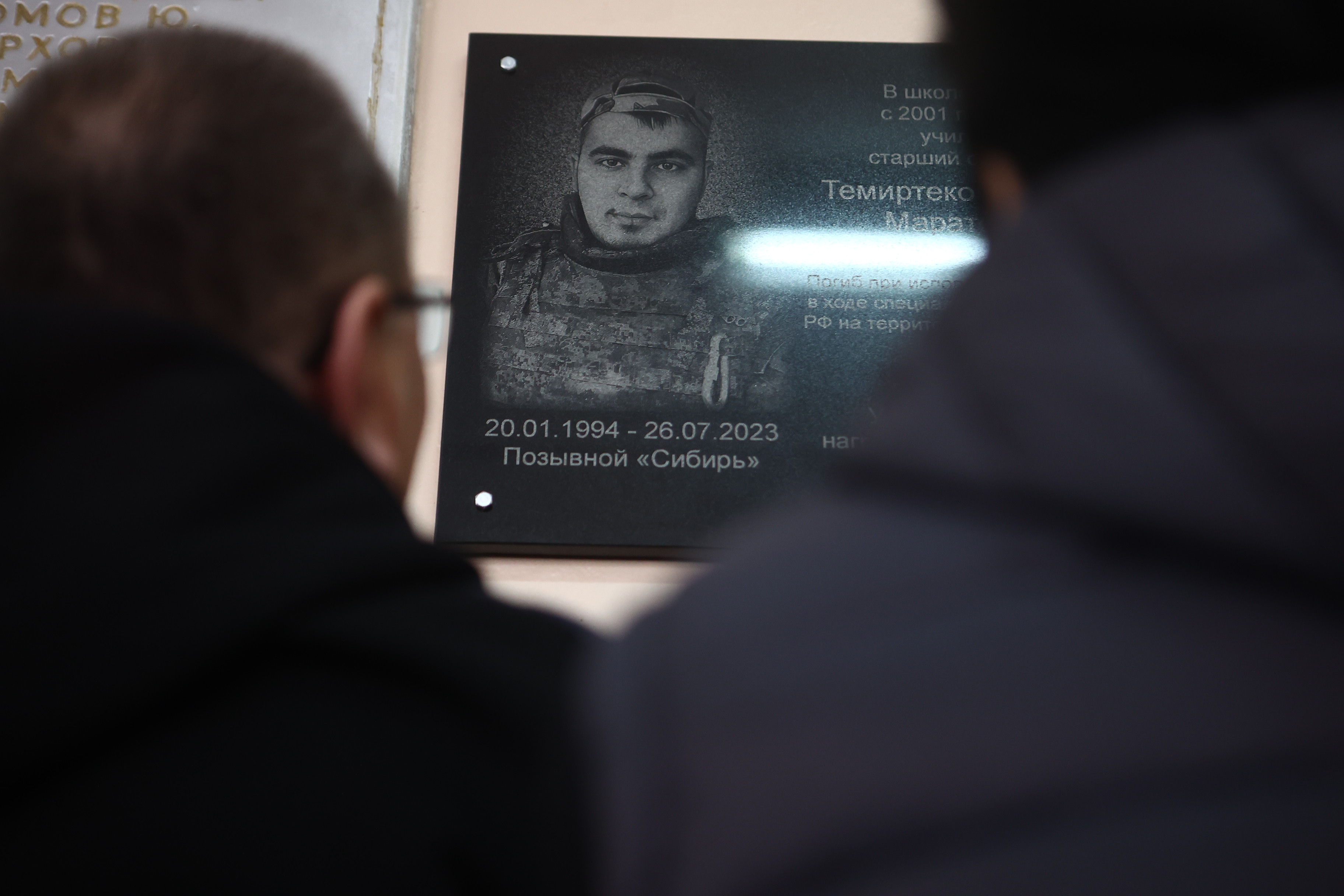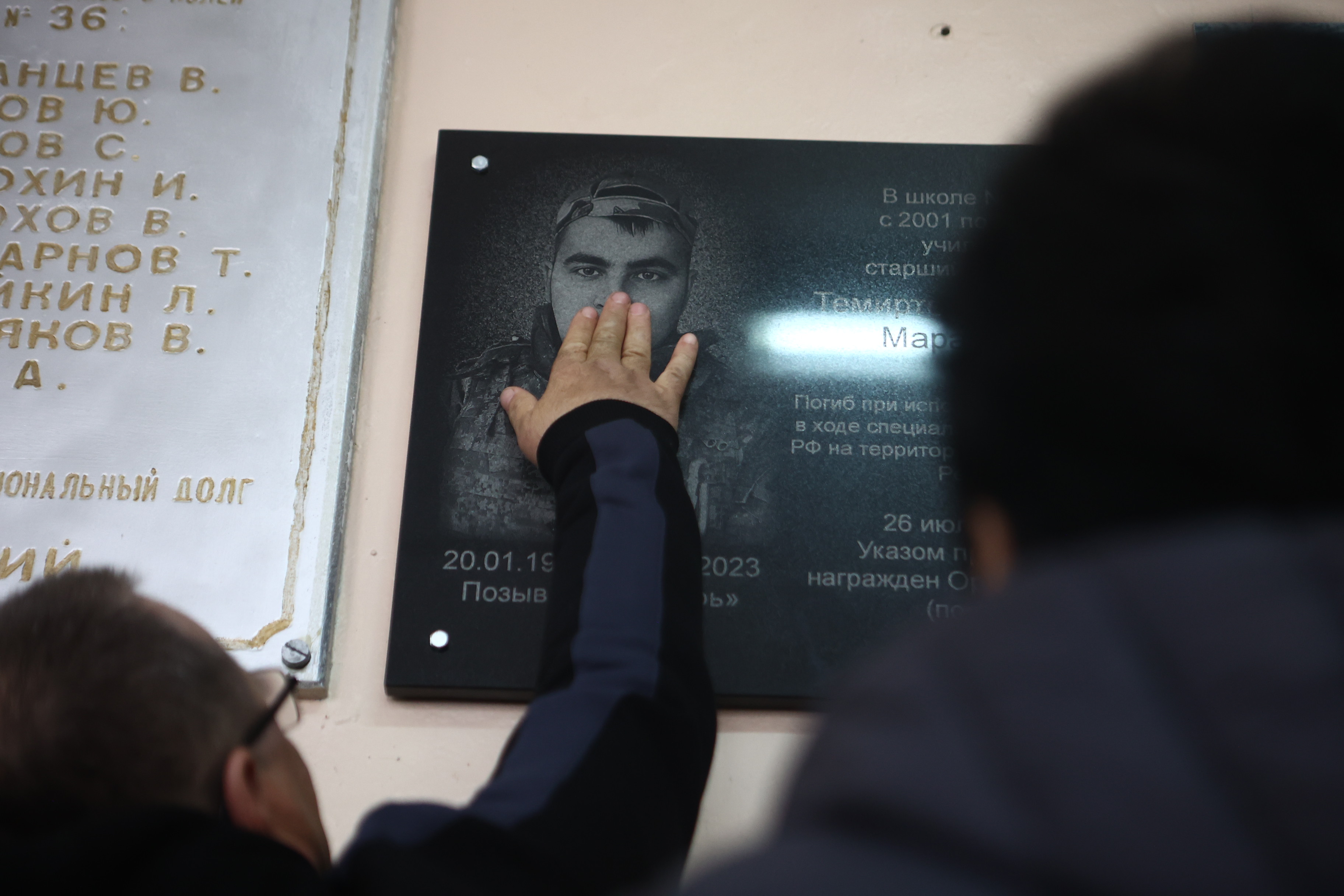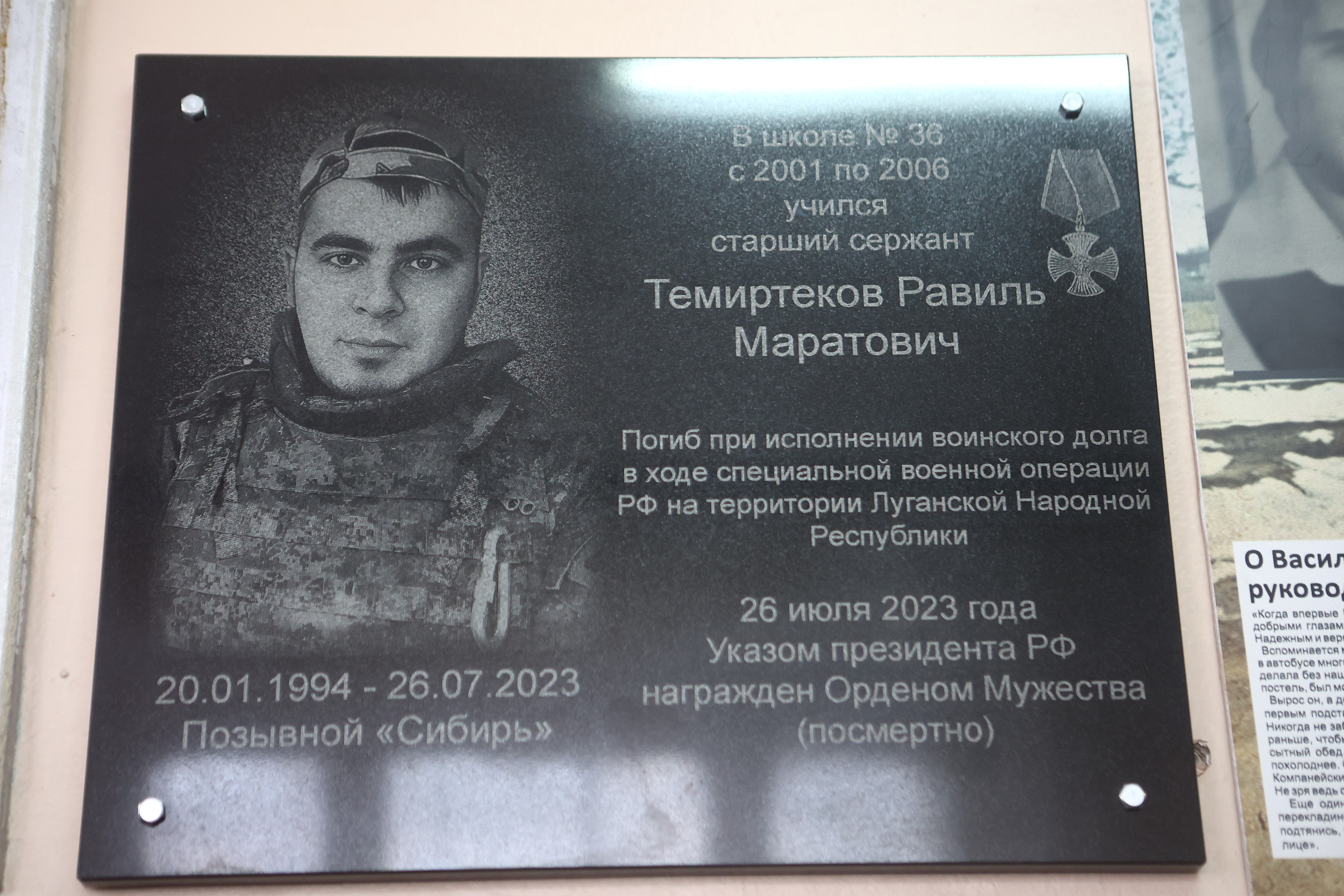 В школе №36 на улице Авиастроителей установили мемориальную доску в честь выпускника — участника специальной военной операции Равиля Темиртекова. Он погиб летом прошлого года на территории ЛНР.