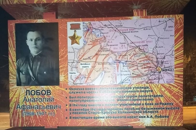 — Анатолия Афанасьевича Лобова (1908-1941), воевавшего в составе 133-й новосибирской стрелковой дивизии и погибшего на безымянной высоте в Калининской области;