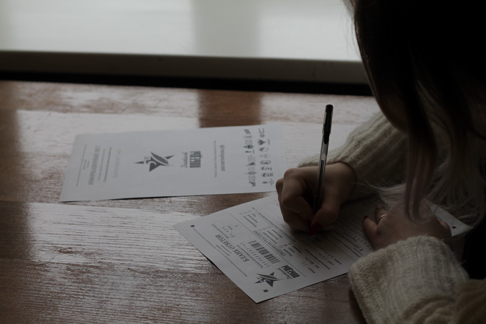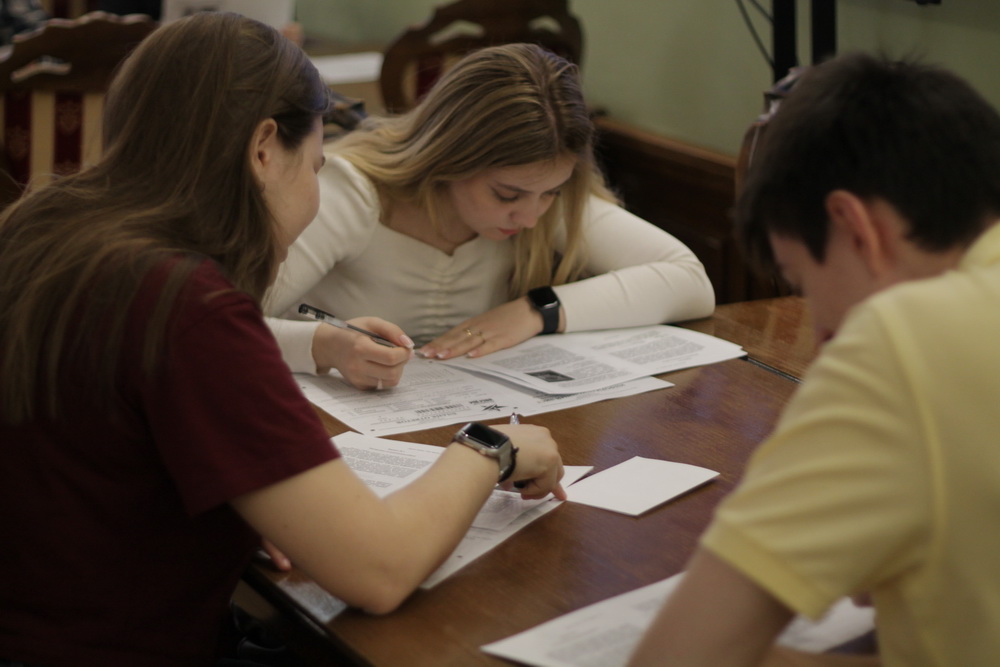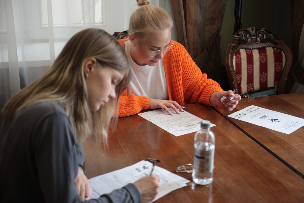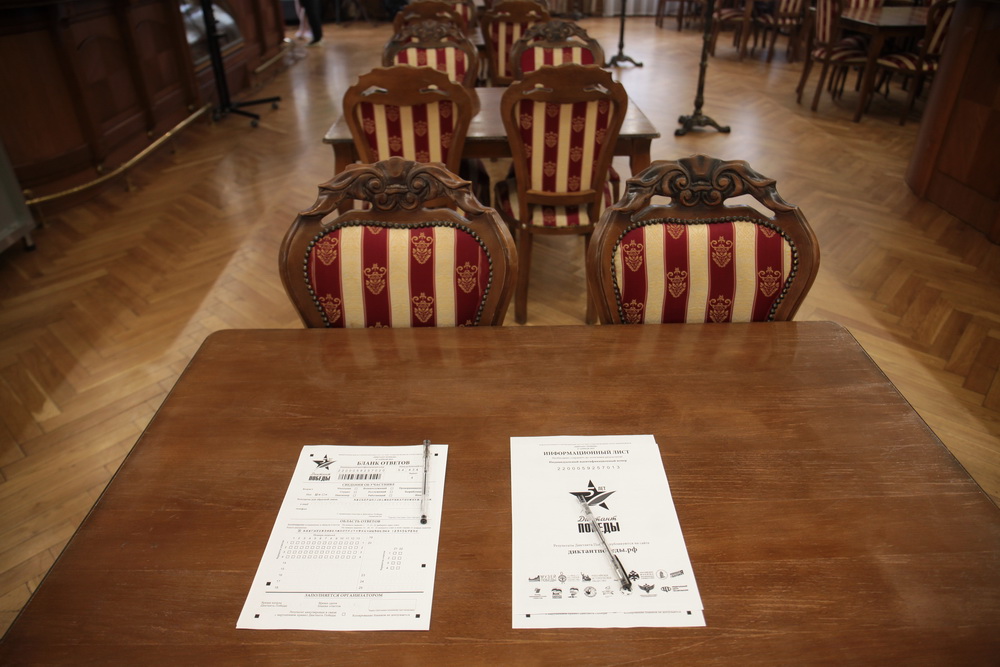 Участникам выдали специальные бланки, на которых нужно указать возраст, пол и контактные данные. В диктанте — 25 вопросов: 20 по общей военной истории и пять — по региональной.