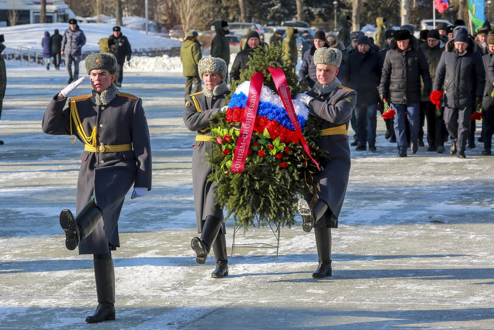 В Новосибирске возложили цветы к Вечному огню Монумента Славы и пилонам в память о погибших в локальных конфликтах. В церемонии приняли участие губернатор Новосибирской области Андрей Травников и исполняющий обязанности мэра города Олег Клемешов. Курсанты военно-патриотических клубов прошли строевым шагом.