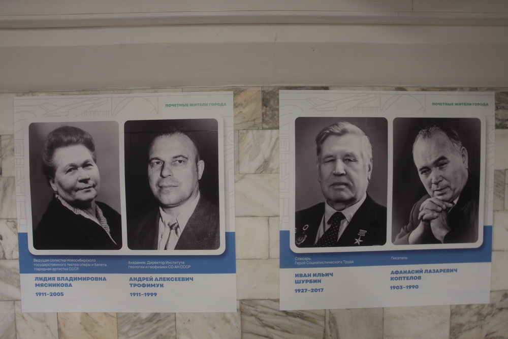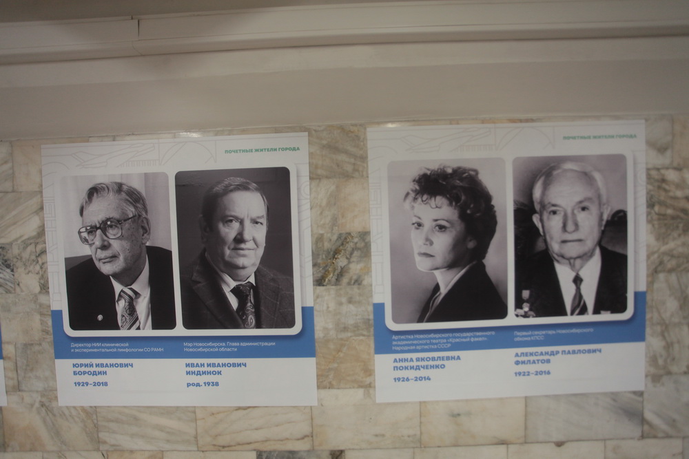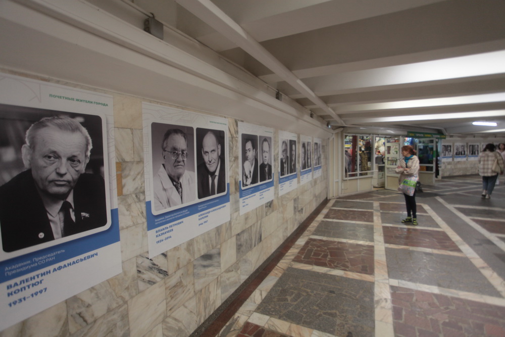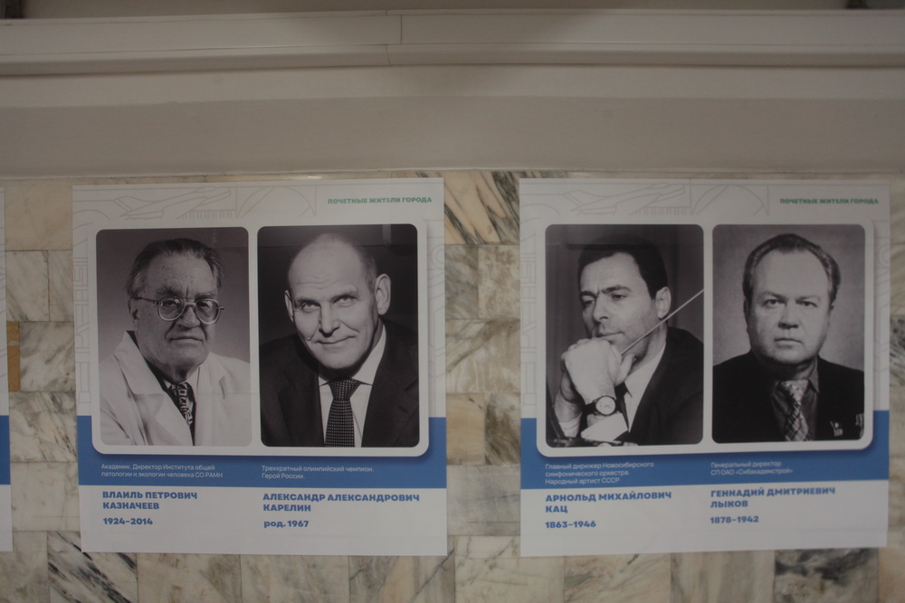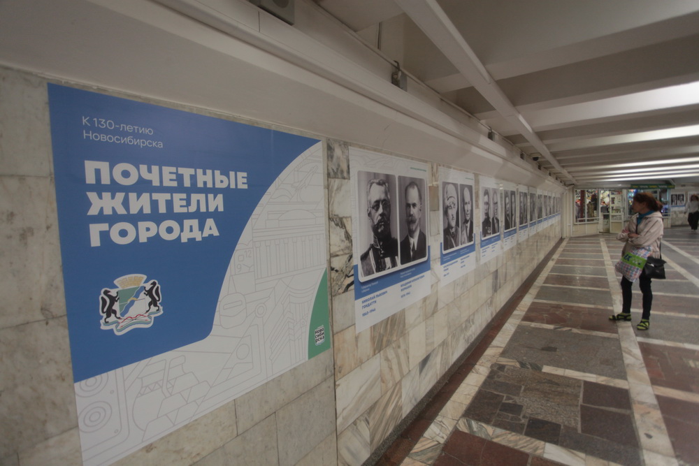 Экспозицию, посвященную почётным жителям города, открыли в переходе на площади Ленина перед празднованием 130-летия Новосибирска. Благодаря совместному проекту метрополитена и Музея Новосибирска здесь можно узнать о жизни и достижениях выдающихся земляков.