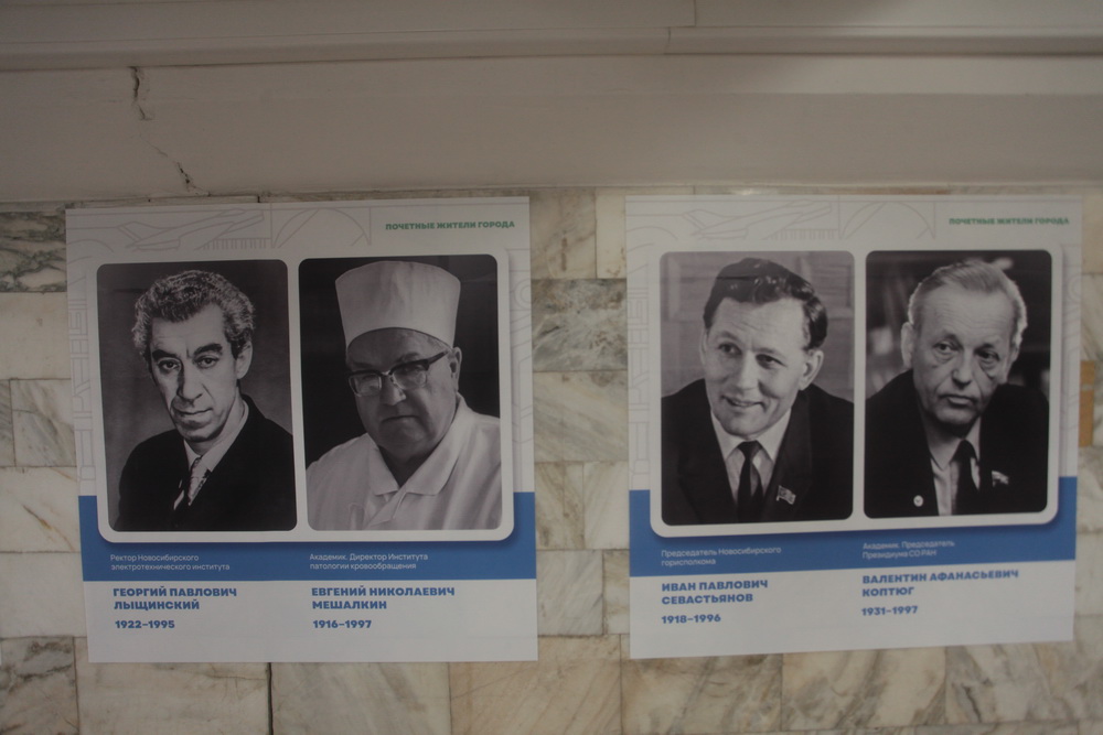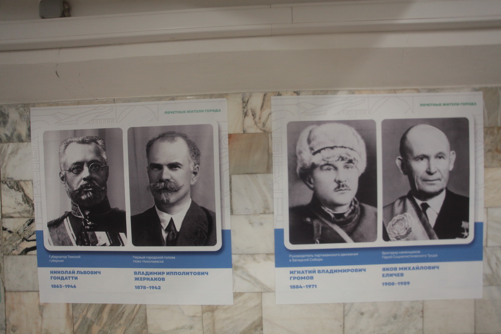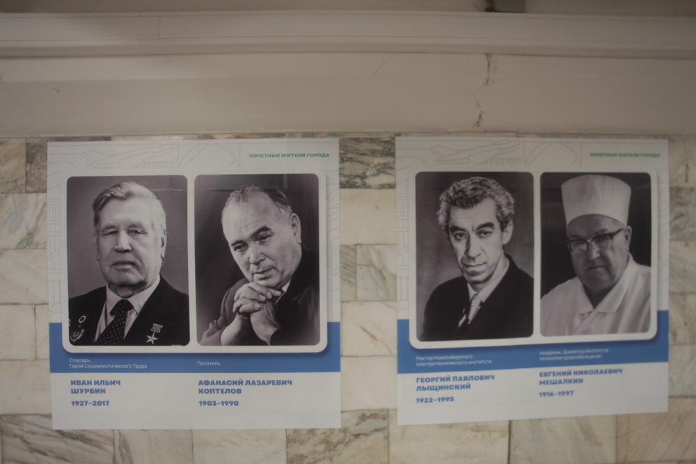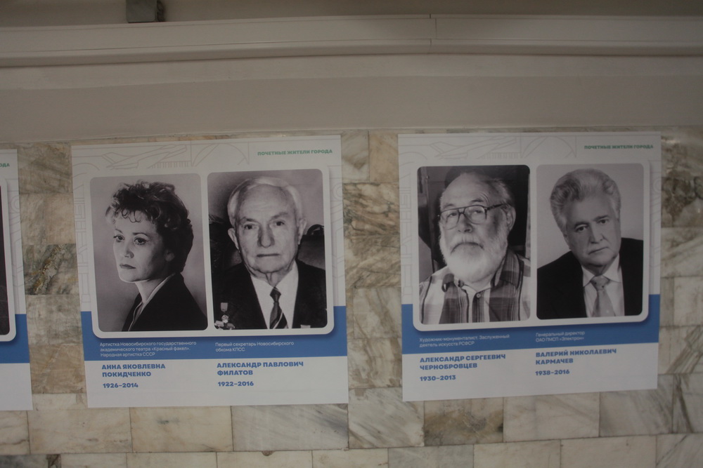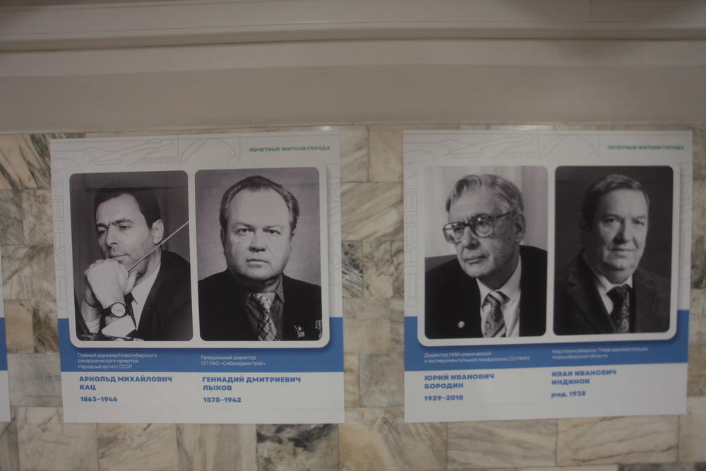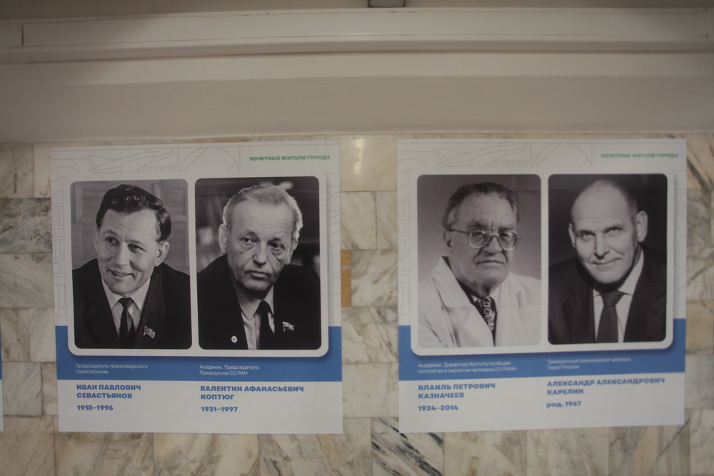 Экспозицию, посвященную почётным жителям города, открыли в переходе на площади Ленина перед празднованием 130-летия Новосибирска. Благодаря совместному проекту метрополитена и Музея Новосибирска здесь можно узнать о жизни и достижениях выдающихся земляков.