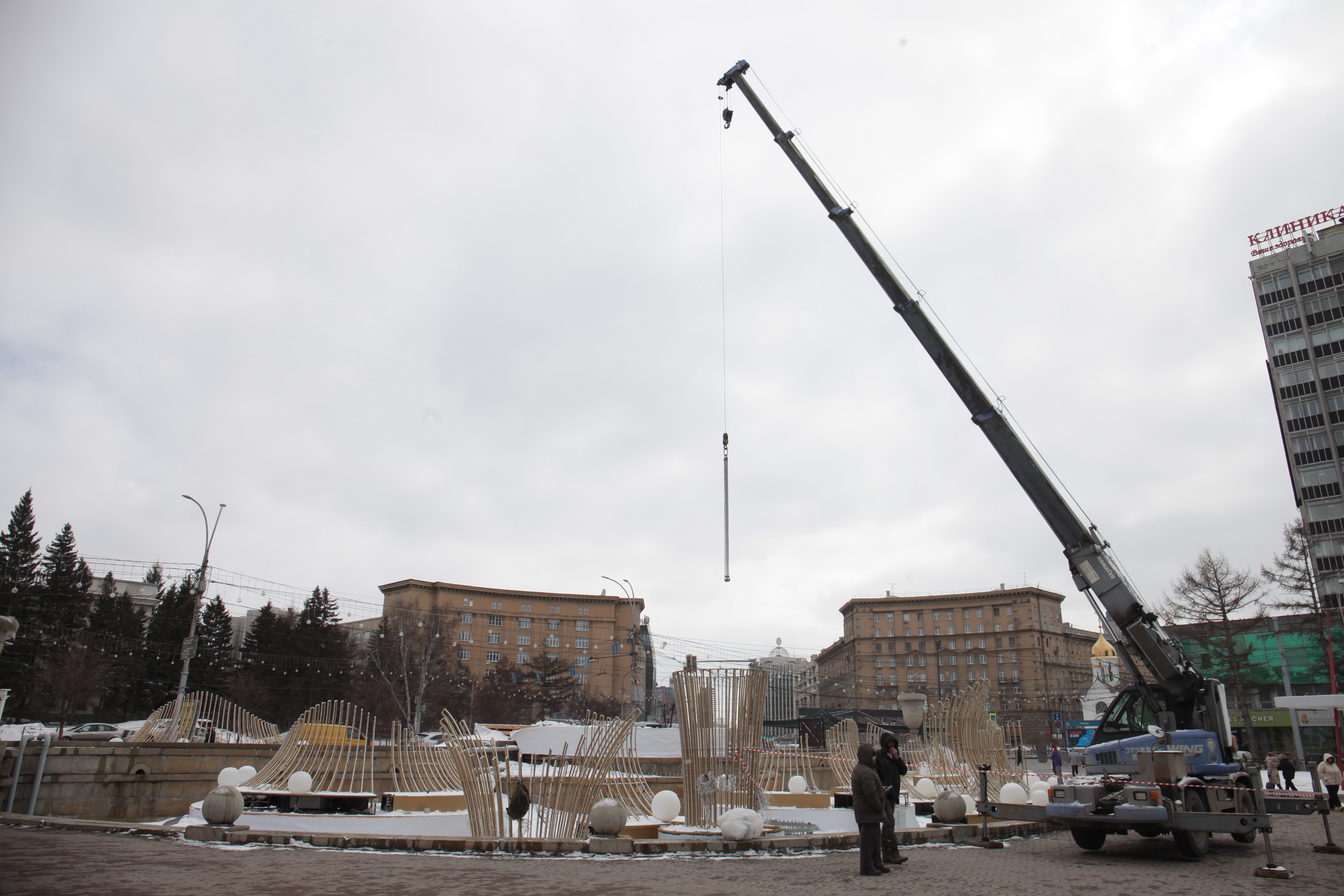 В центре города начали разбирать последние декорации «Новосибирска — новогодней столицы России». Дожидаться следующей зимы украшения будут на специально арендованных складах.