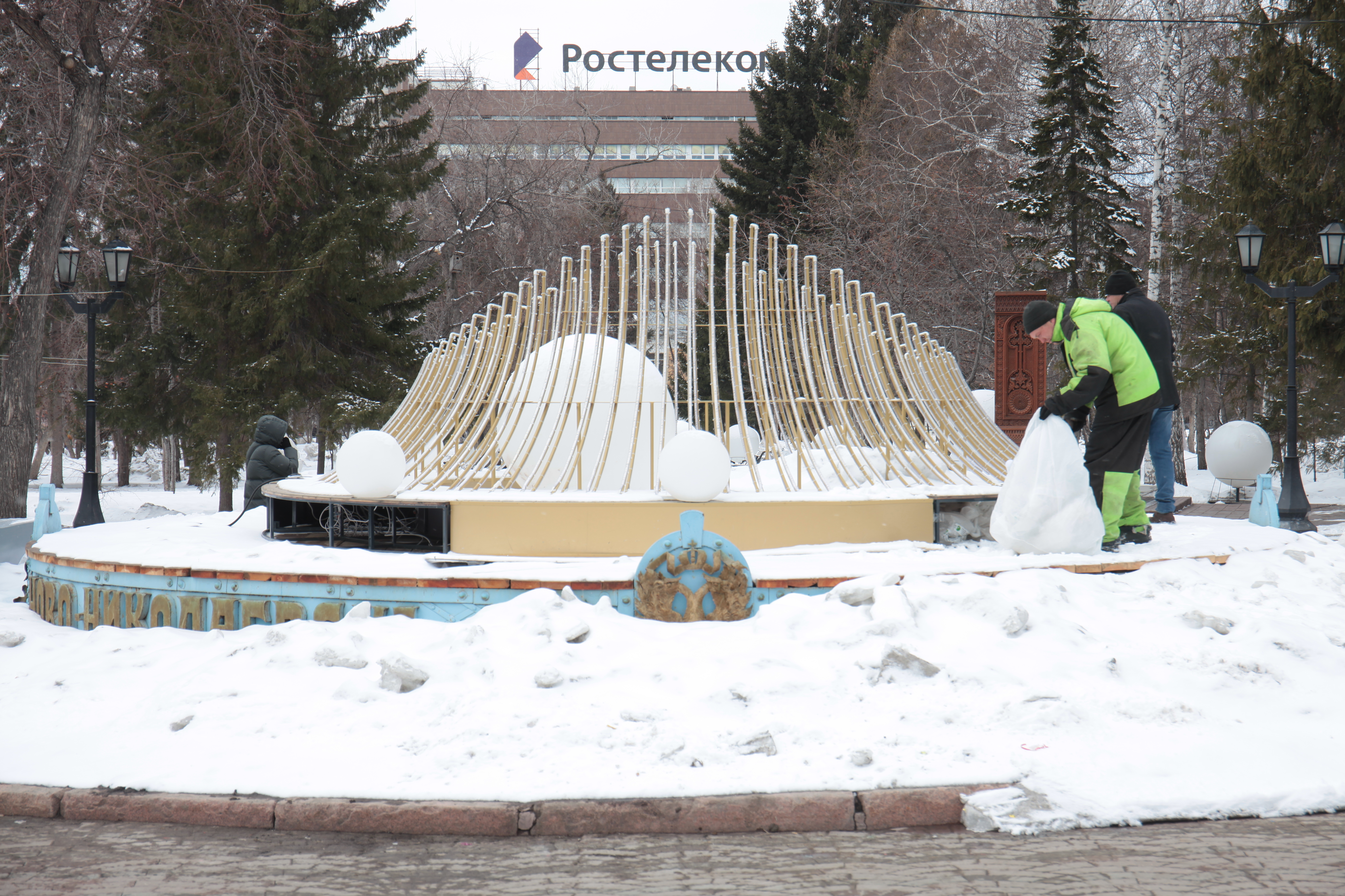 Накануне рабочие приступили к демонтажу светового фонтана в Первомайском сквере. По словам начальника управления культуры мэрии Новосибирска Ирины Соловьёвой, разбор оставшихся праздничных конструкций специально откладывали до наступления положительных температур.