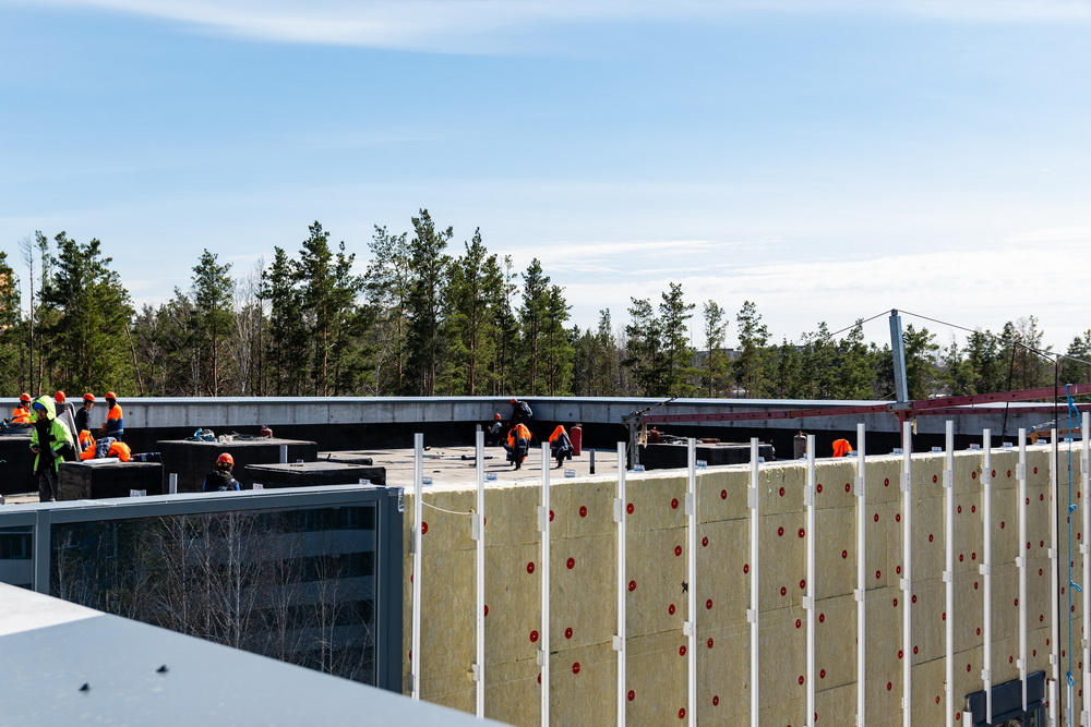 Также продолжается строительство научно-исследовательского центра НГУ. В нём возводят стены и перегородки, монтируют витражи, сооружают внешний вентилируемый фасад. Техническая готовность объекта составляет 8%. В корпусе поточных аудиторий уже собирают технику и расставляют мебель.