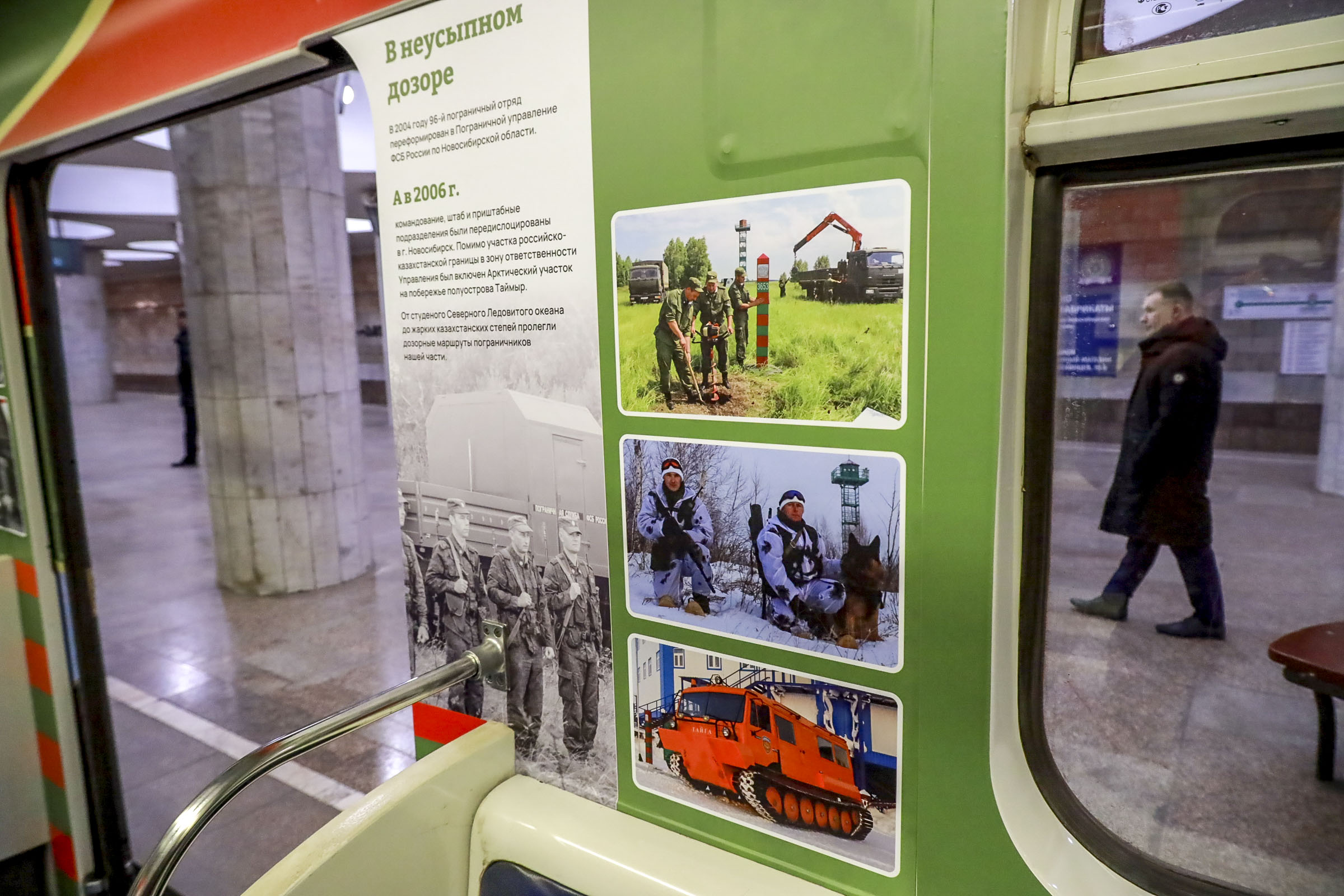 Поезд-музей, посвящённый новосибирским пограничникам, будет курсировать в подземке. Выставку приурочили к 100-летию соответствующего регионального управления ФСБ России. В подготовке передвижной экспозиции принимал участие и глава метрополитена.