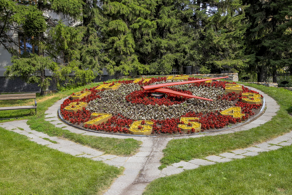 В центре Новосибирска возле Дома Ленина в этом году вновь распустились цветочные часы. Первый раз их оформили в 2009-м к 116-летию города, и с тех пор часы «цветут и пахнут».