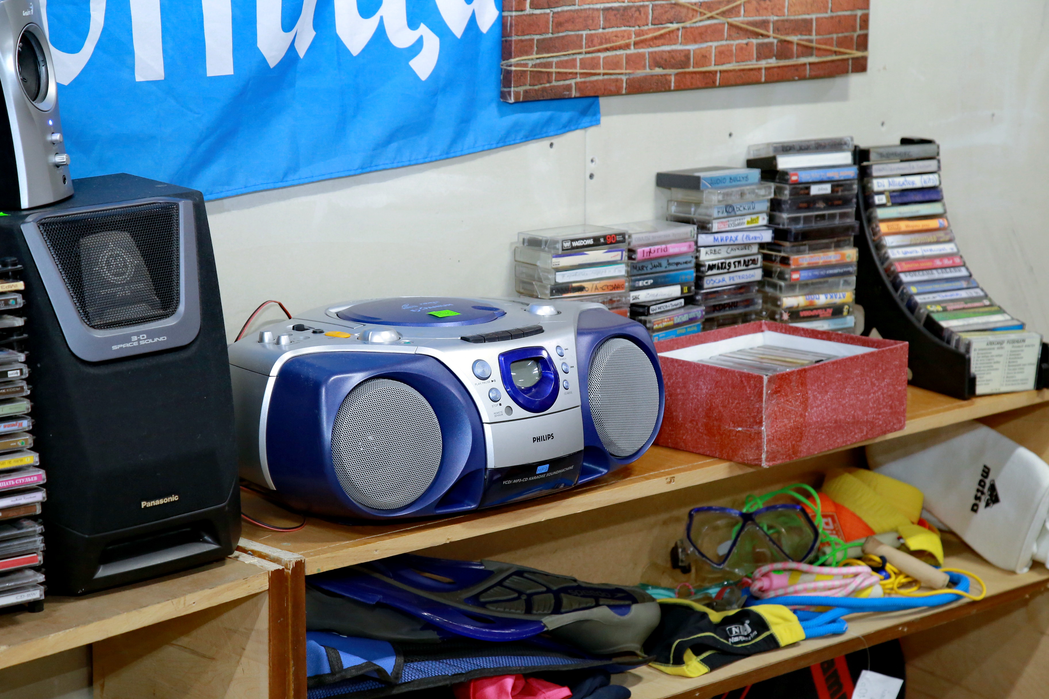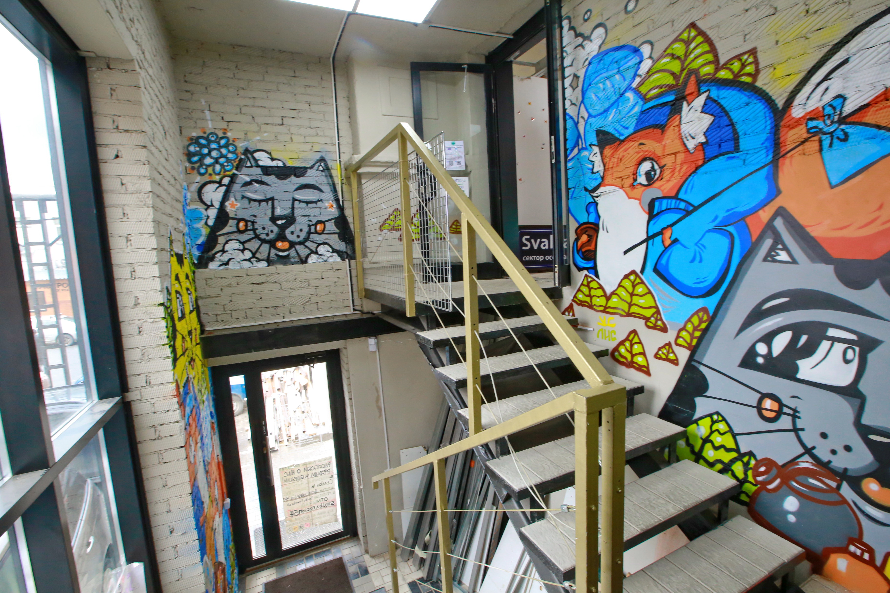 Изначально в помещении «Свалки» не было ничего необычного: простое здание, стена из гипсокартона, наливной пол... Мы на своём примере показываем, как можно использовать старые вещи. Примерочные в магазине сделаны из бывших туалетных кабинок. Мы их забрали, а граффитисты разрисовали и превратили их в место для переодевания. Шкаф с книгами — старый советский. Торговые стеллажи тоже собраны из советской мебели. Мы их не подгоняли под специальный размер, наоборот, исходили из того, что есть. Идея дать вещам вторую жизнь у нас проявляется везде, даже в дизайне интерьера.