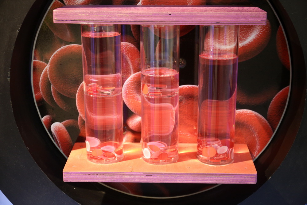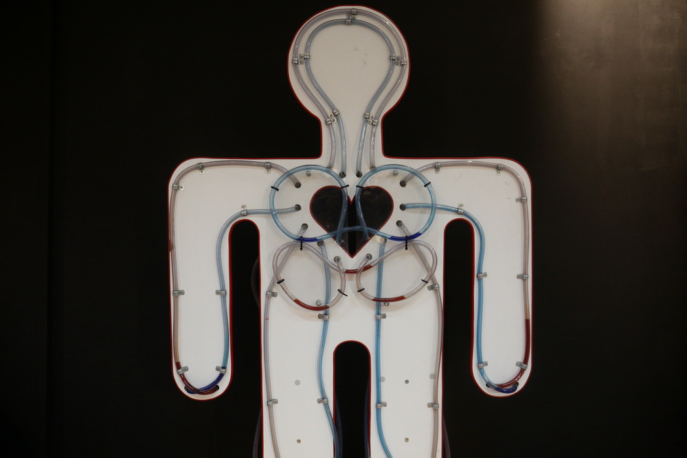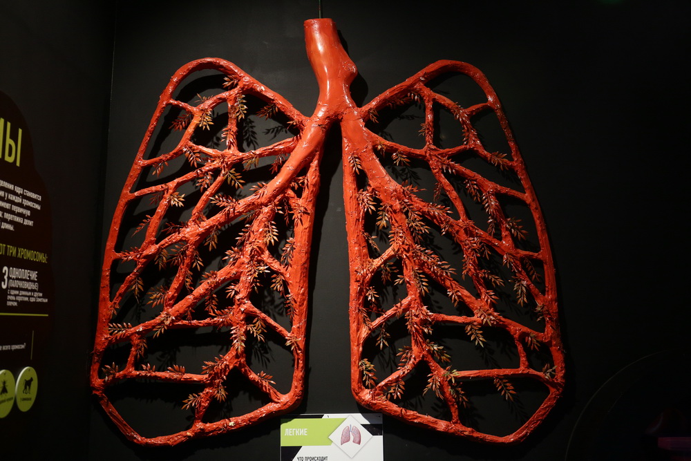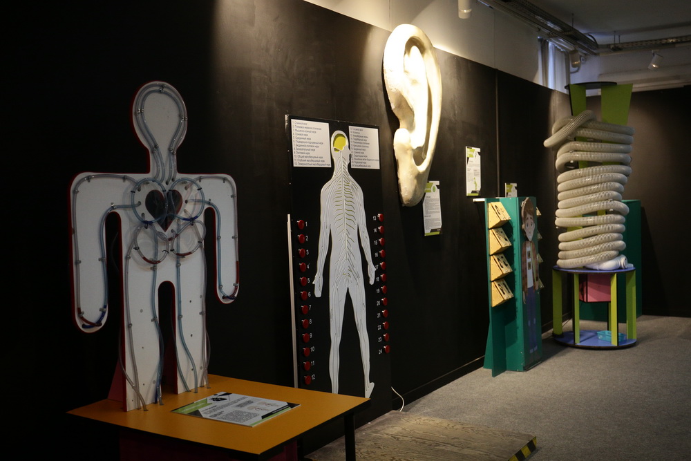 На этой выставке не только можно, но и нужно трогать экспонаты руками. Целый набор тестов и наглядных механизмов; с каким усилием работает сердце — оценить на себе, нажав специальную рукоятку и пустив бутафорскую кровь по сосудам. Или понять, как работает человеческое зрение.