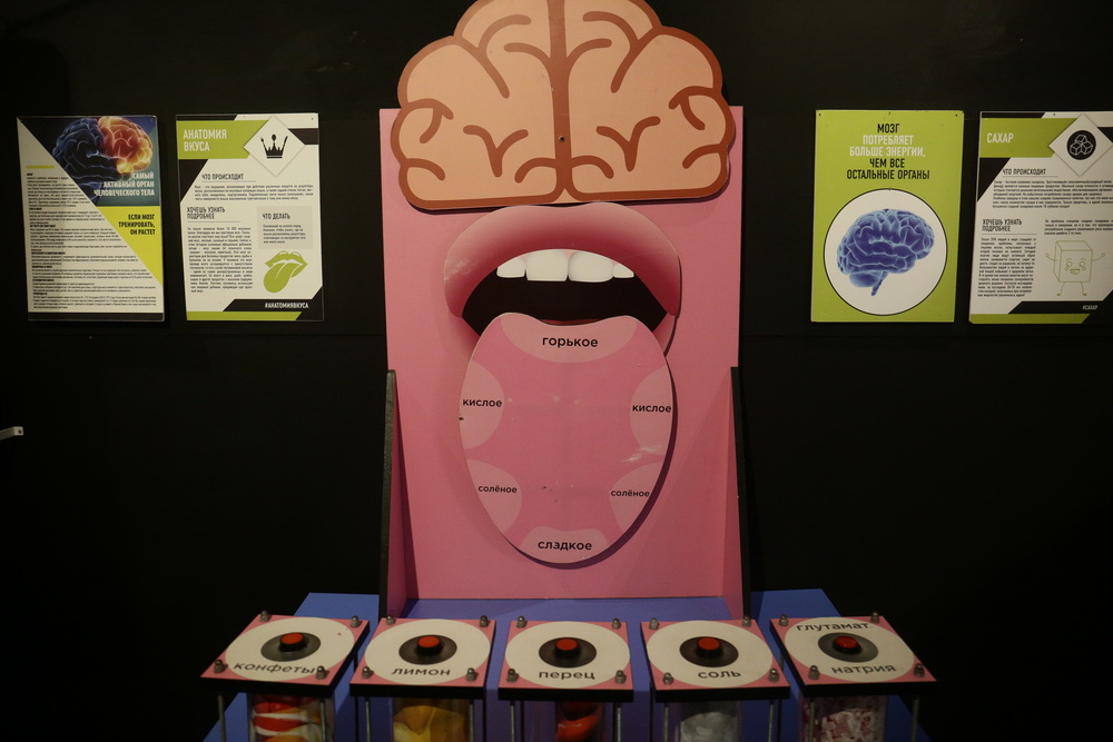 «Смотрите: вы нажали — и в определённых местах загорелись лампочки. По одной из гипотез наш мозг не сразу за всё отвечает, а определённые участки коры головного мозга отвечают за определённые действия», — объяснила экскурсовод Музея природы Ольга Сабитова.