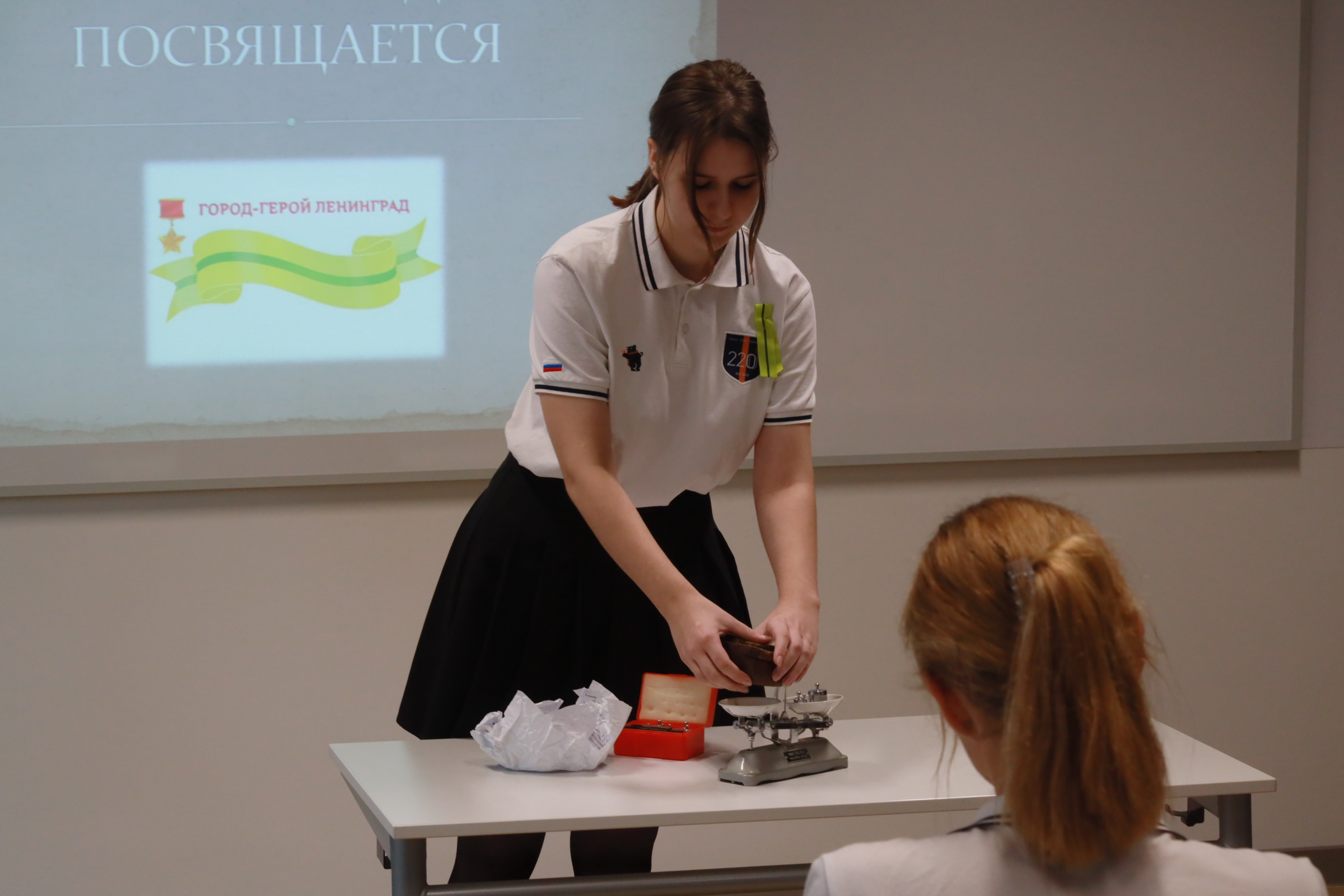 В школе №220 тоже состоялось торжественное мероприятие с линейкой и уроками исторической памяти. Дети увидели кинокадры Великой Отечественной войны и получили возможность лично пообщаться с блокадниками.