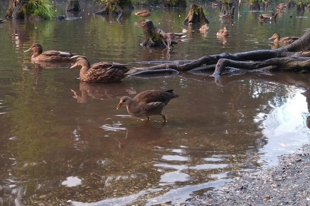 Водяные курочки с зелёными ногами поселились в пруду Академгородка