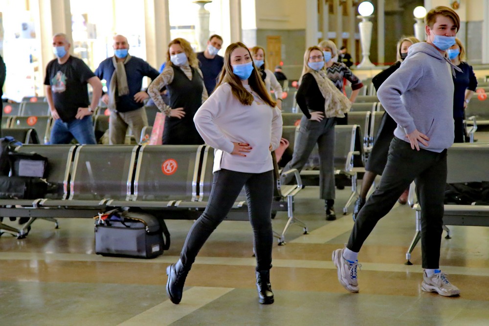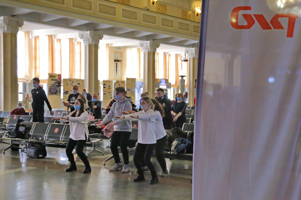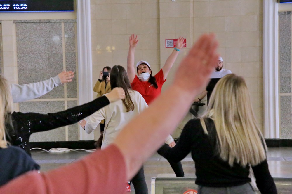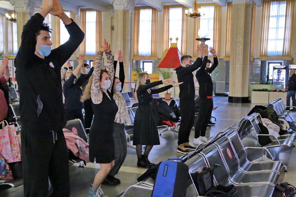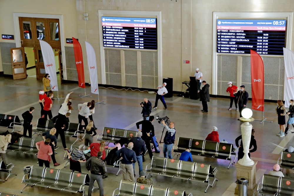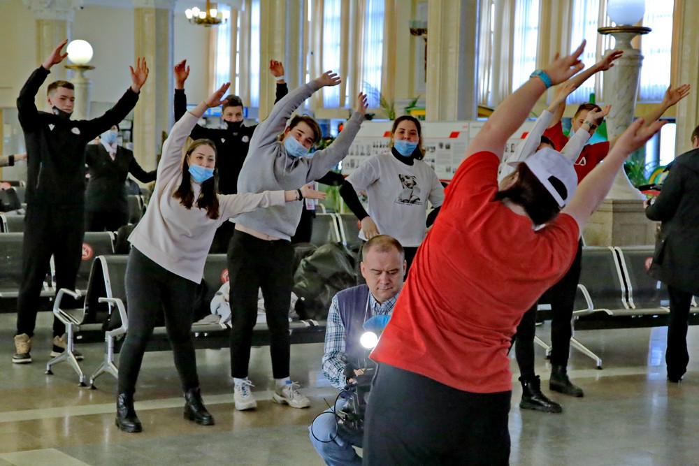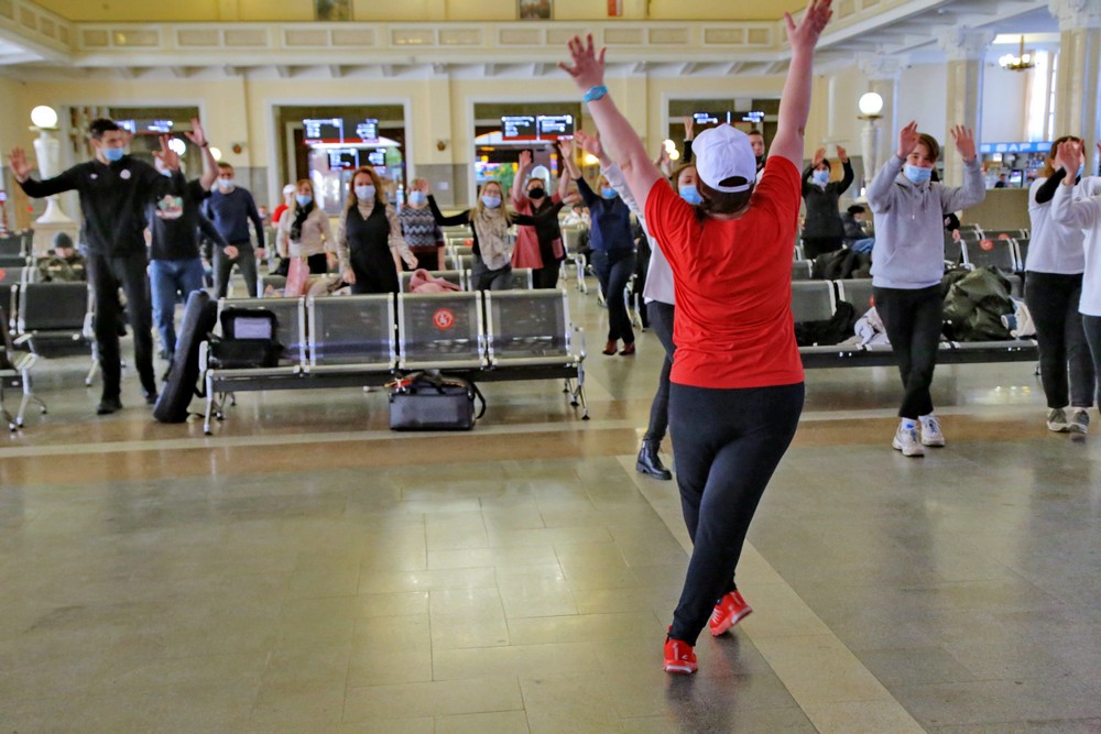 Волейболисты подняли на зарядку пассажиров вокзала в Новосибирске